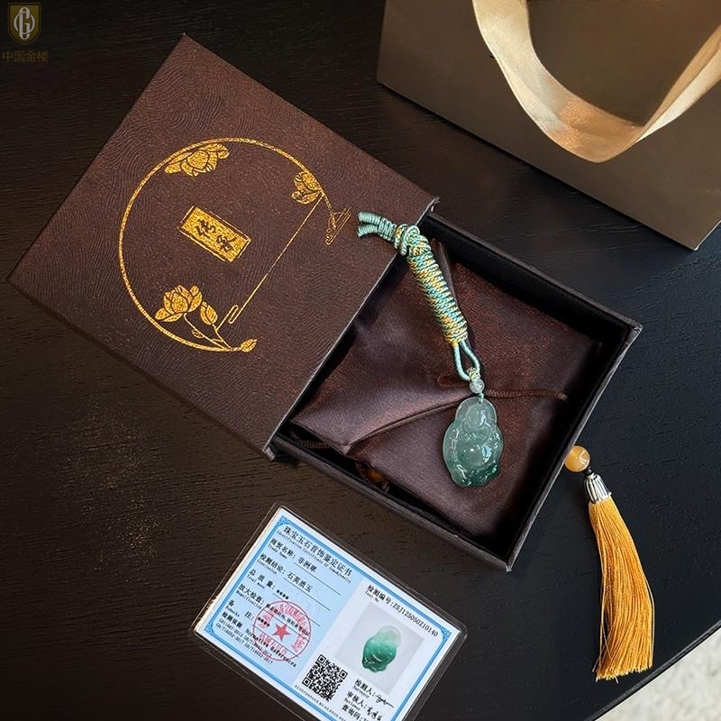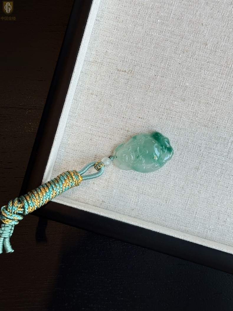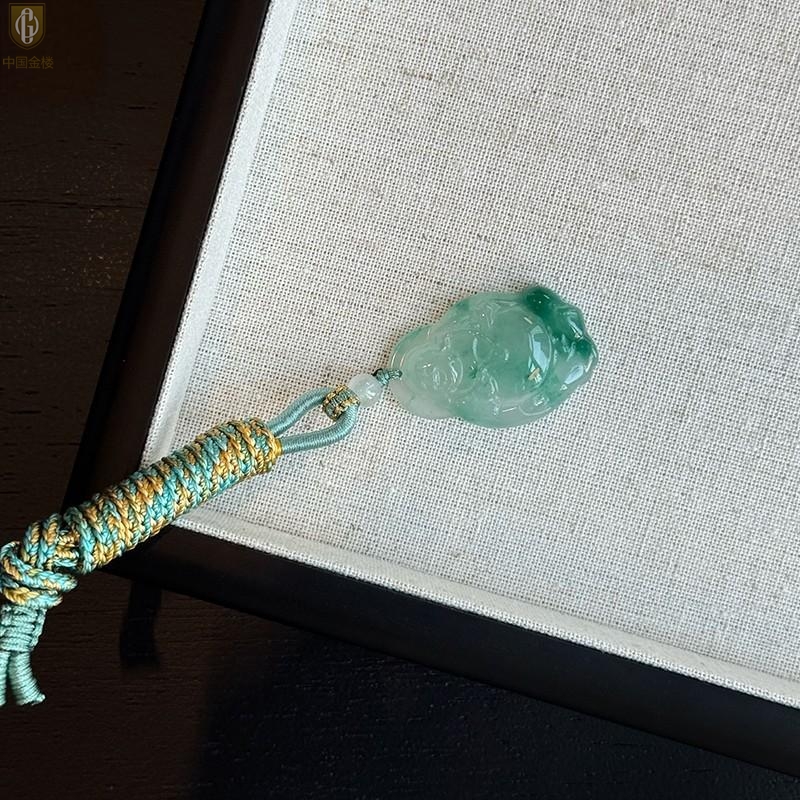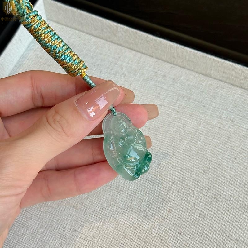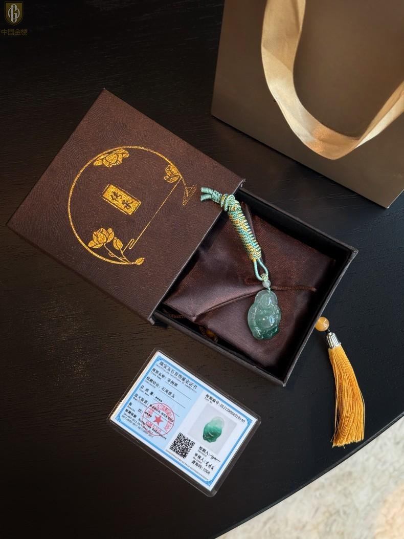 【品名】中国金楼TS专属A级冰绿非洲翠招财弥勒佛吊坠(传承礼盒)