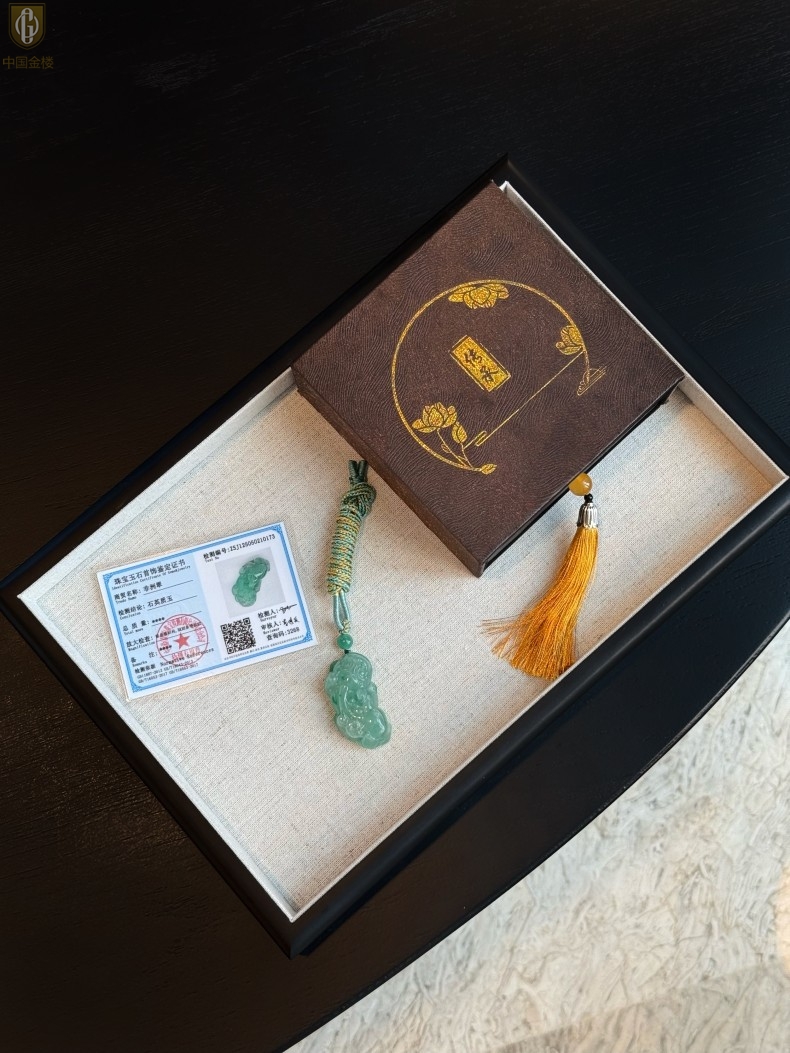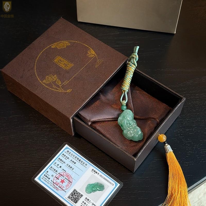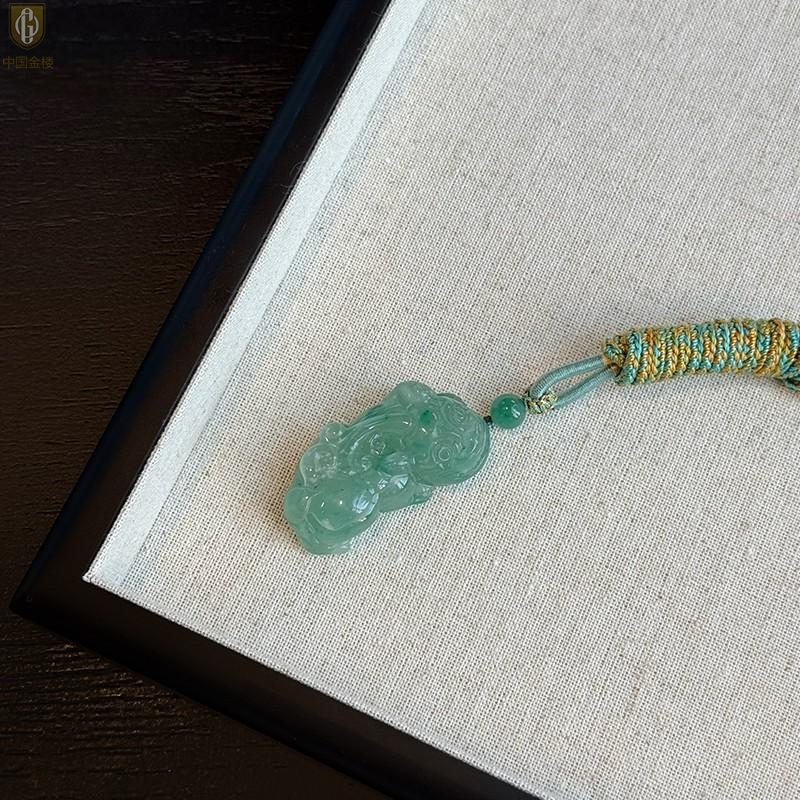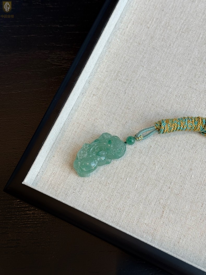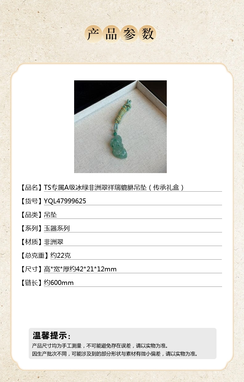 【品名】中国金楼TS专属A级冰绿非洲翠祥瑞貔貅吊坠(传承礼盒)