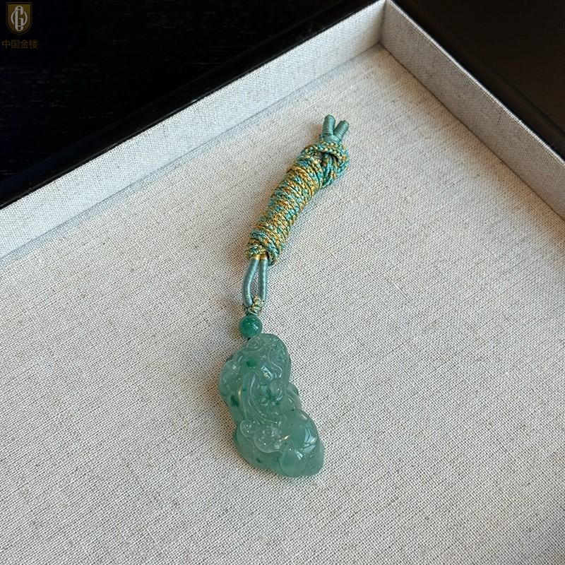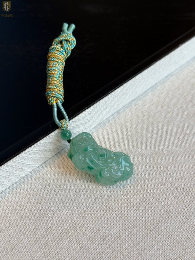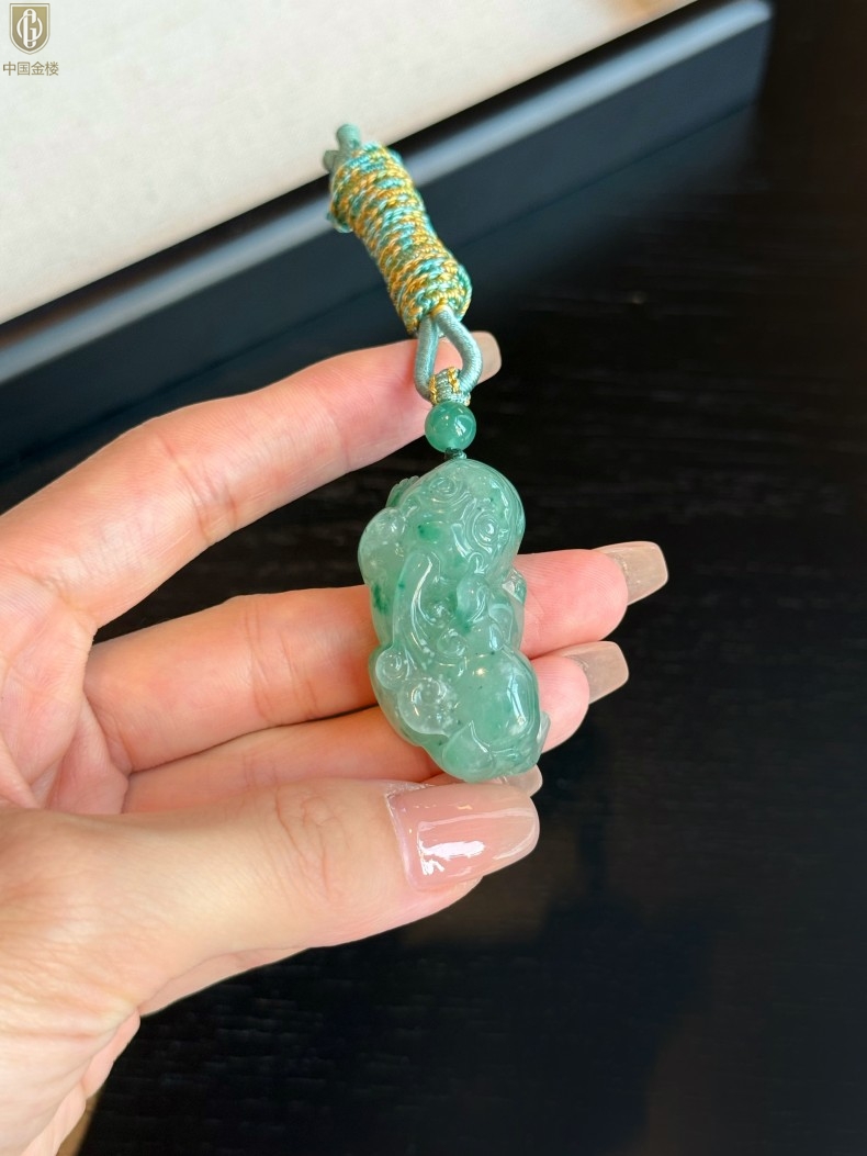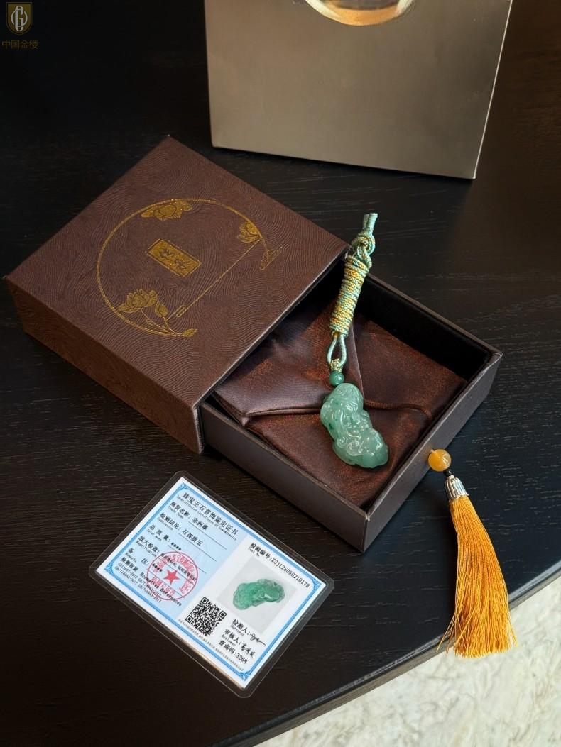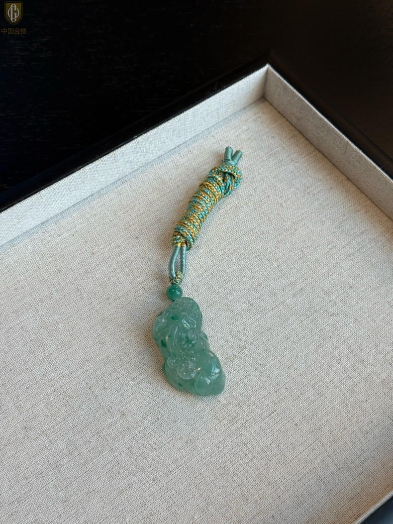 【品名】中国金楼TS专属A级冰绿非洲翠祥瑞貔貅吊坠(传承礼盒)