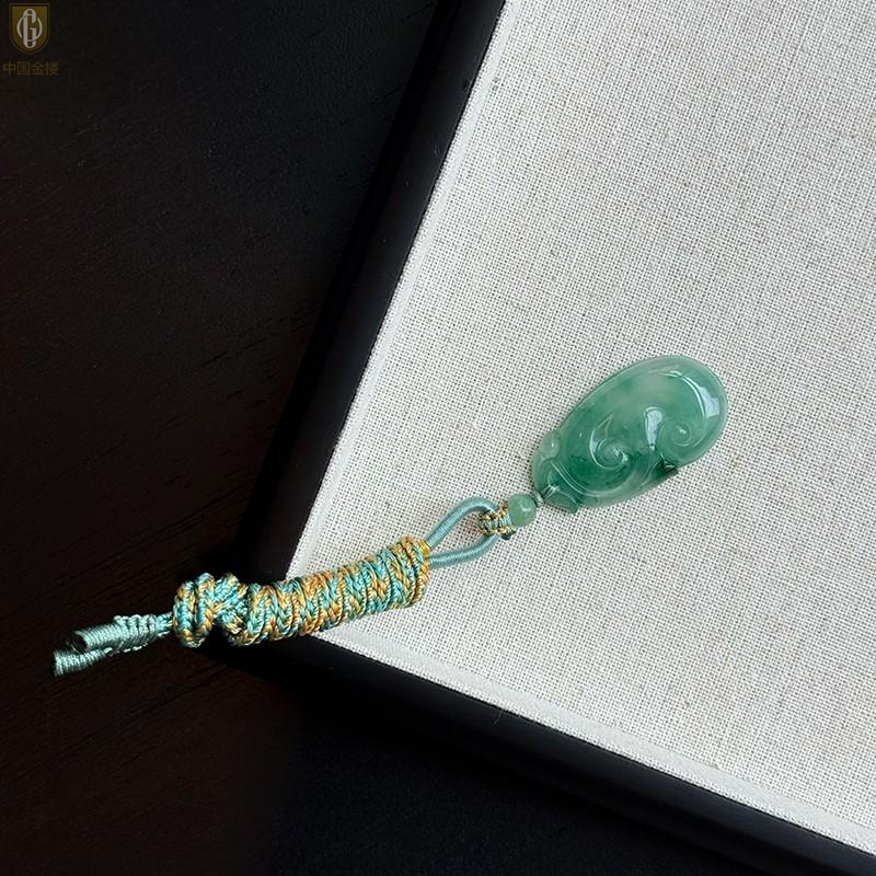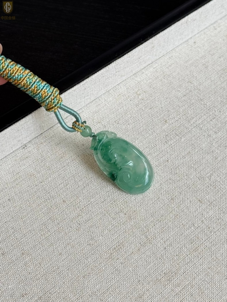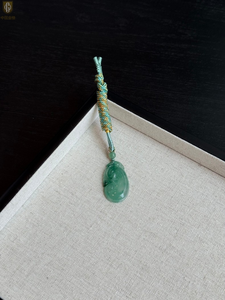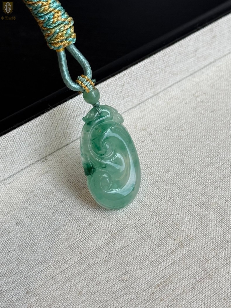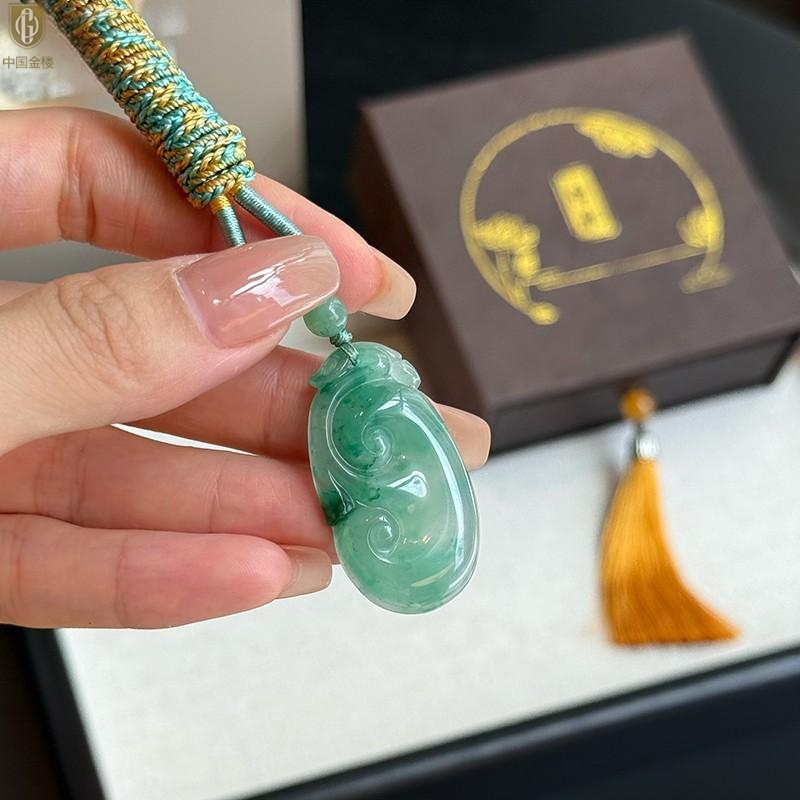 【品名】中国金楼TS专属A级冰绿非洲翠祥云如意吊坠(传承礼盒)