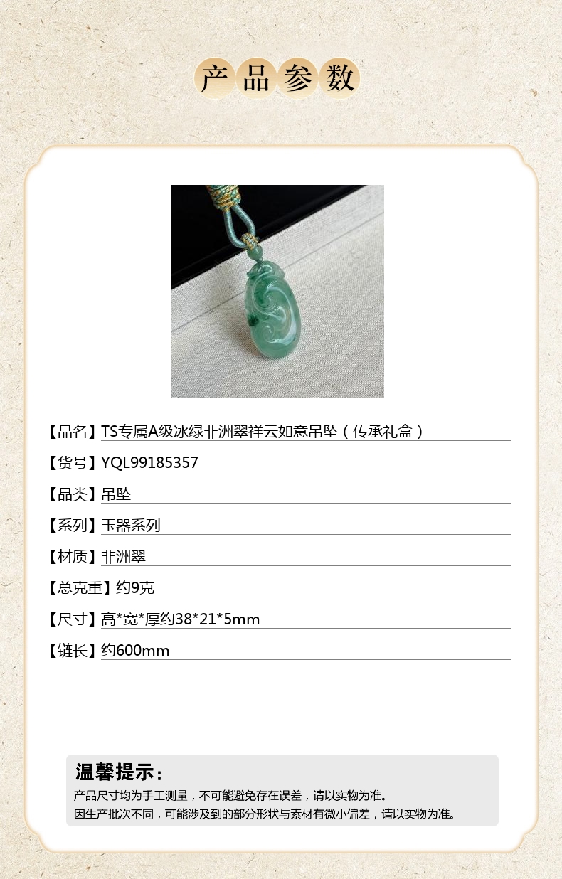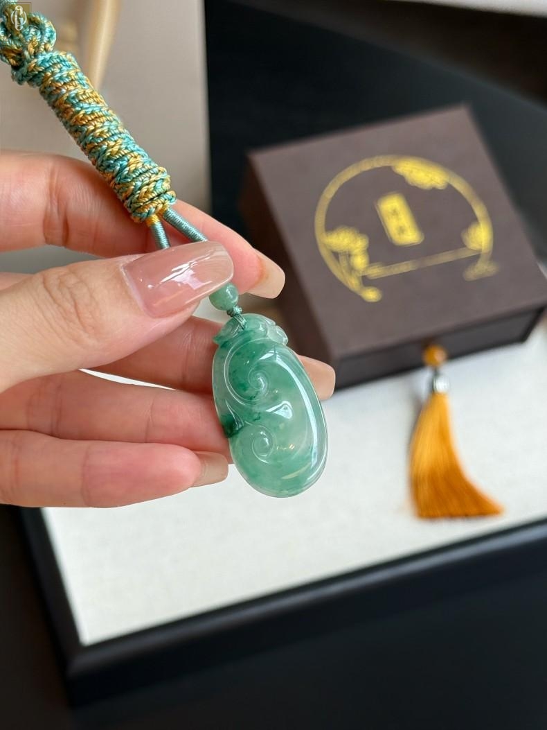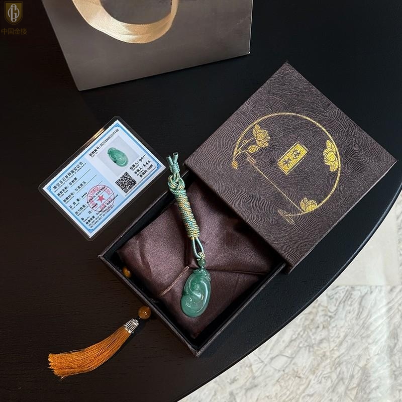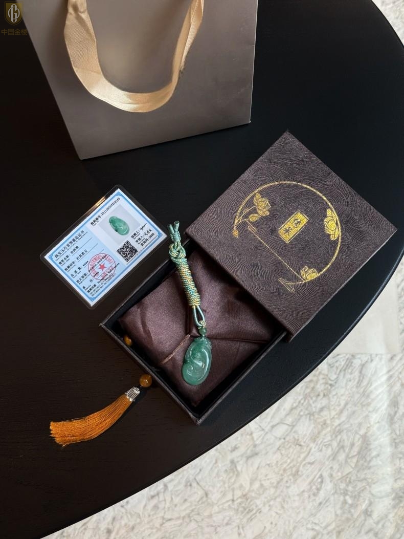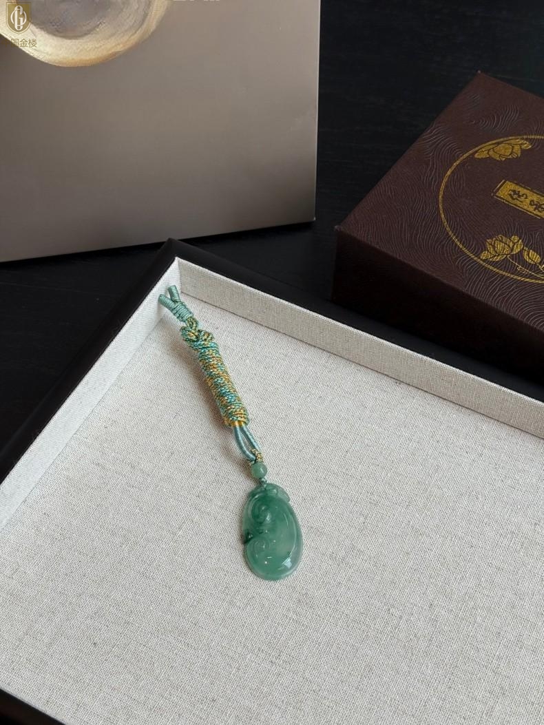 【品名】中国金楼TS专属A级冰绿非洲翠祥云如意吊坠(传承礼盒)