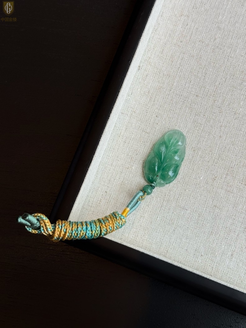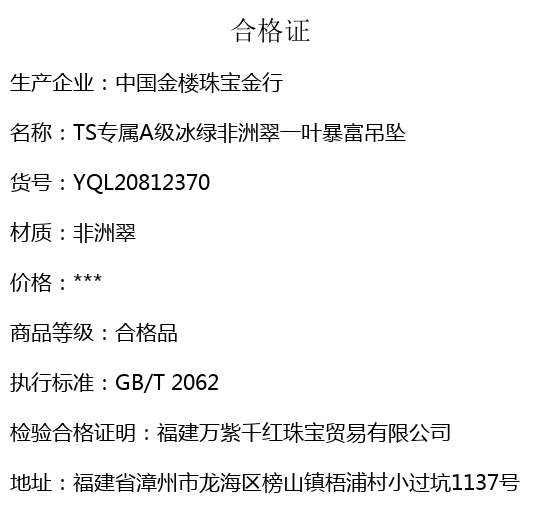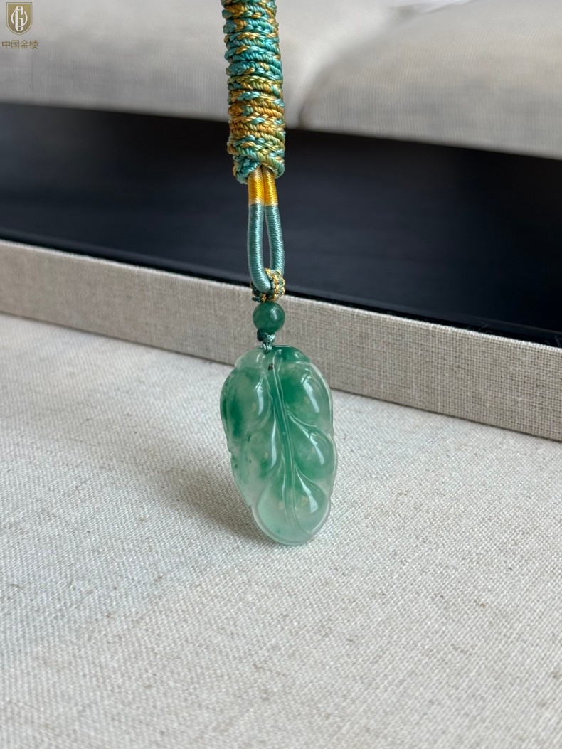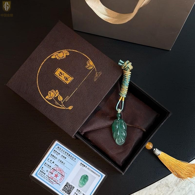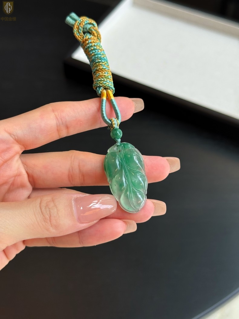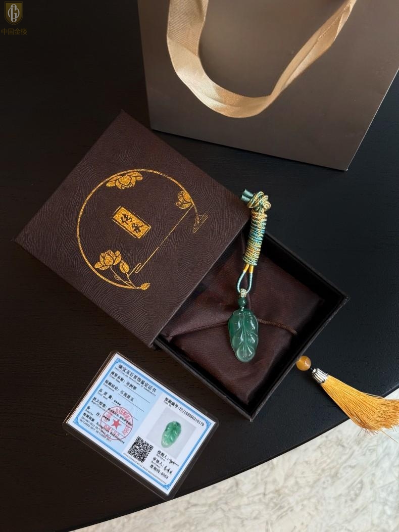【品名】中国金楼TS专属A级冰绿非洲翠一叶暴富吊坠(传承礼盒)
