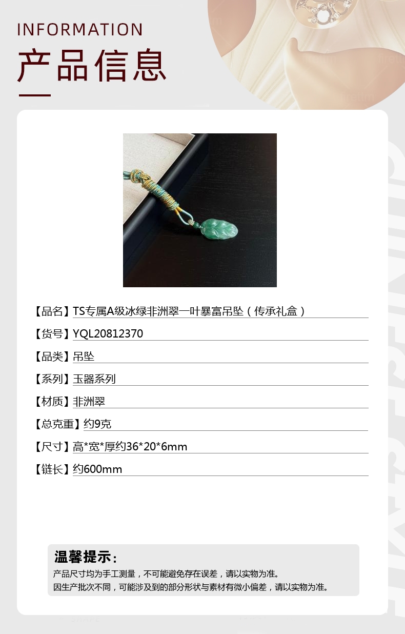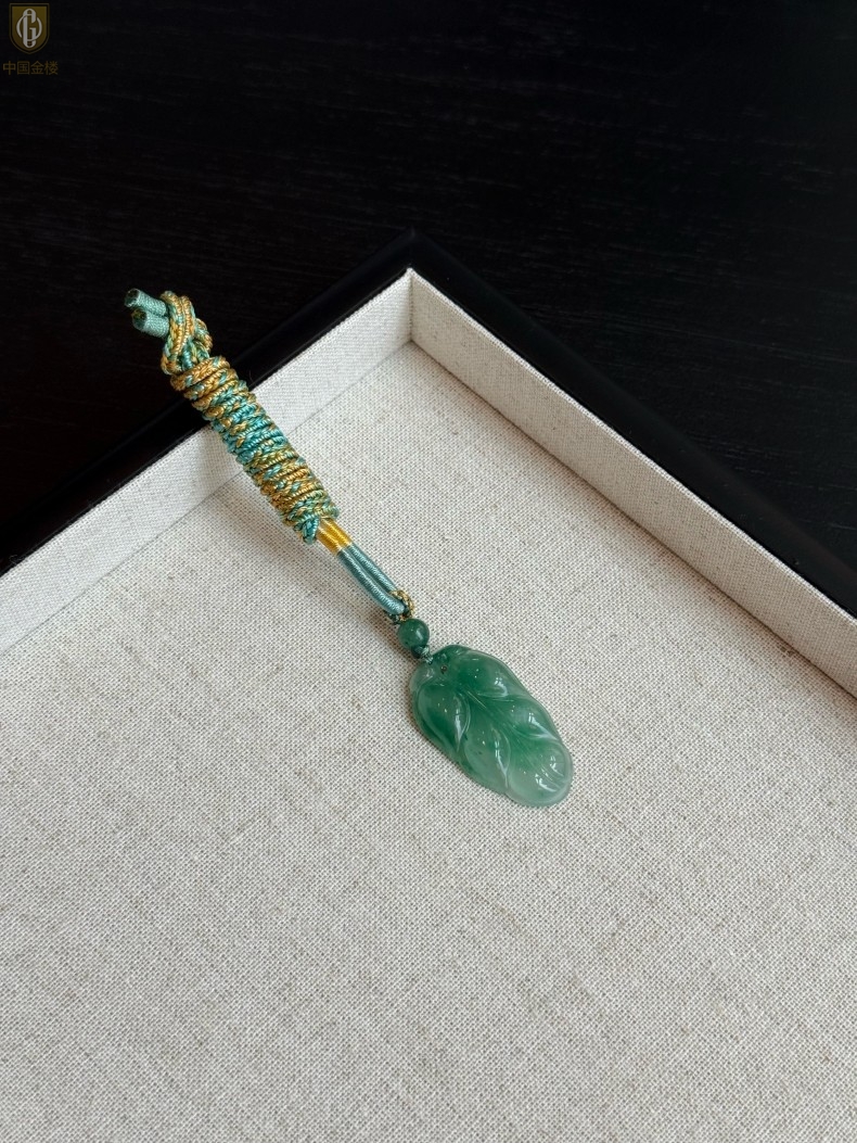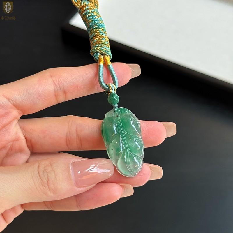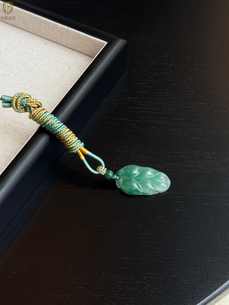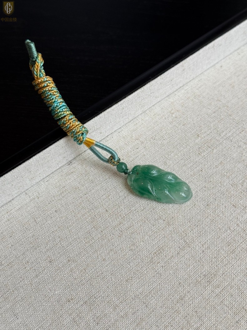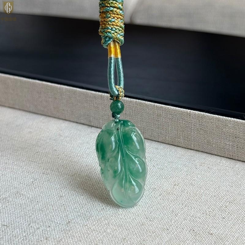 【品名】中国金楼TS专属A级冰绿非洲翠一叶暴富吊坠(传承礼盒)