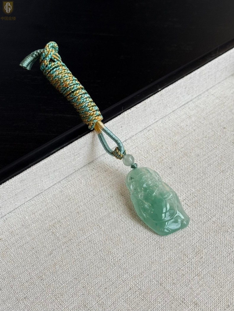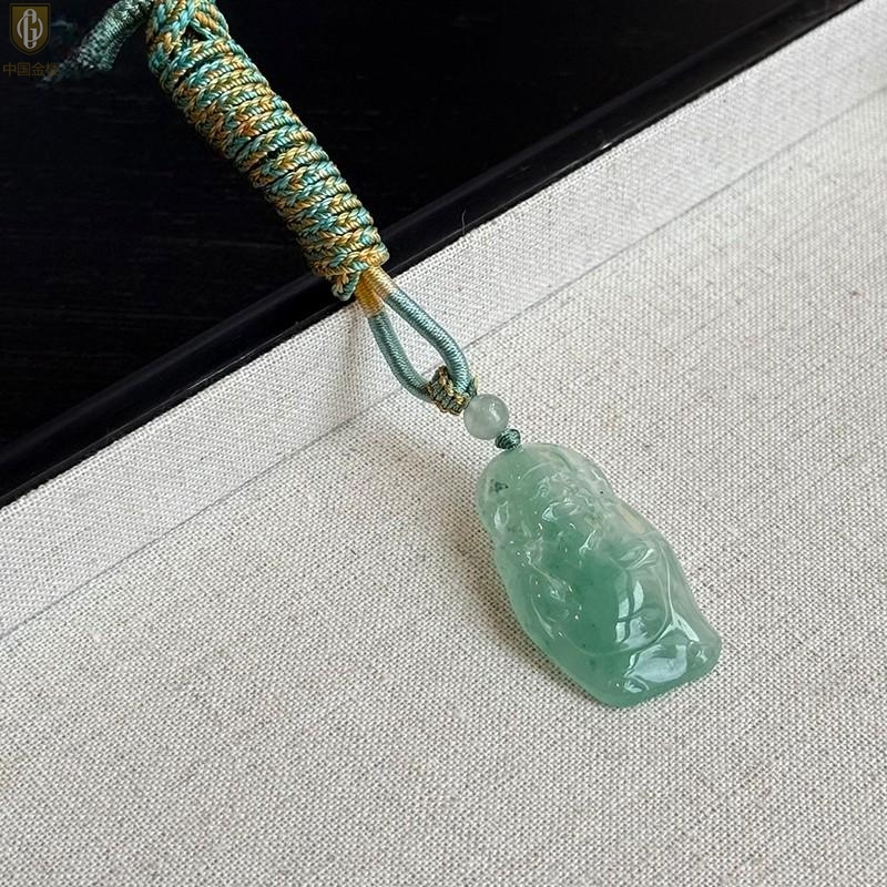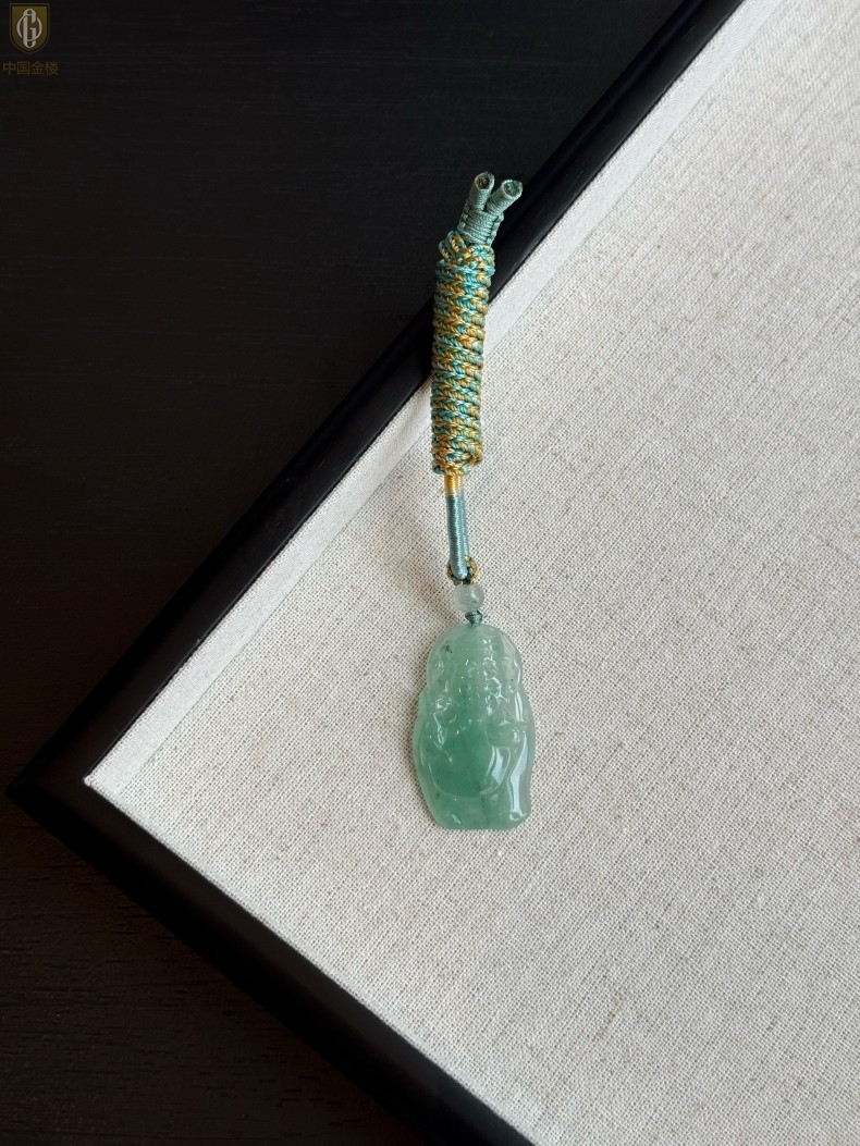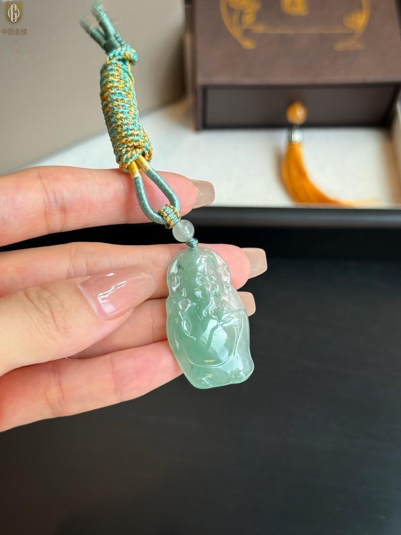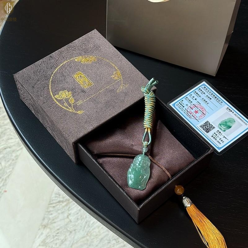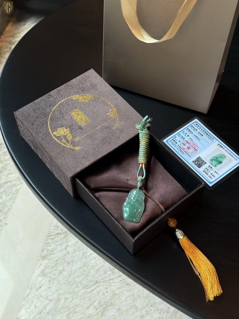 【品名】中国金楼TS专属A级冰绿非洲翠财神爷吊坠(传承礼盒)
