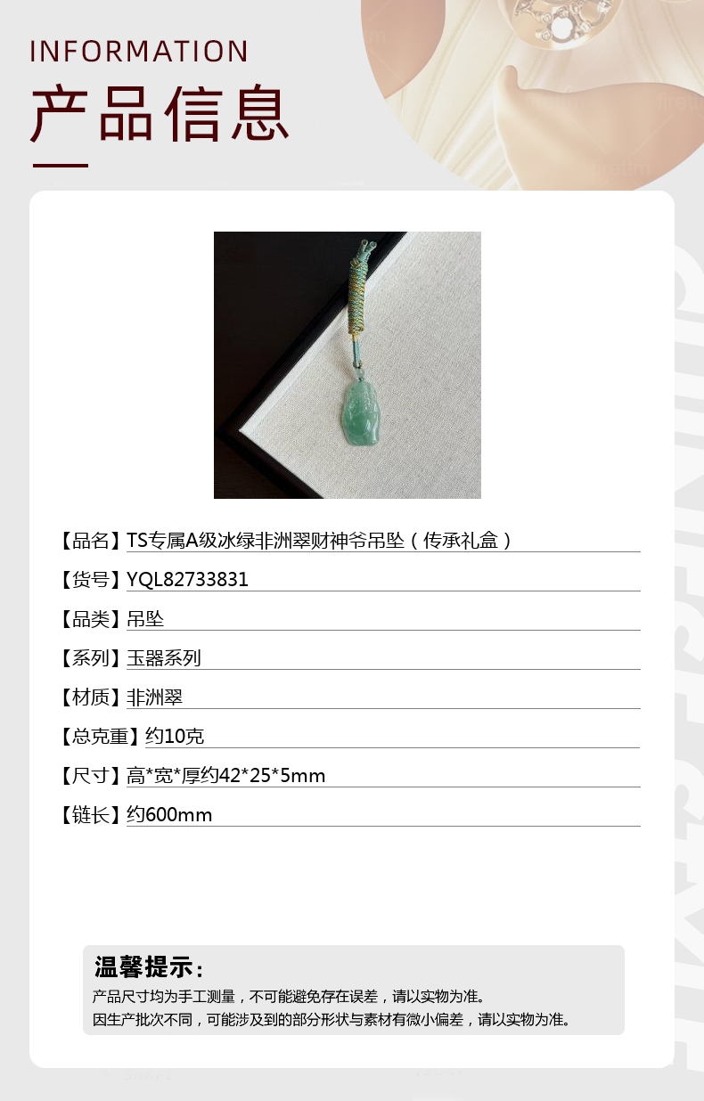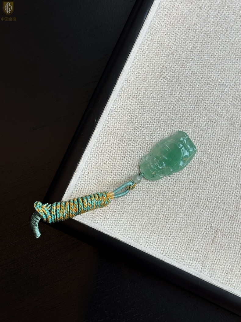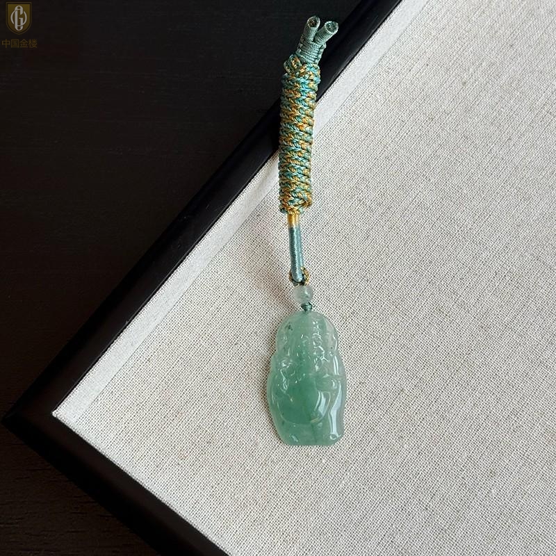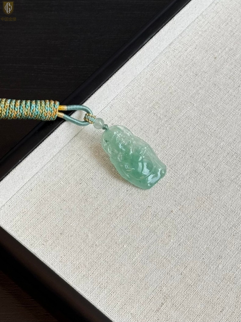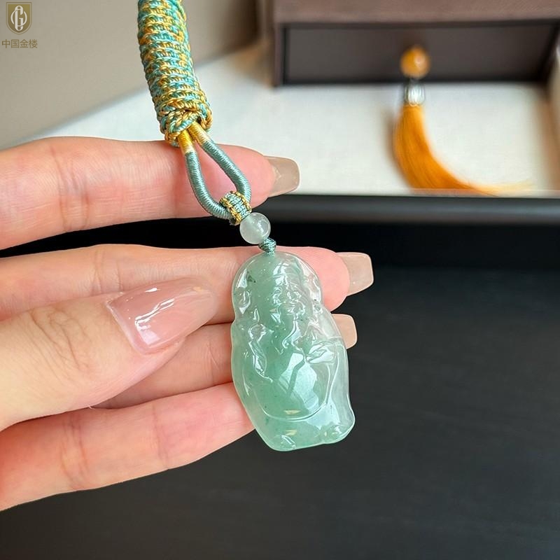 【品名】中国金楼TS专属A级冰绿非洲翠财神爷吊坠(传承礼盒)
