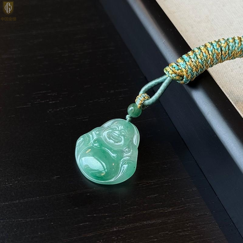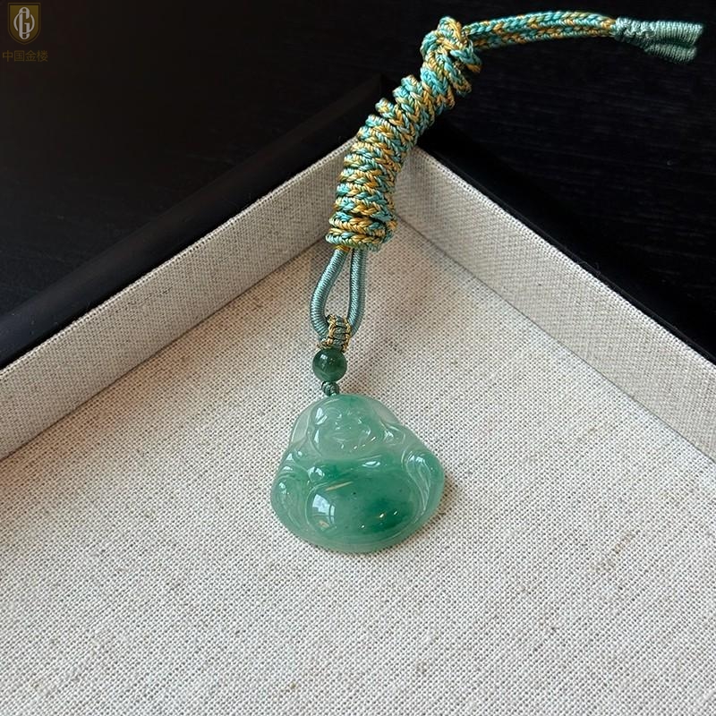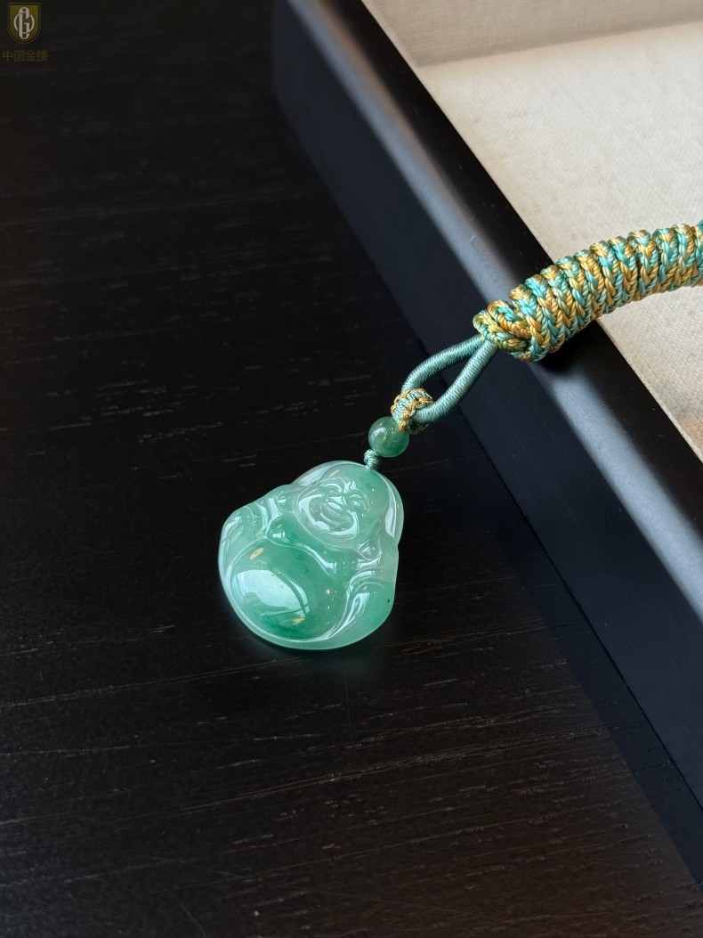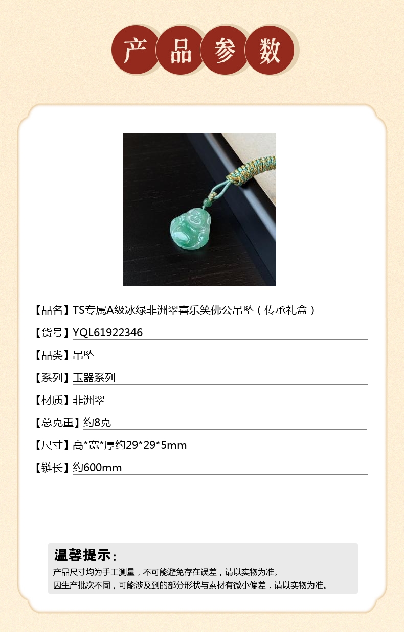【品名】中国金楼TS专属A级冰绿非洲翠喜乐笑佛公吊坠(传承礼盒)