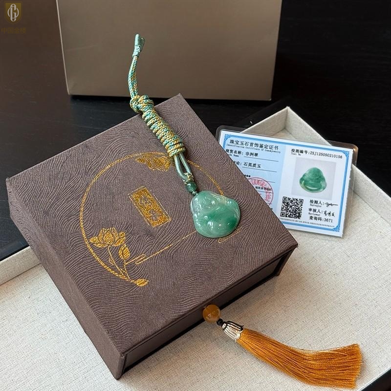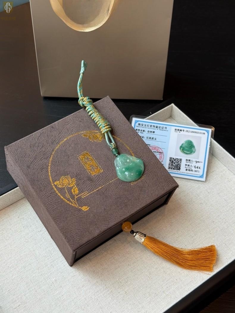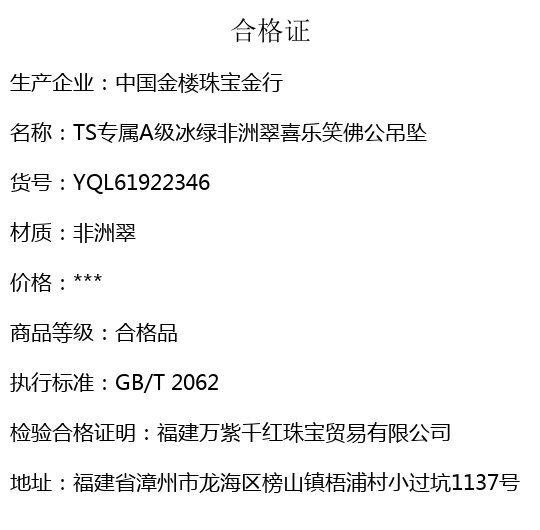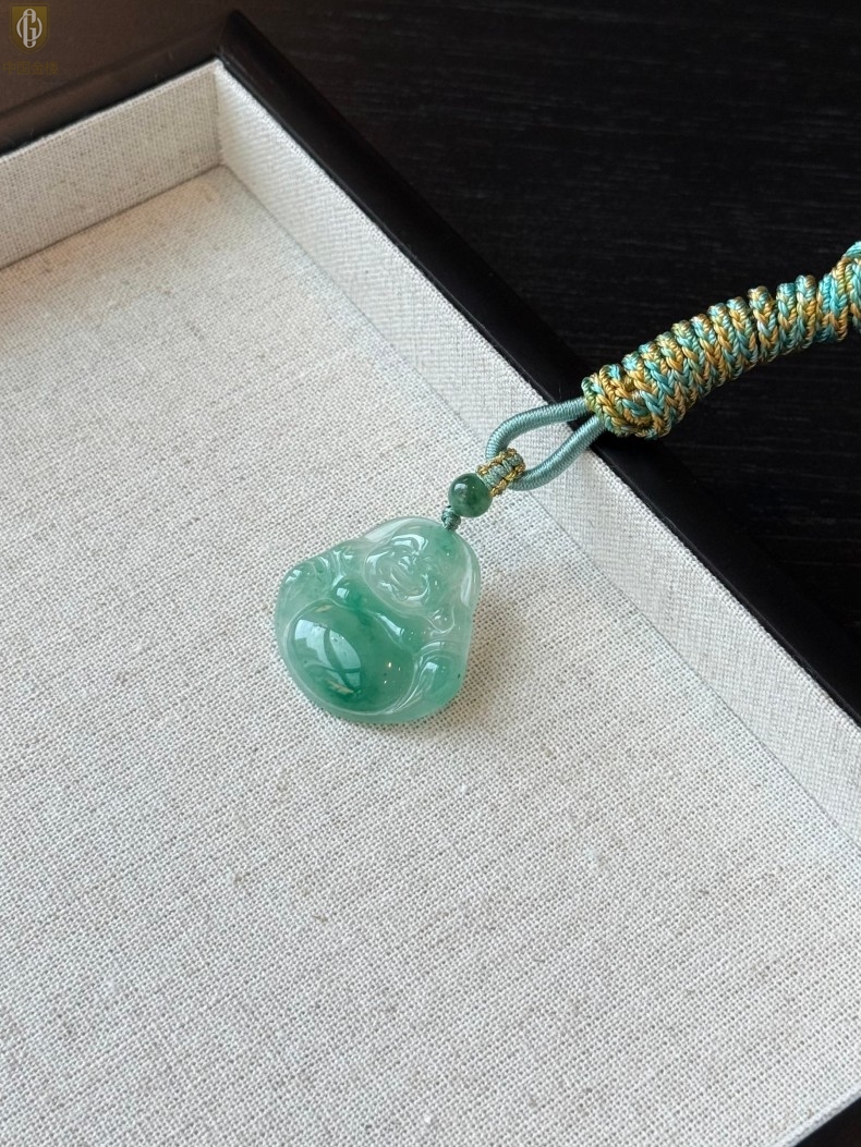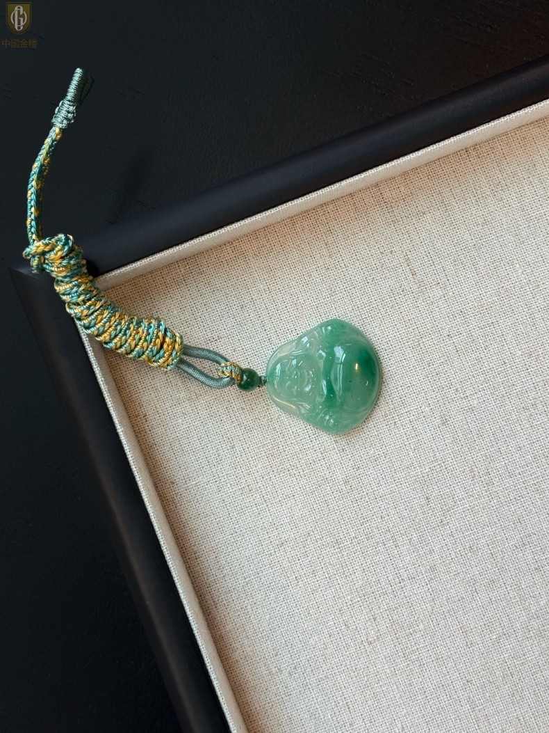 【品名】中国金楼TS专属A级冰绿非洲翠喜乐笑佛公吊坠(传承礼盒)