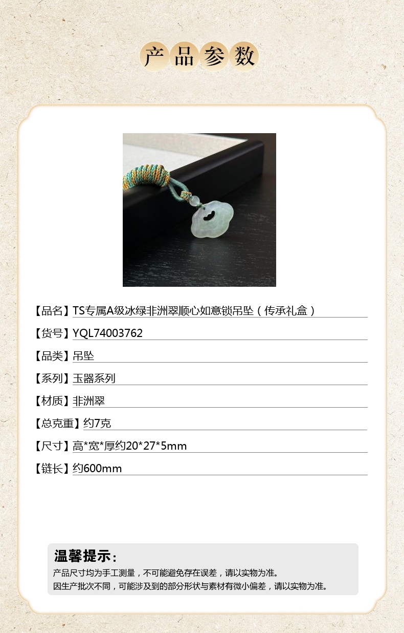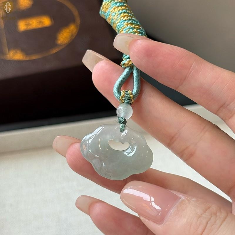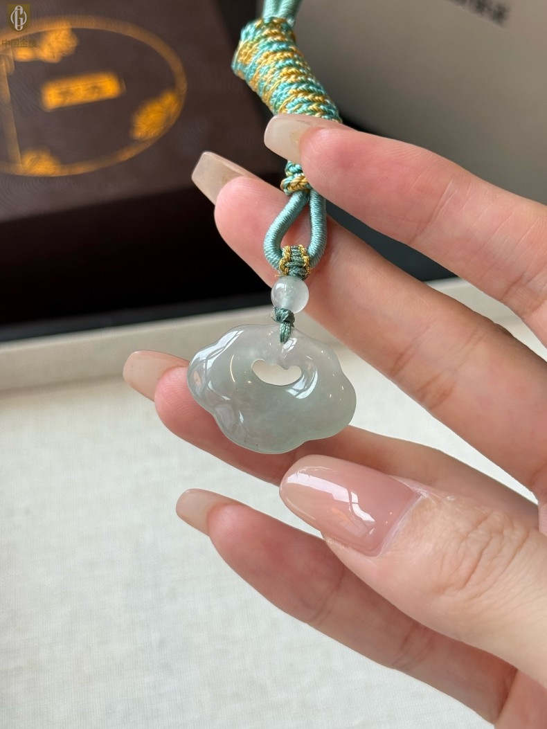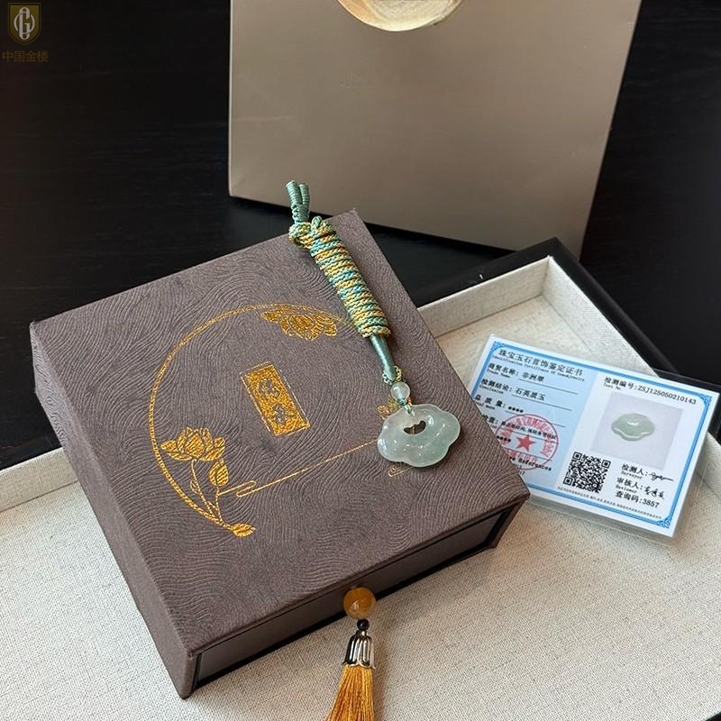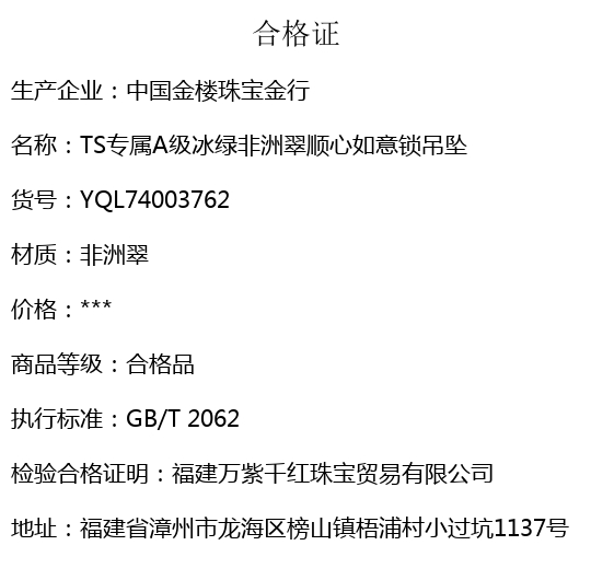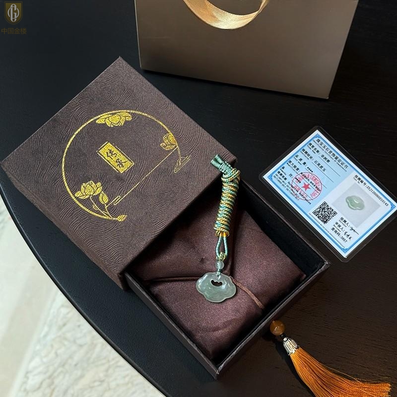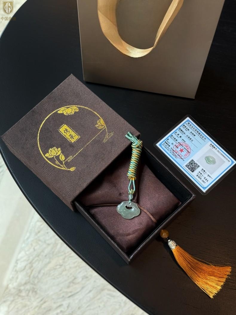 【品名】中国金楼TS专属A级冰绿非洲翠顺心如意锁吊坠(传承礼盒)