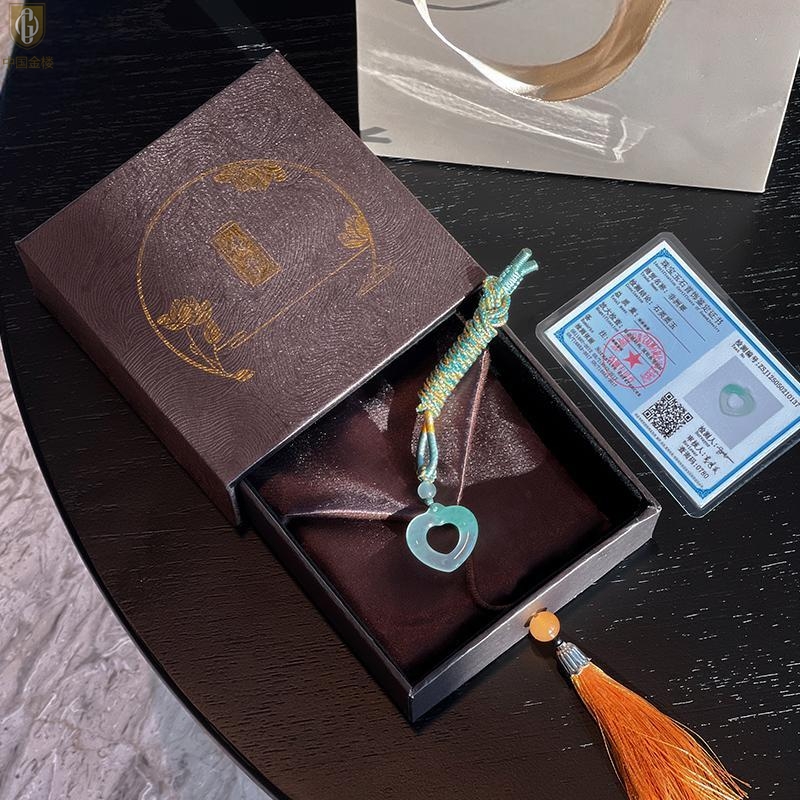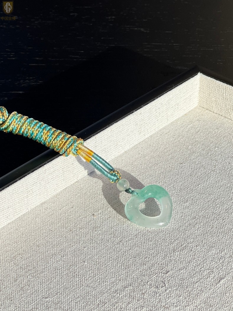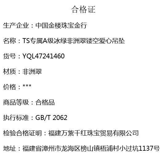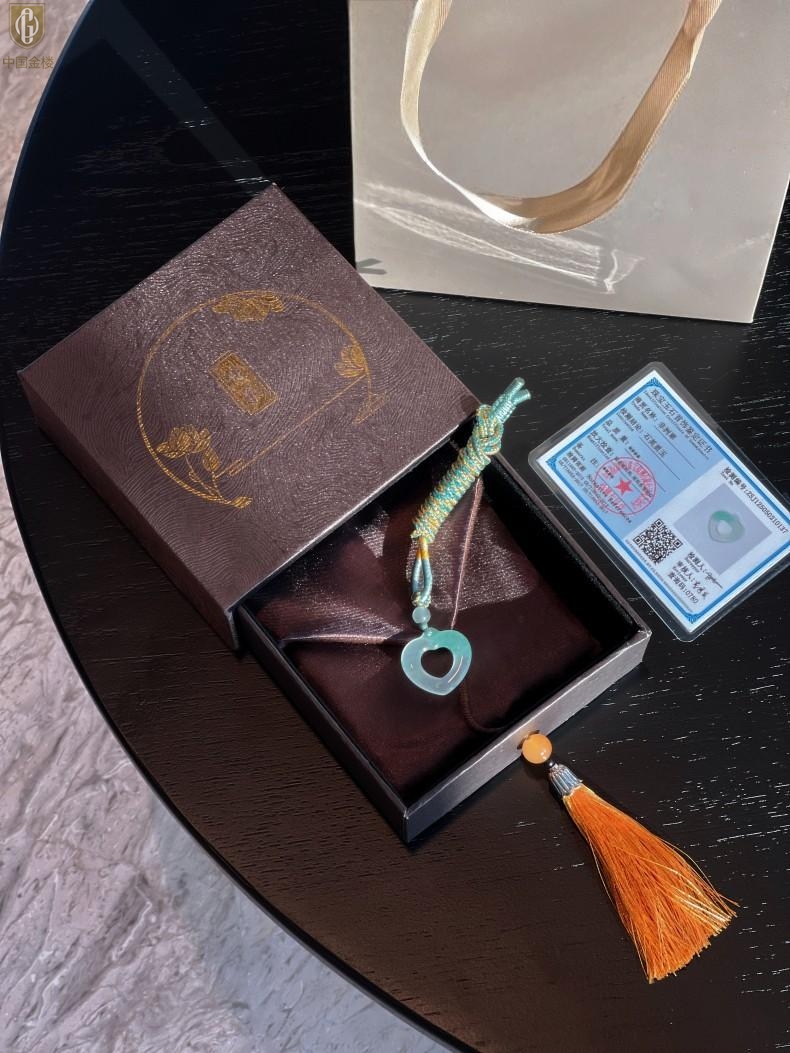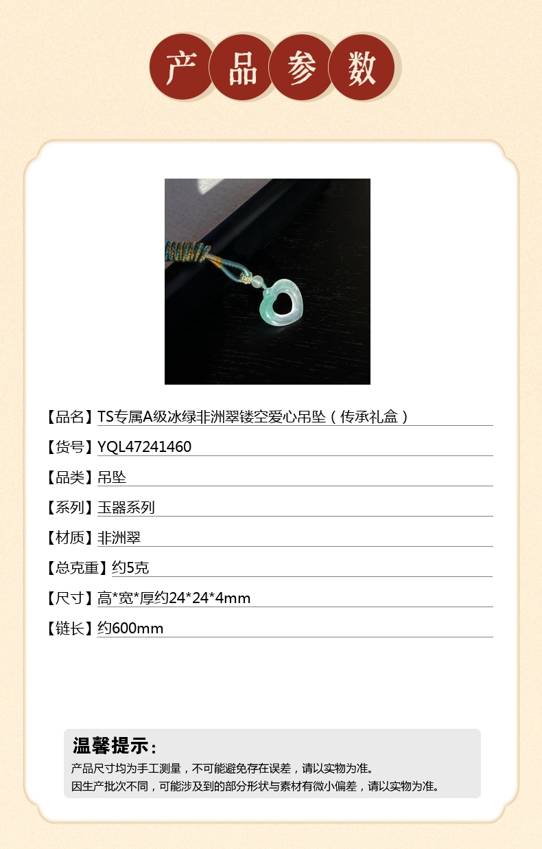 【品名】中国金楼TS专属A级冰绿非洲翠镂空爱心吊坠(传承礼盒)