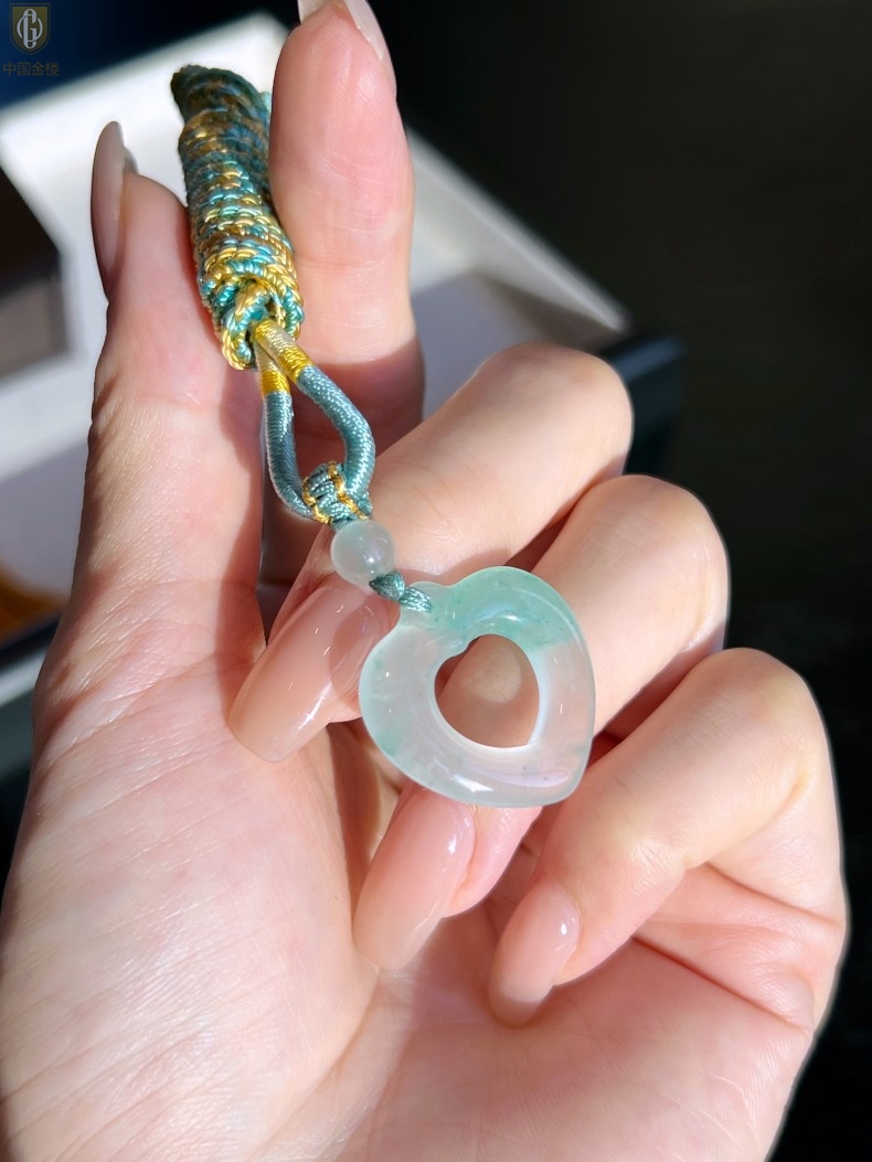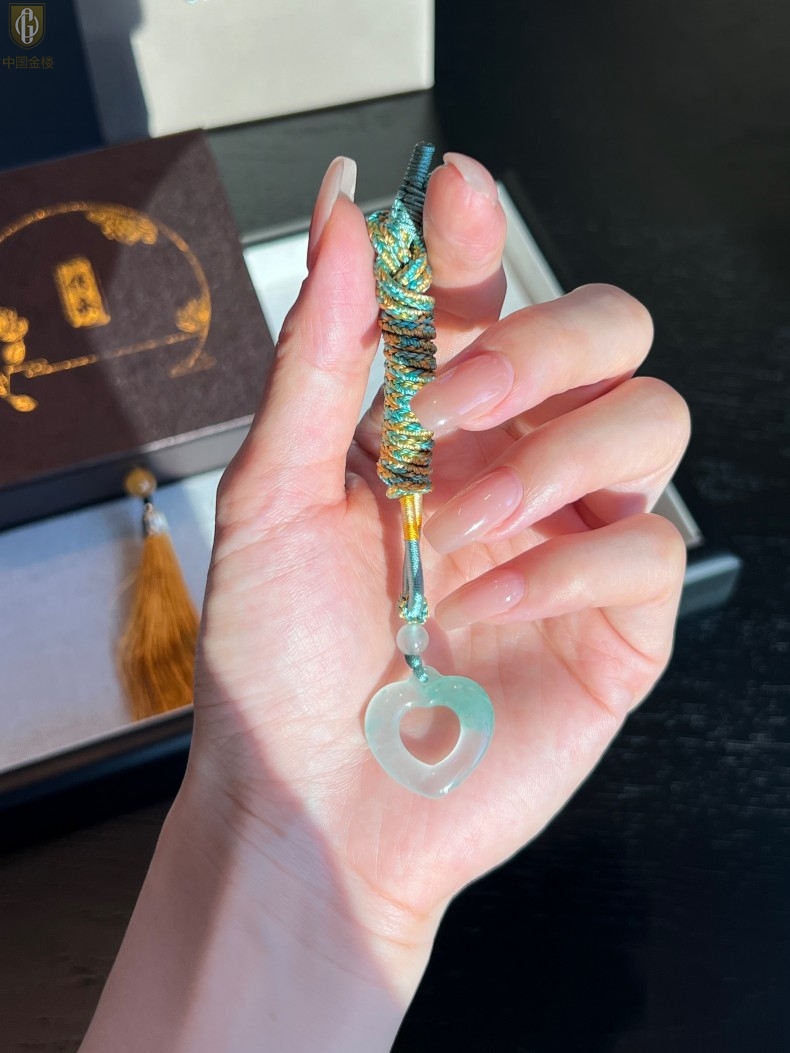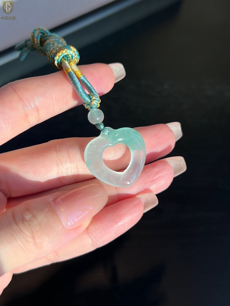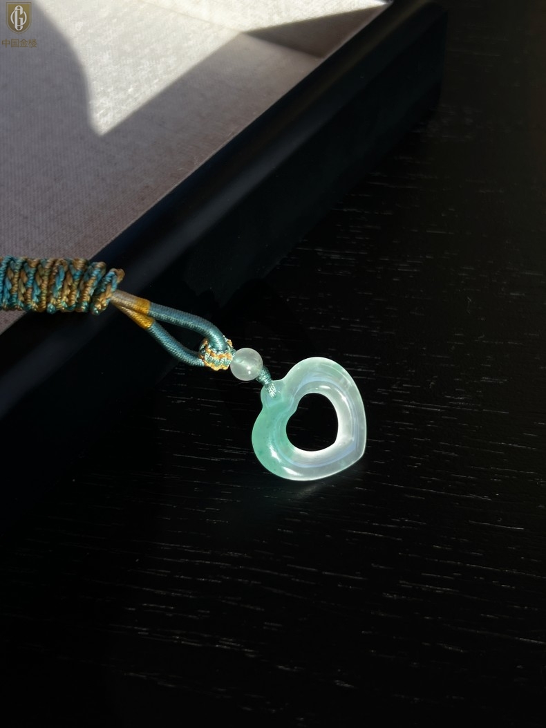 【品名】中国金楼TS专属A级冰绿非洲翠镂空爱心吊坠(传承礼盒)