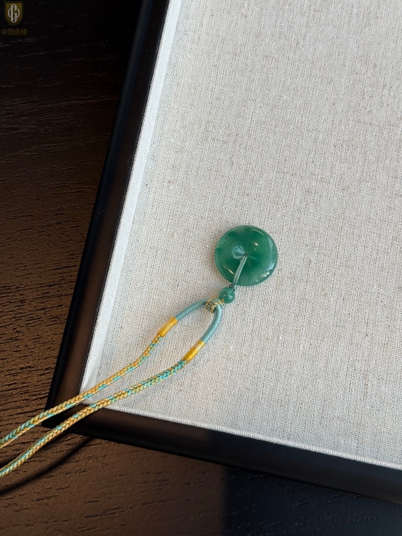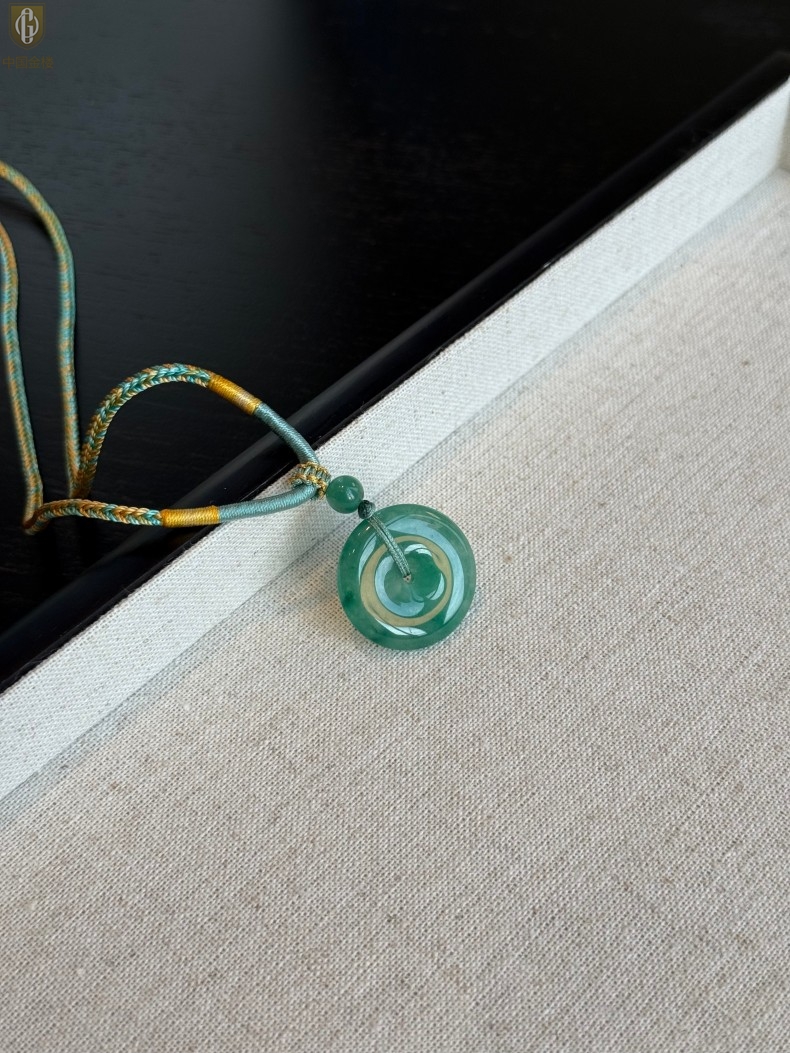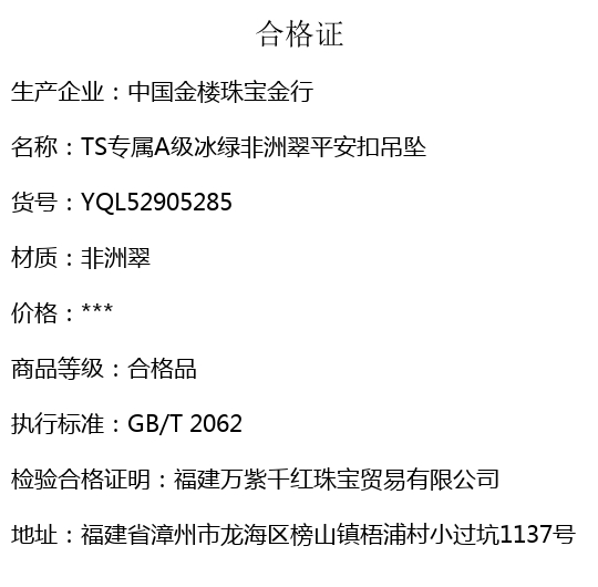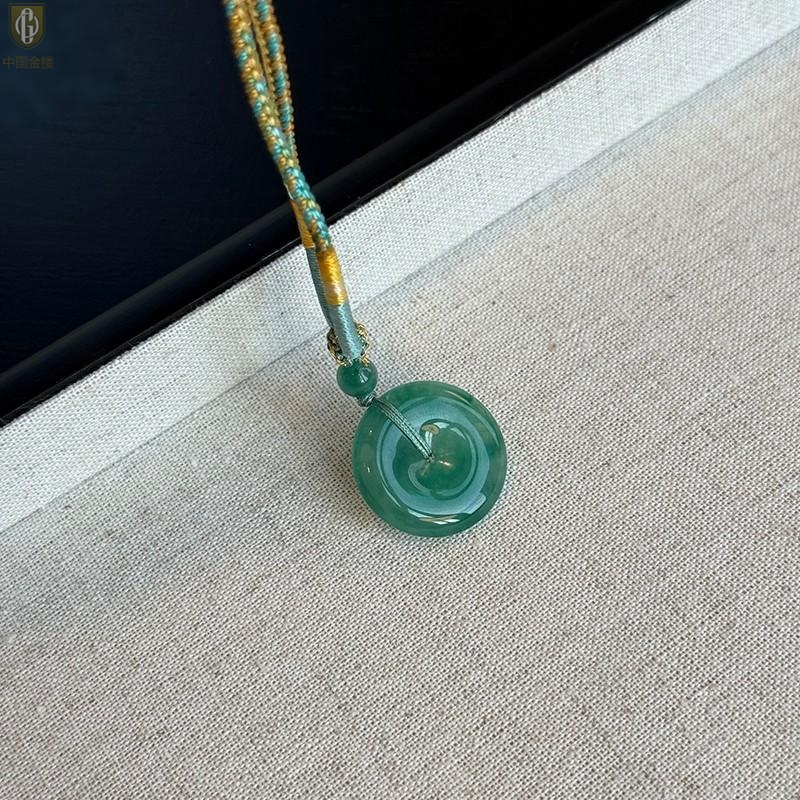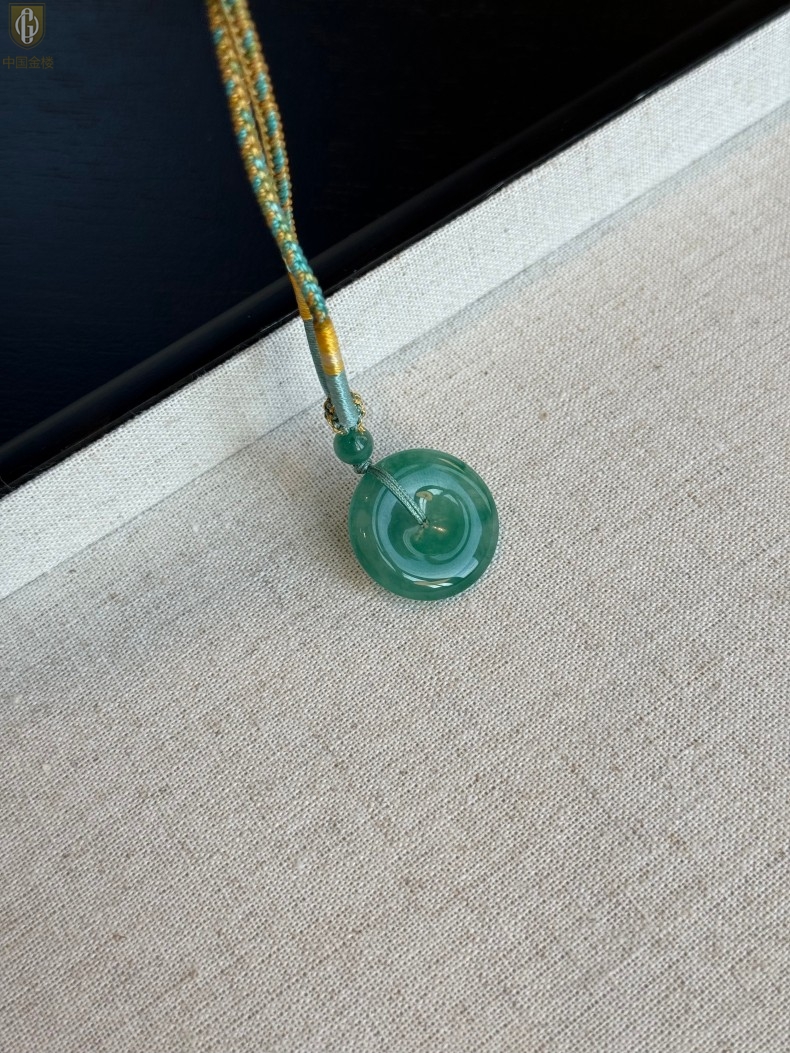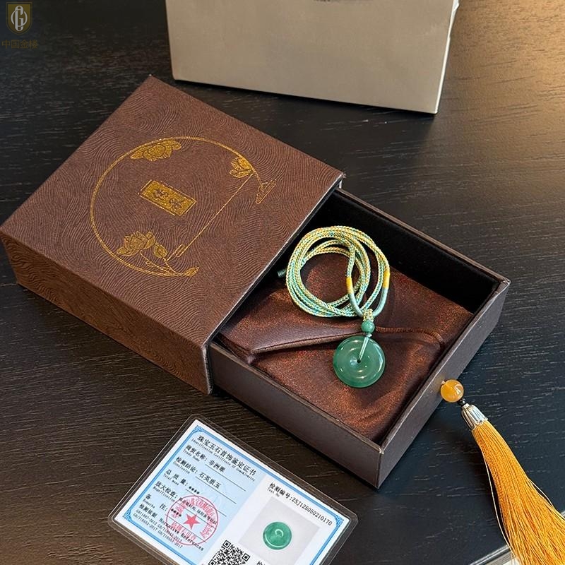 【品名】中国金楼TS专属A级冰绿非洲翠平安扣吊坠(传承礼盒)