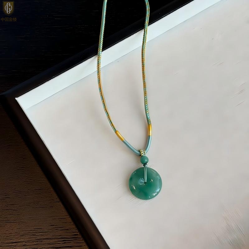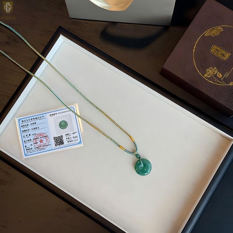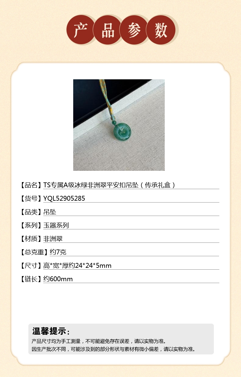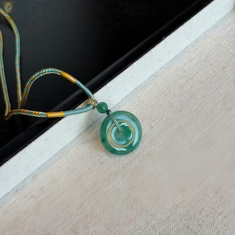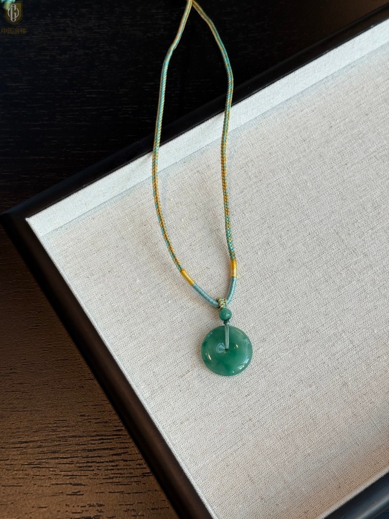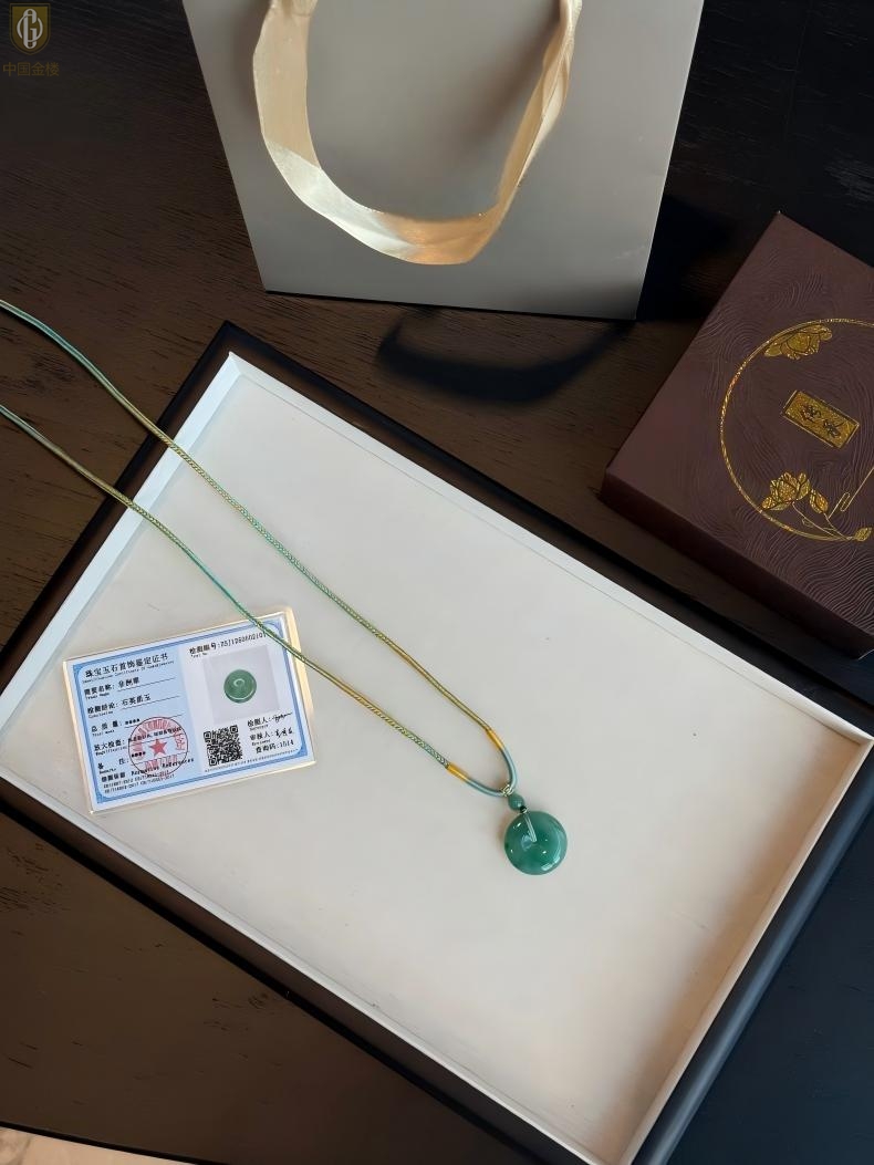 【品名】中国金楼TS专属A级冰绿非洲翠平安扣吊坠(传承礼盒)