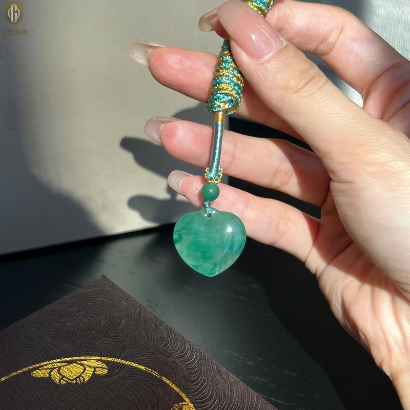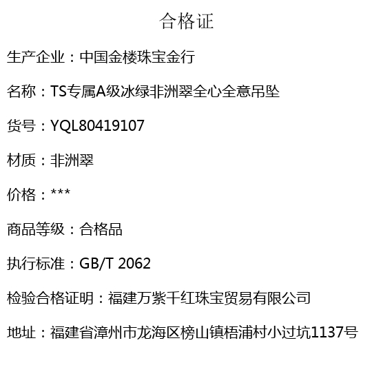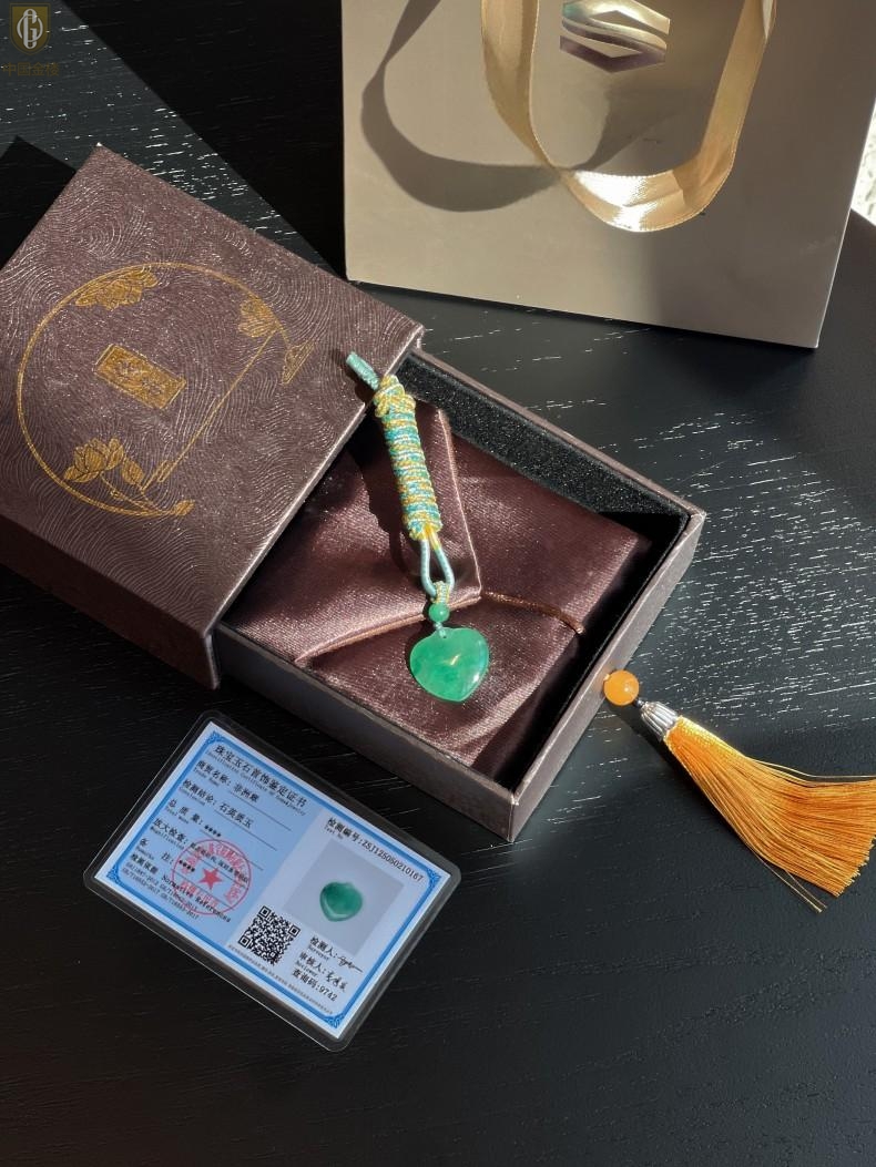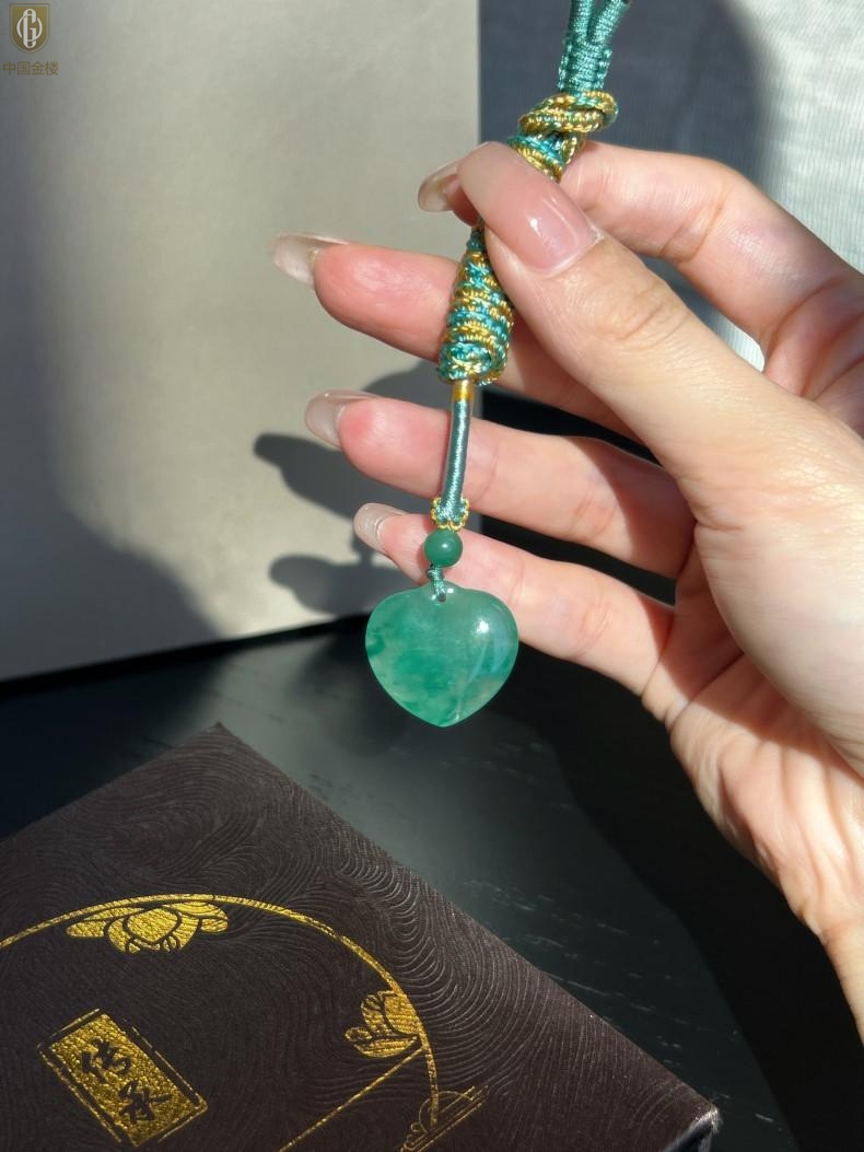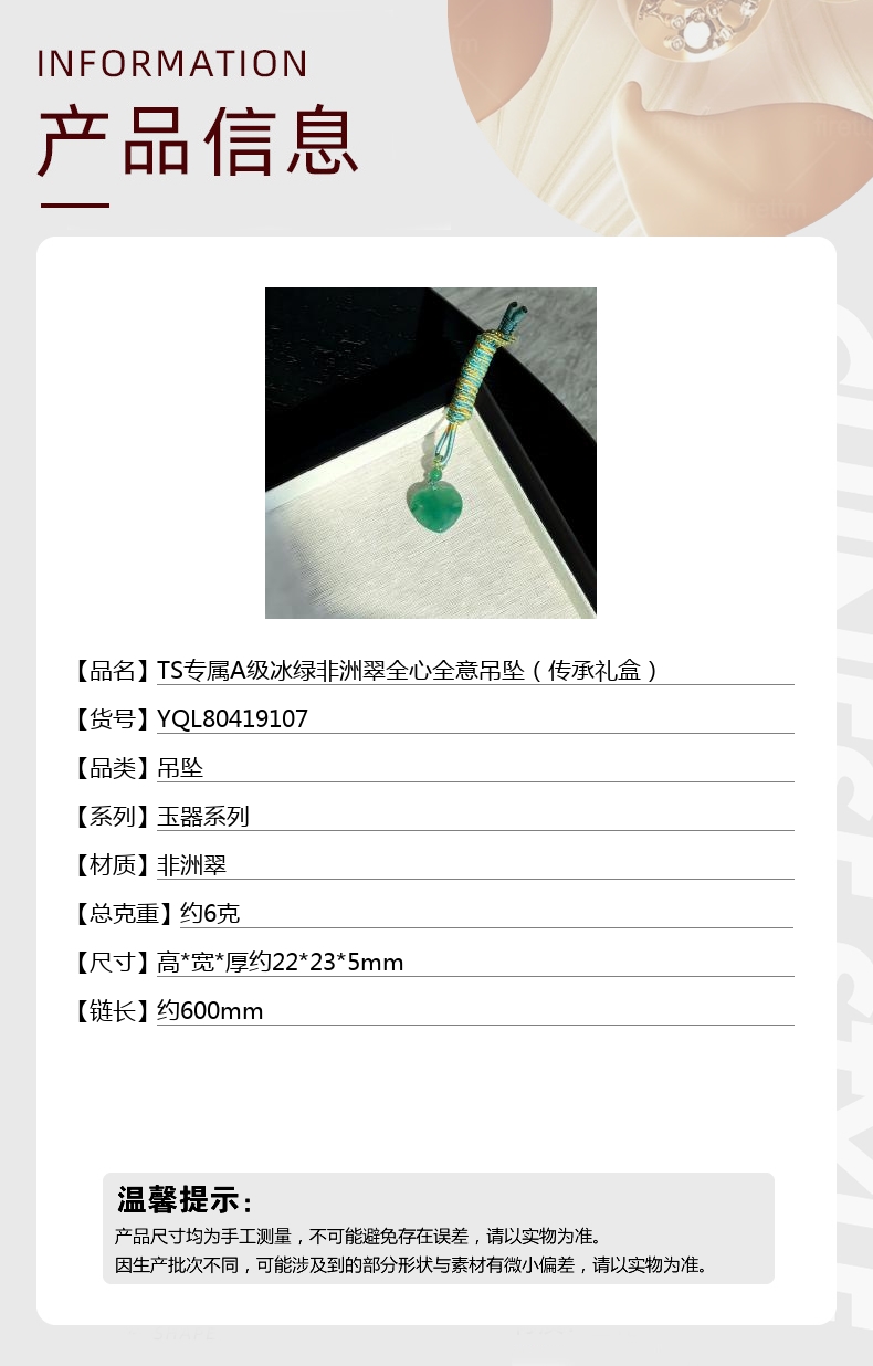 【品名】中国金楼TS专属A级冰绿非洲翠全心全意吊坠(传承礼盒)