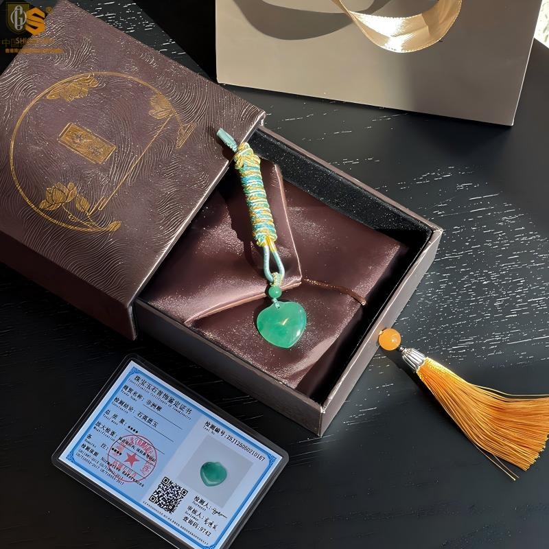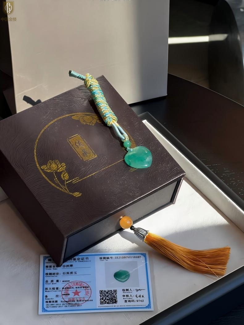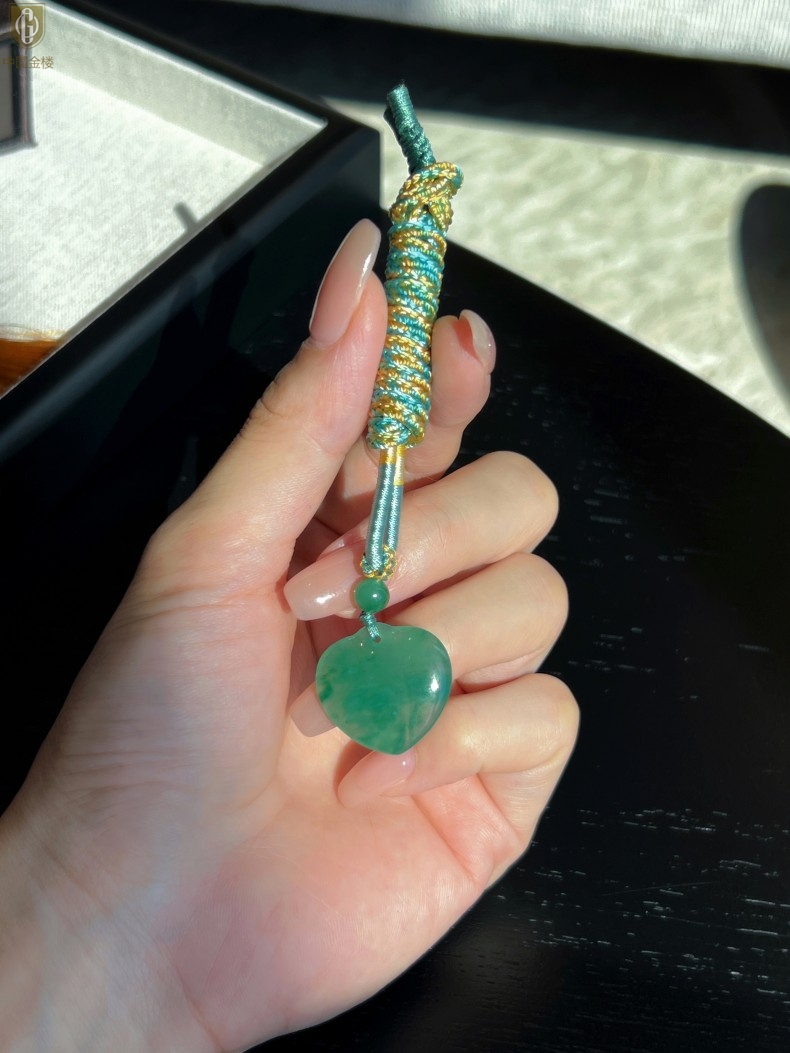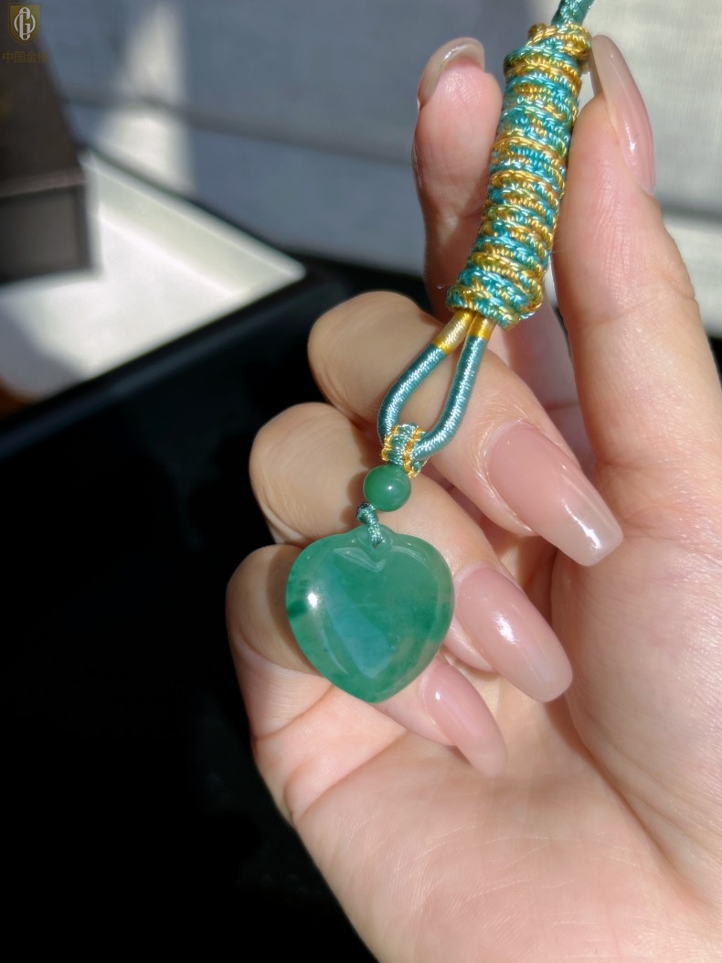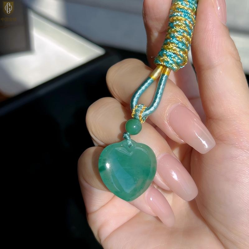 【品名】中国金楼TS专属A级冰绿非洲翠全心全意吊坠(传承礼盒)