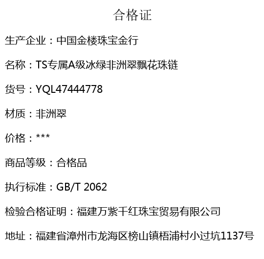 【套装包含】首饰+传承礼盒+礼品袋+国检证书+质保单+价签