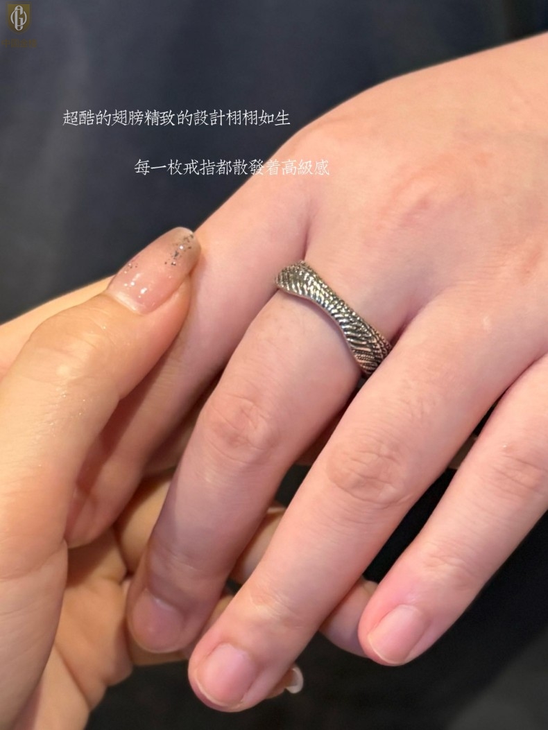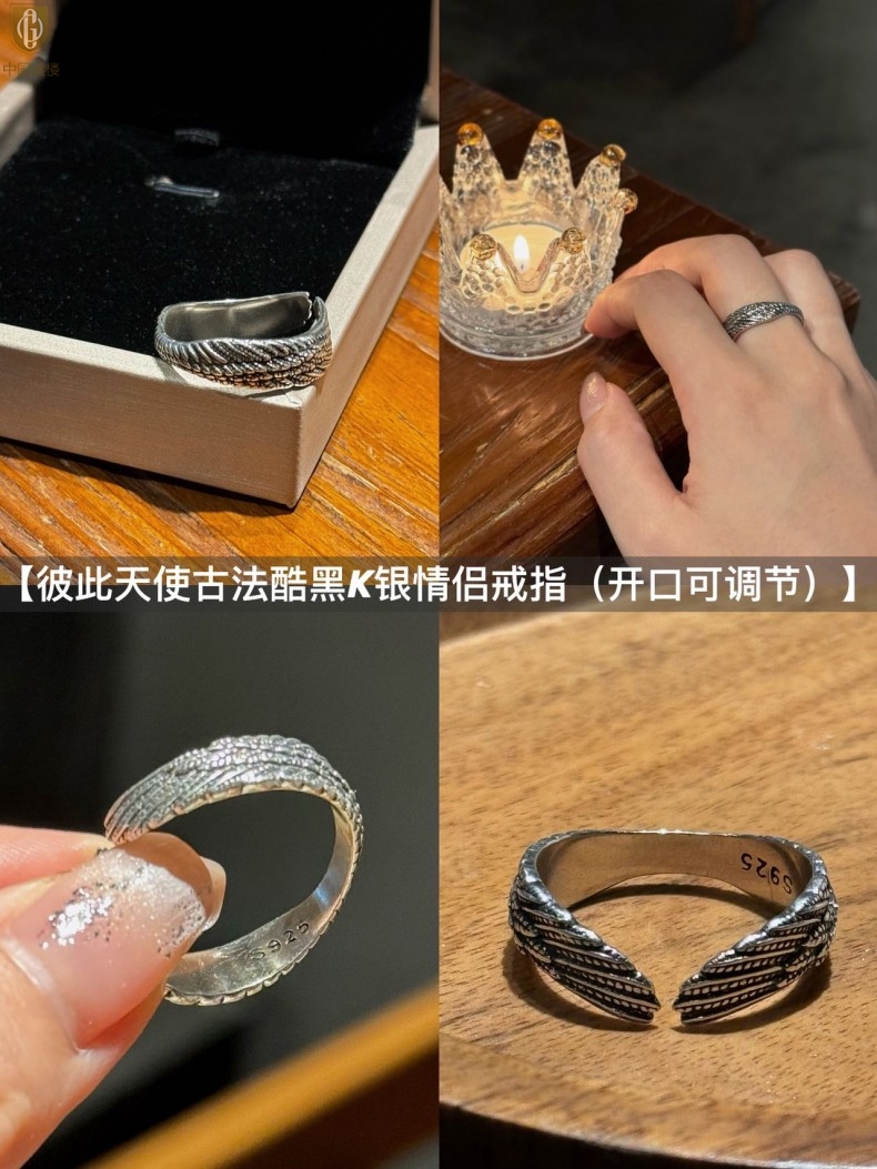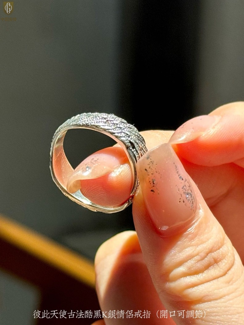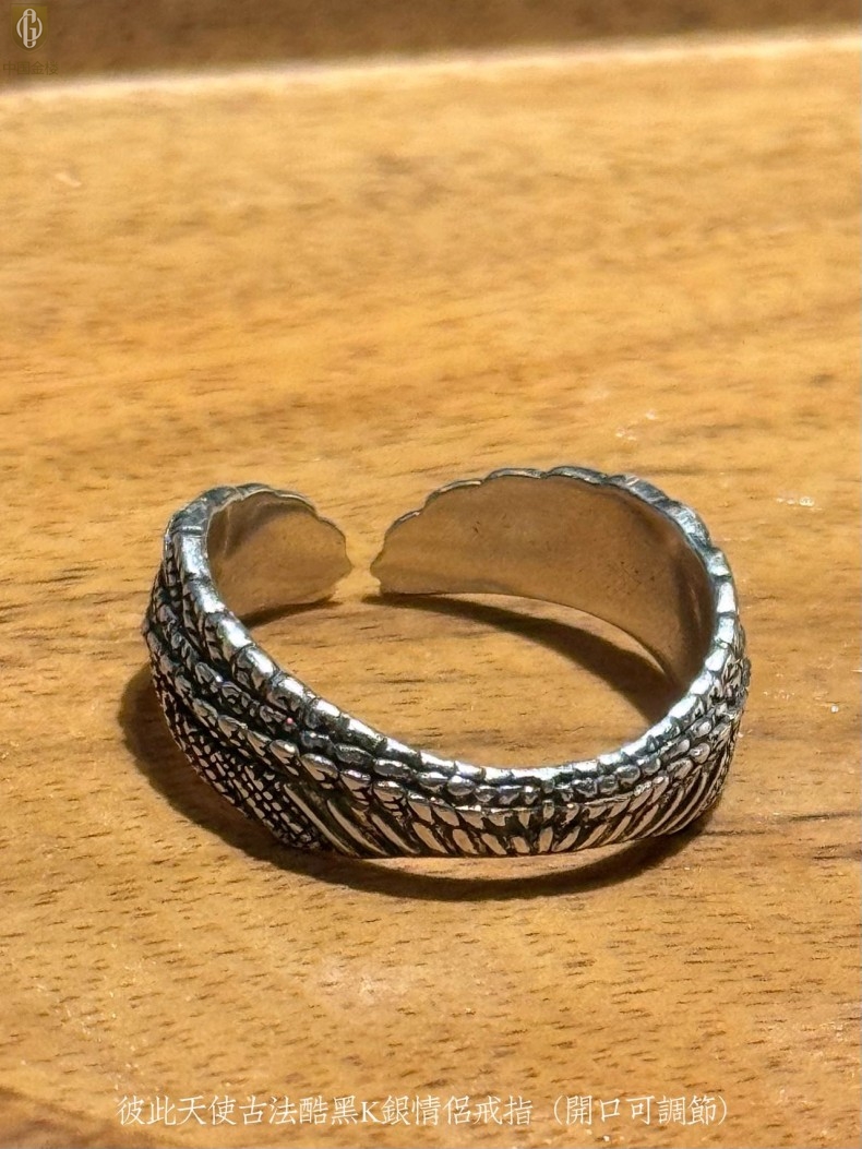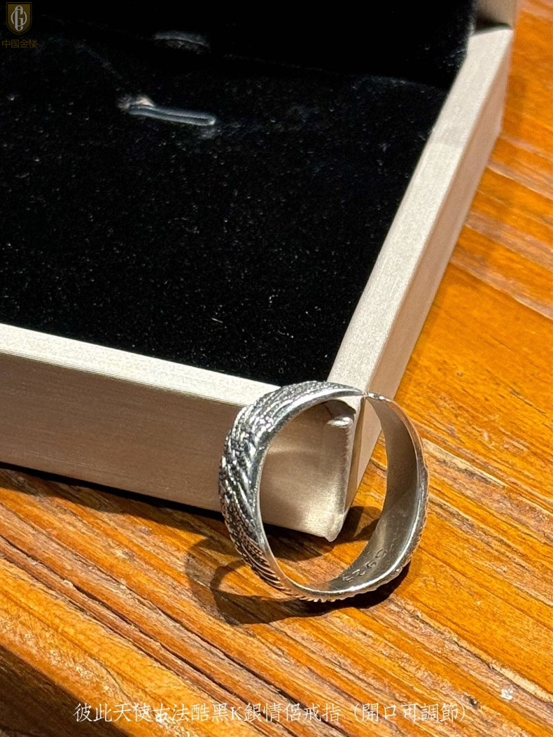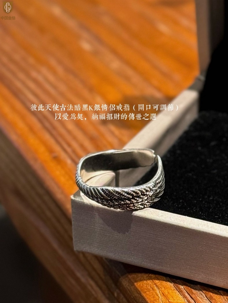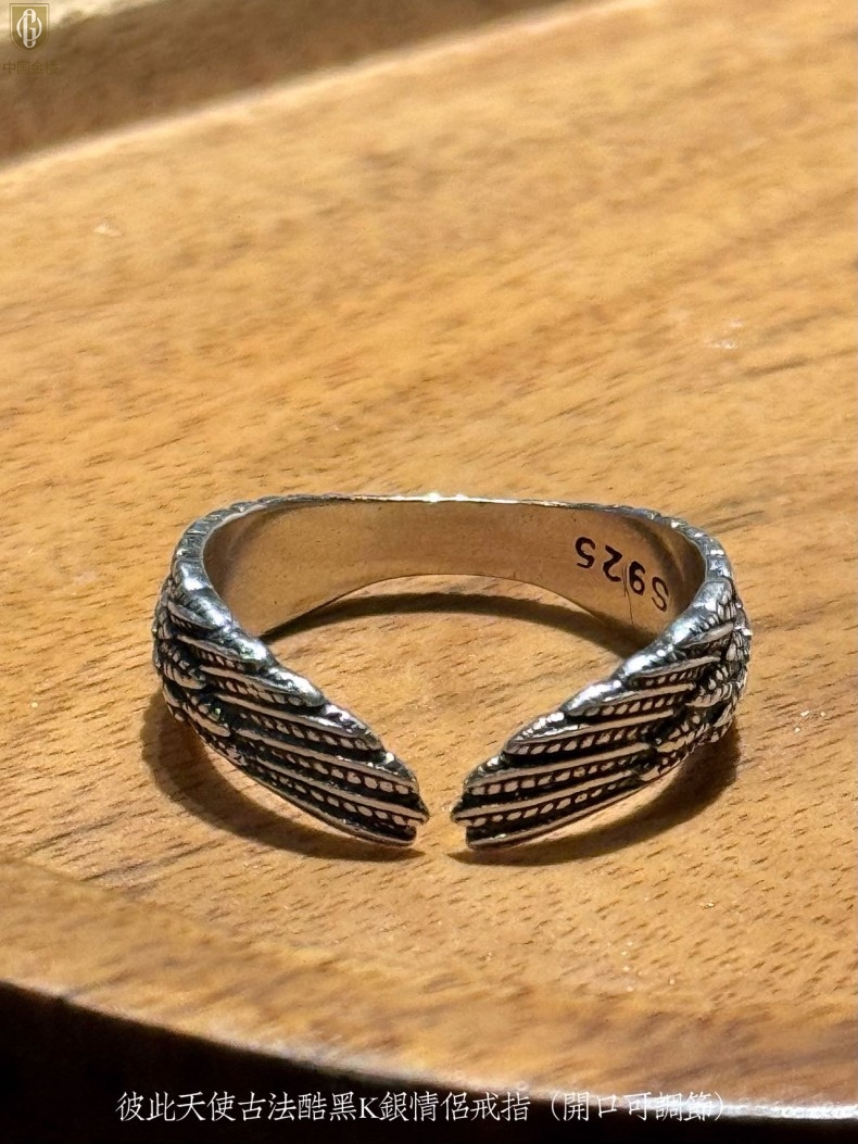 【品名】中国金楼彼此天使古法酷黑K银情侣戒指(开口可调节)