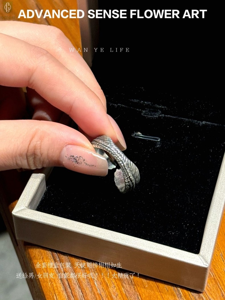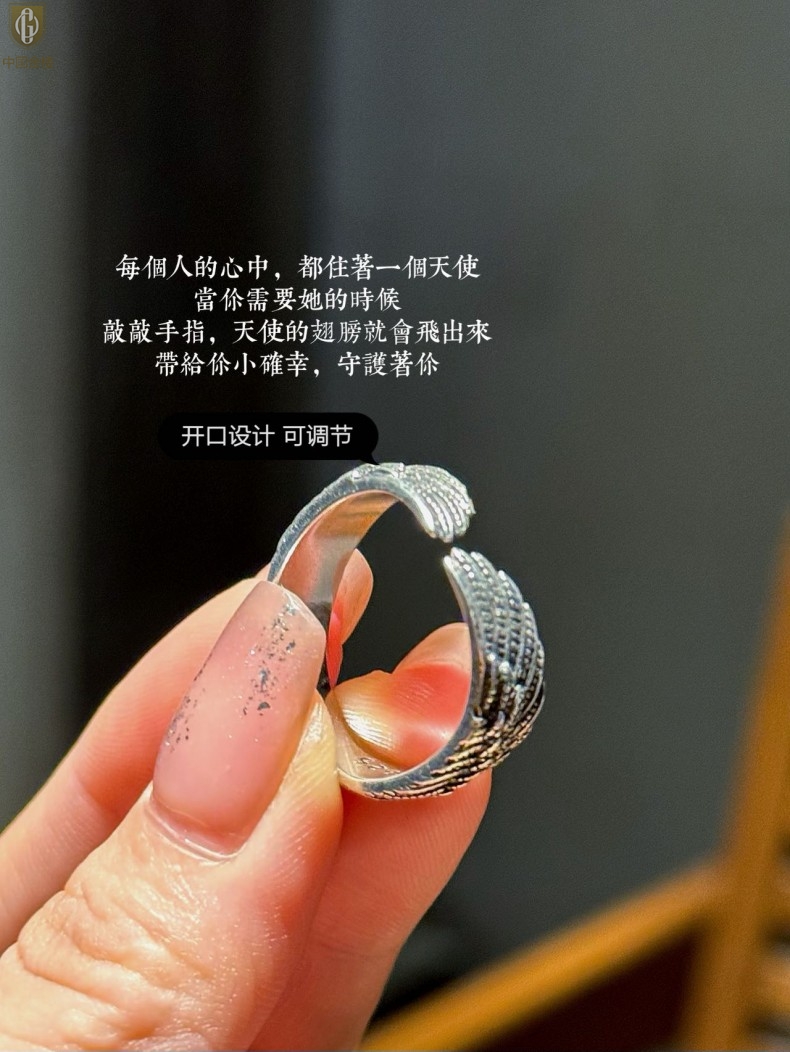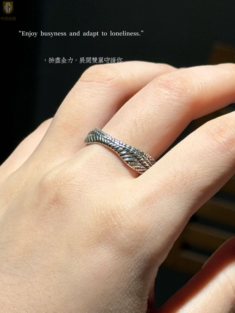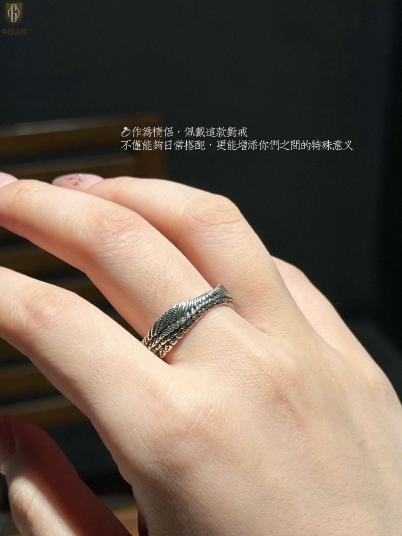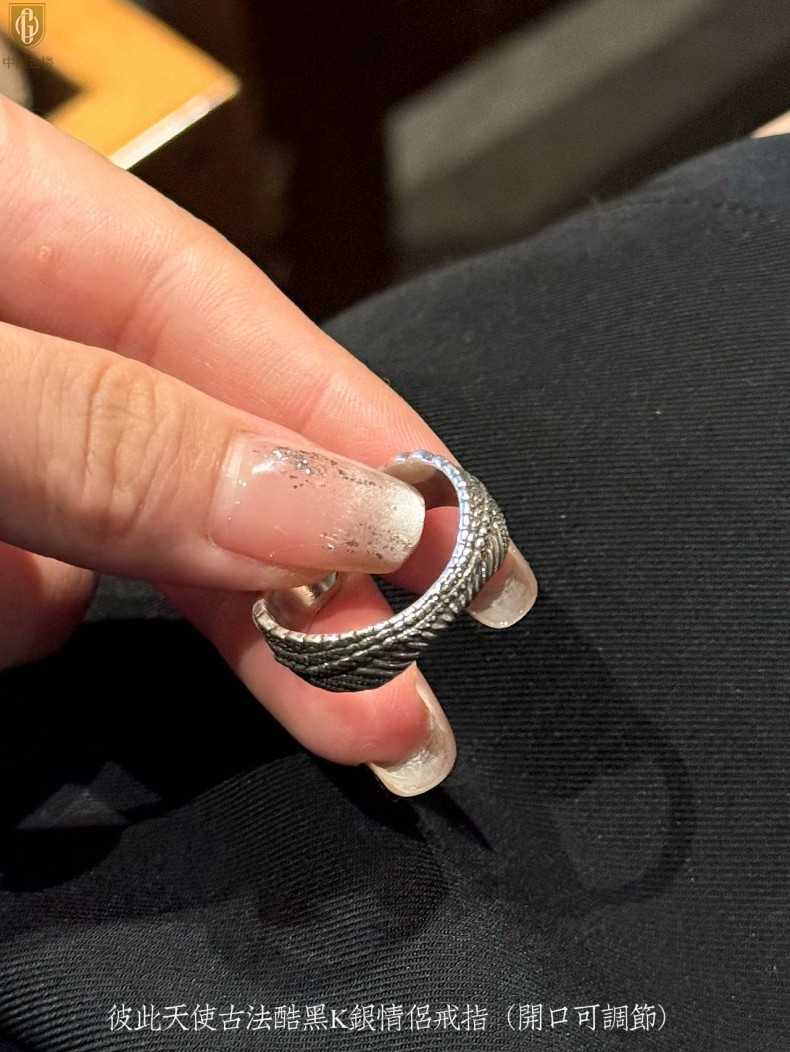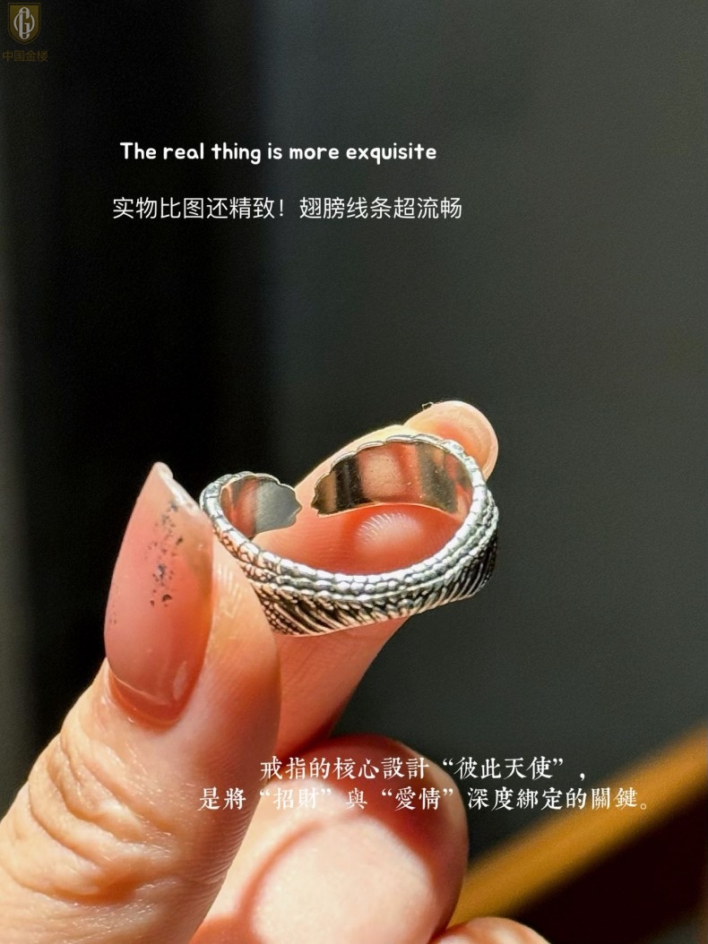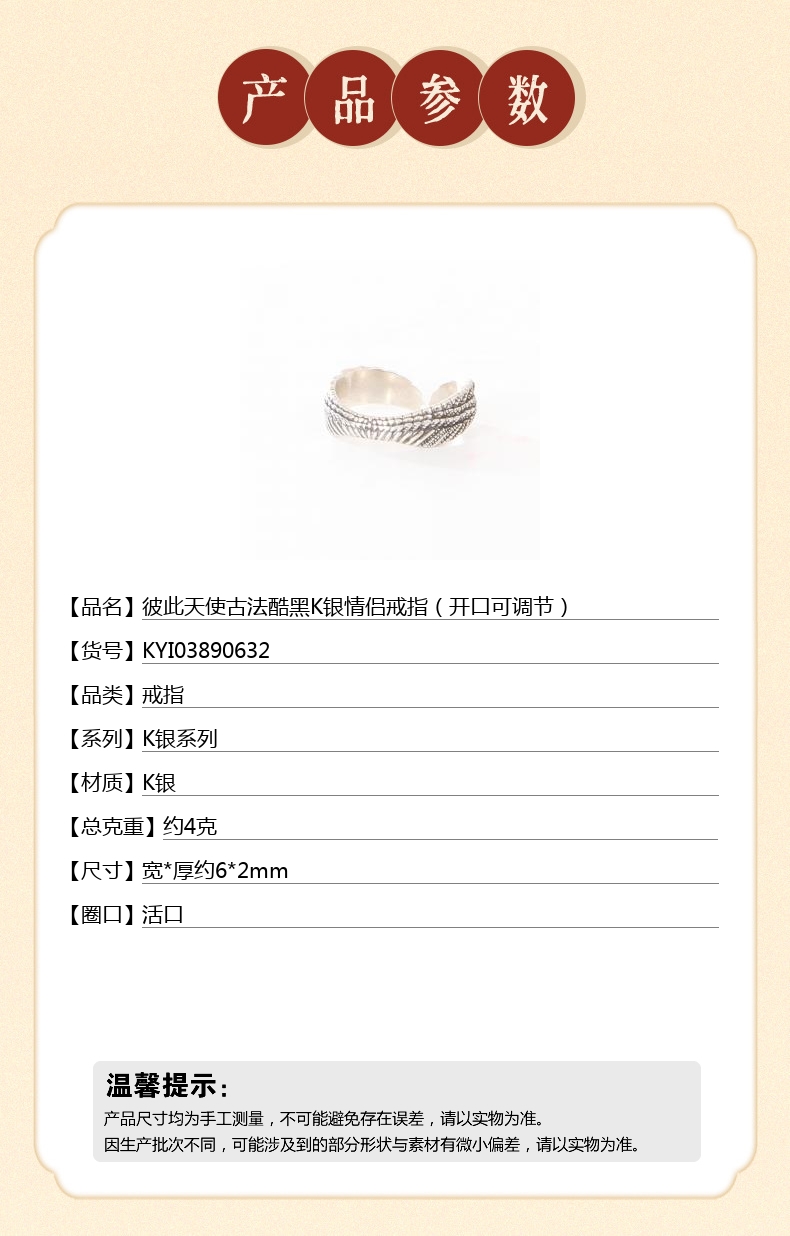 【品名】中国金楼彼此天使古法酷黑K银情侣戒指(开口可调节)