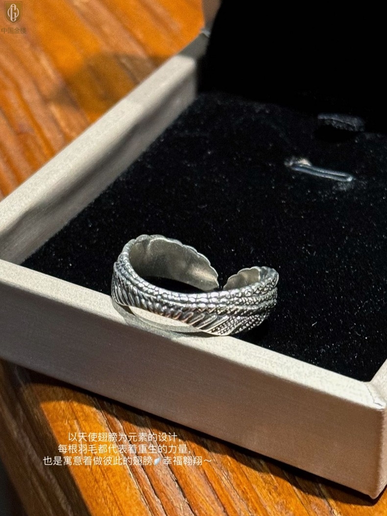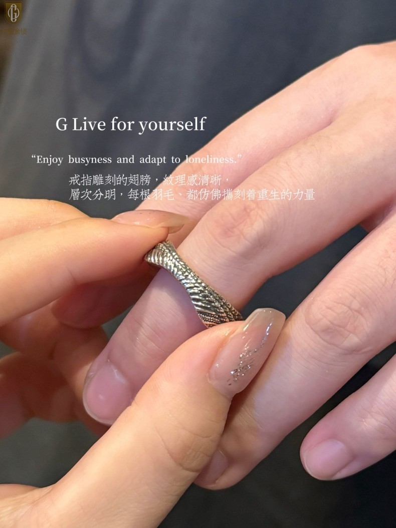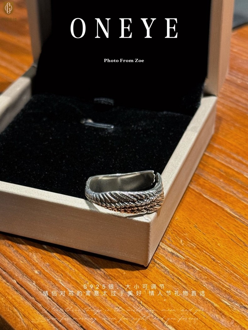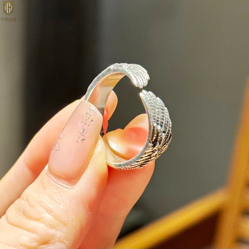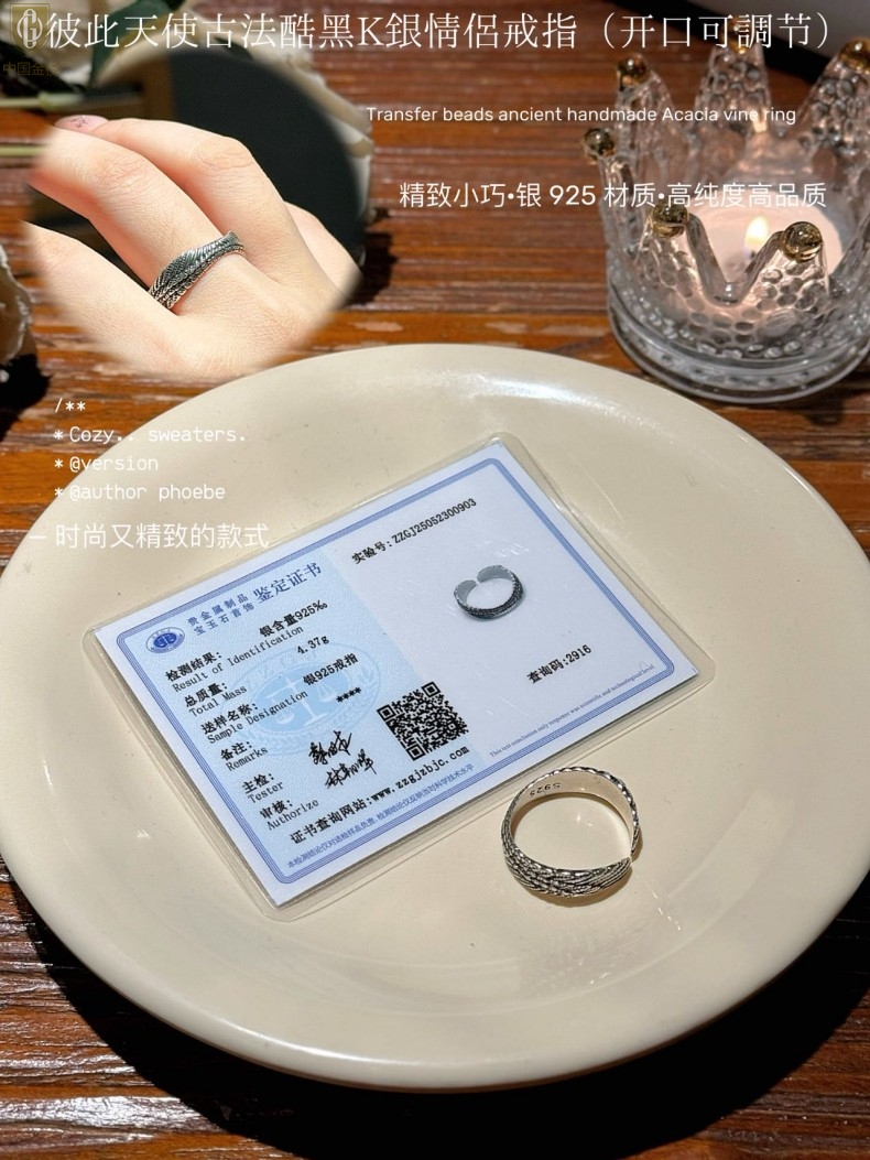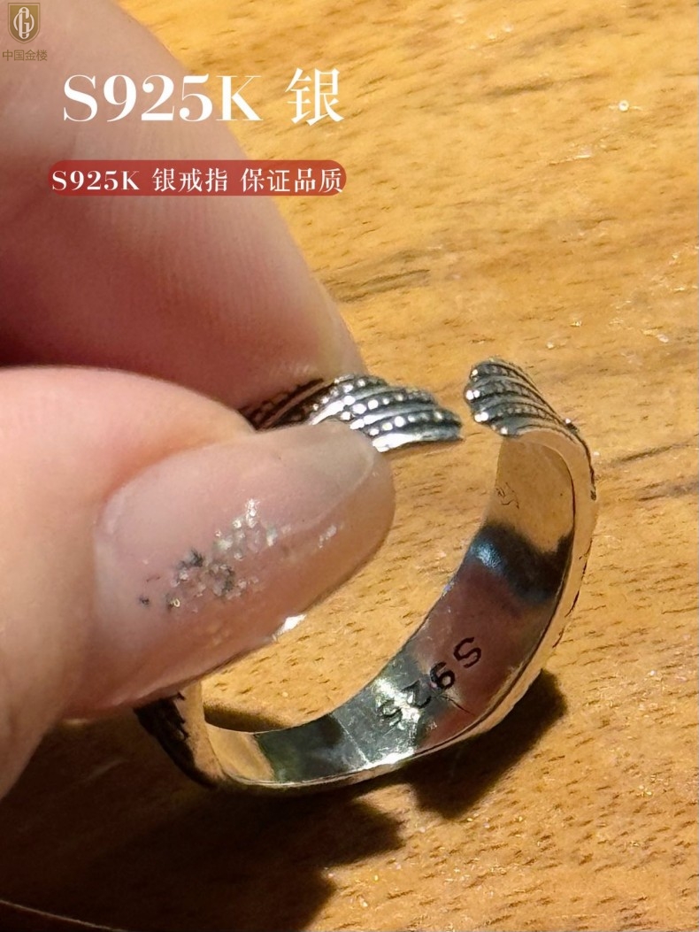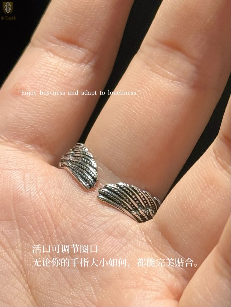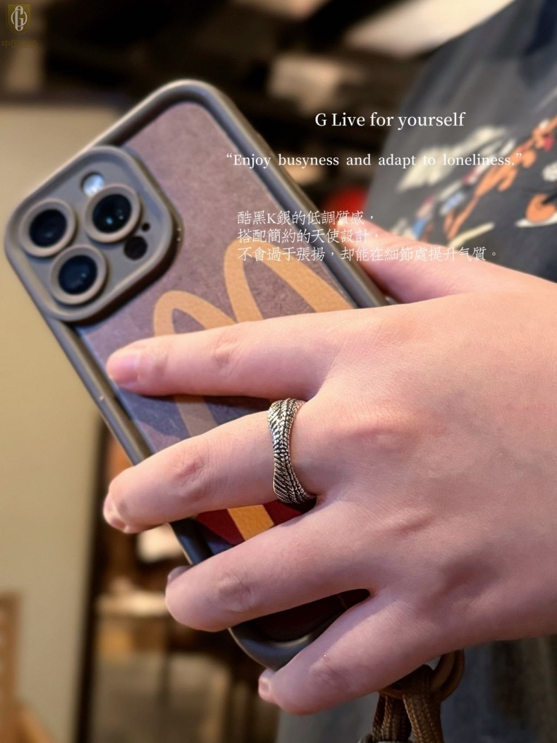 【品名】中国金楼彼此天使古法酷黑K银情侣戒指(开口可调节)