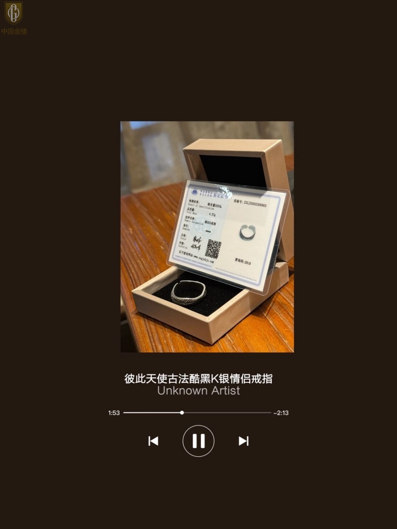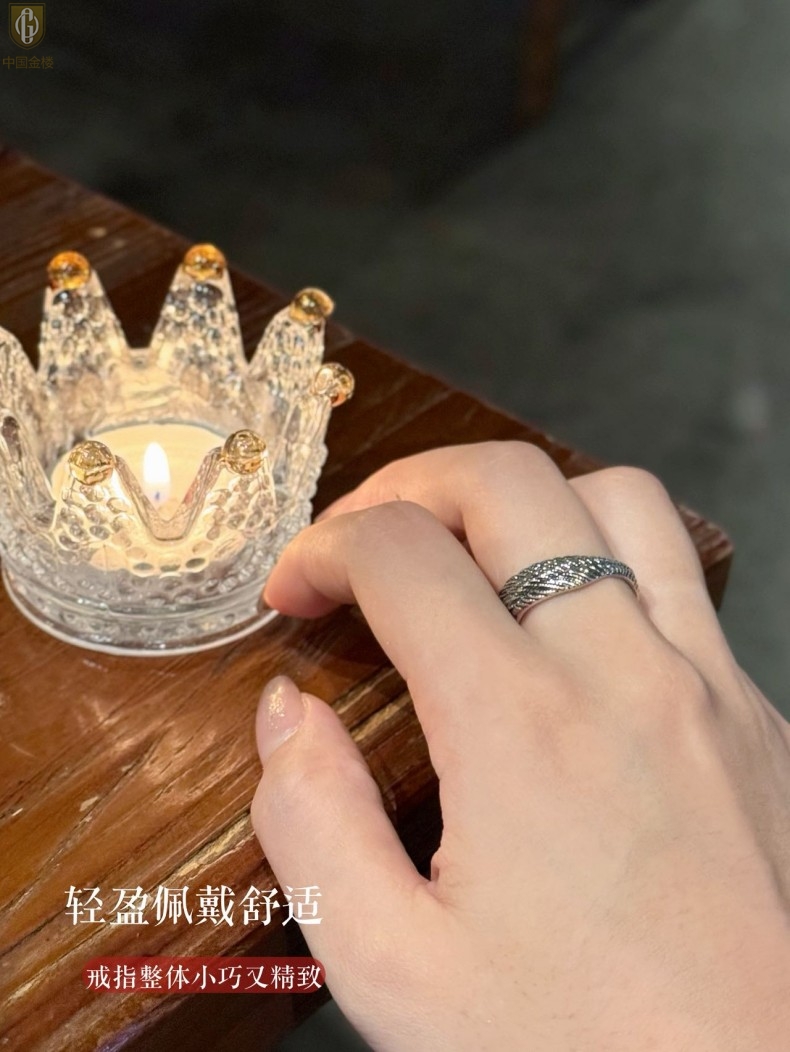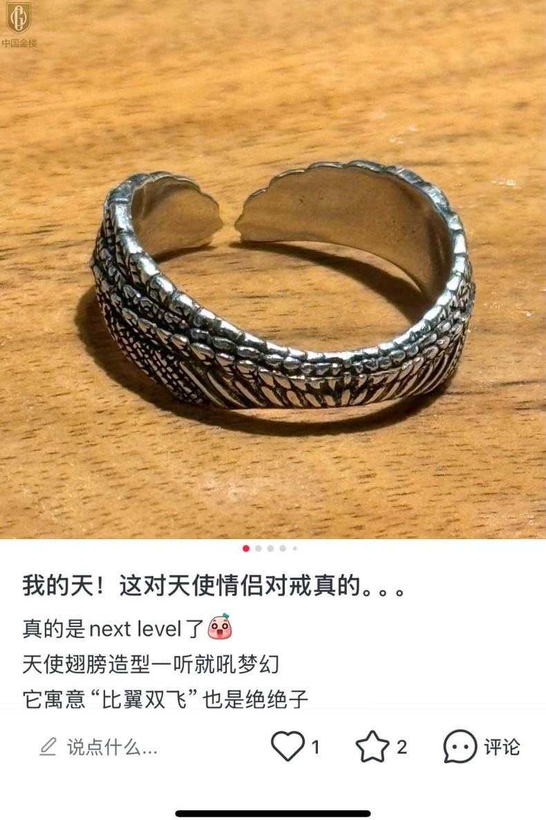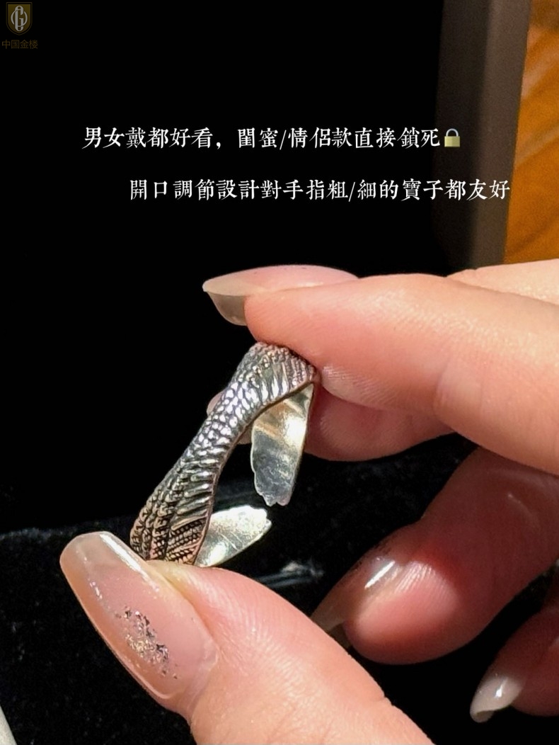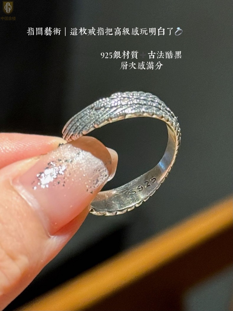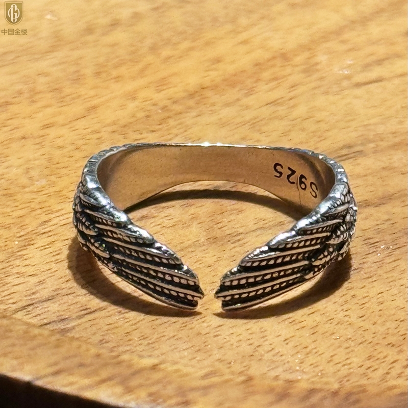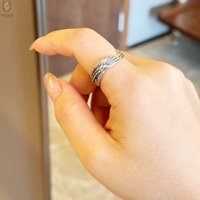 【品名】中国金楼彼此天使古法酷黑K银情侣戒指(开口可调节)