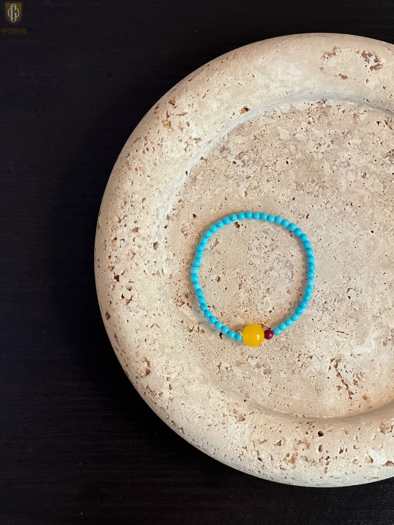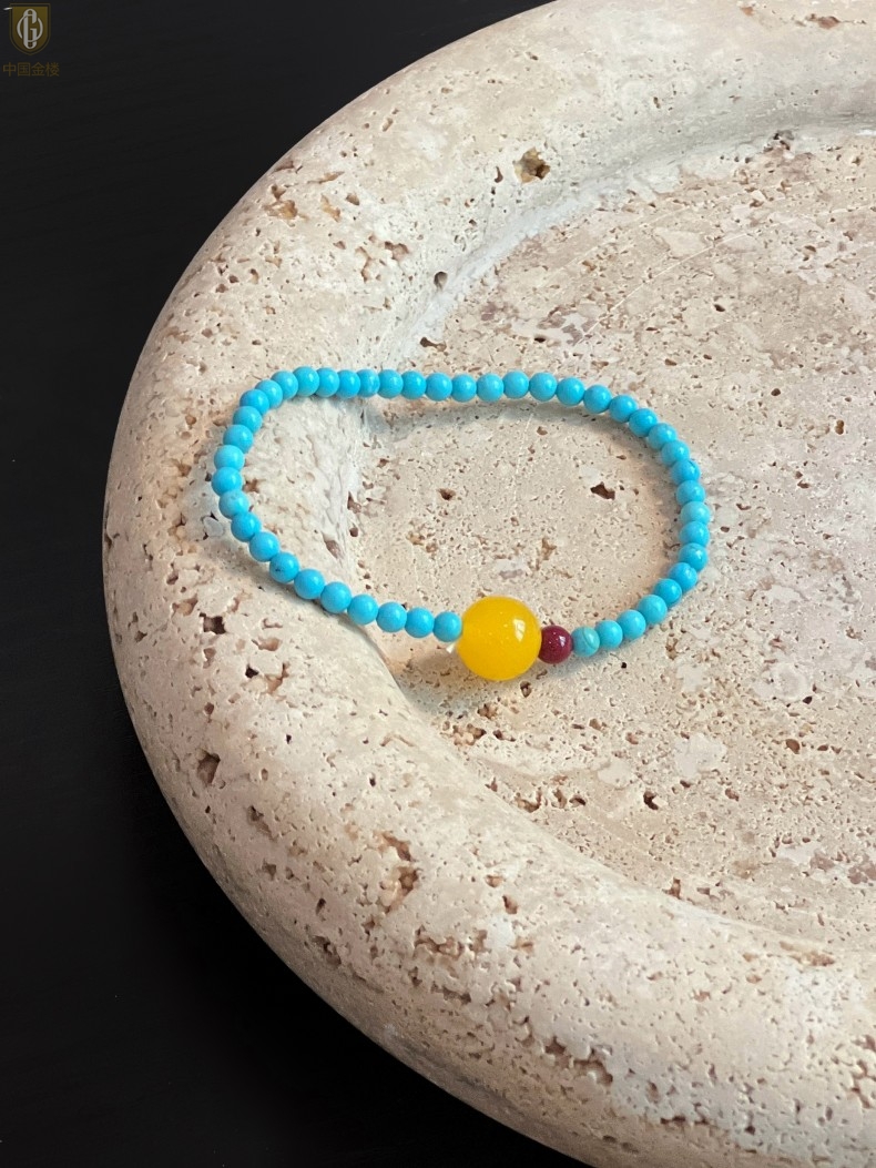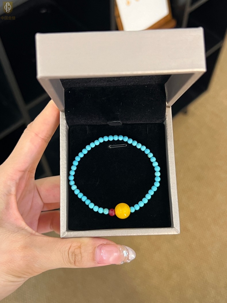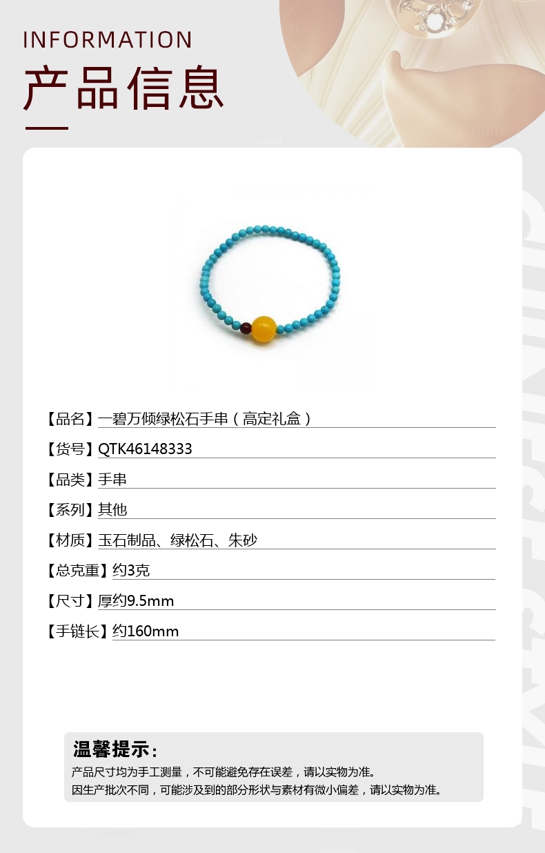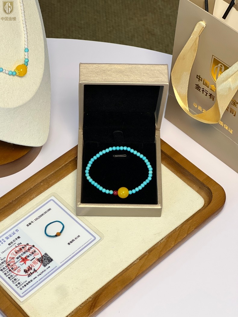 【品名】中国金楼一碧万倾绿松石手串(高定礼盒)