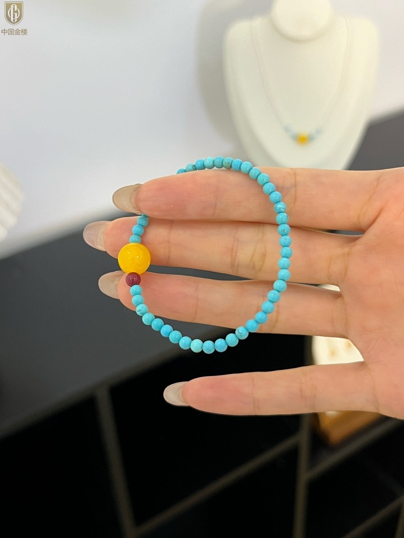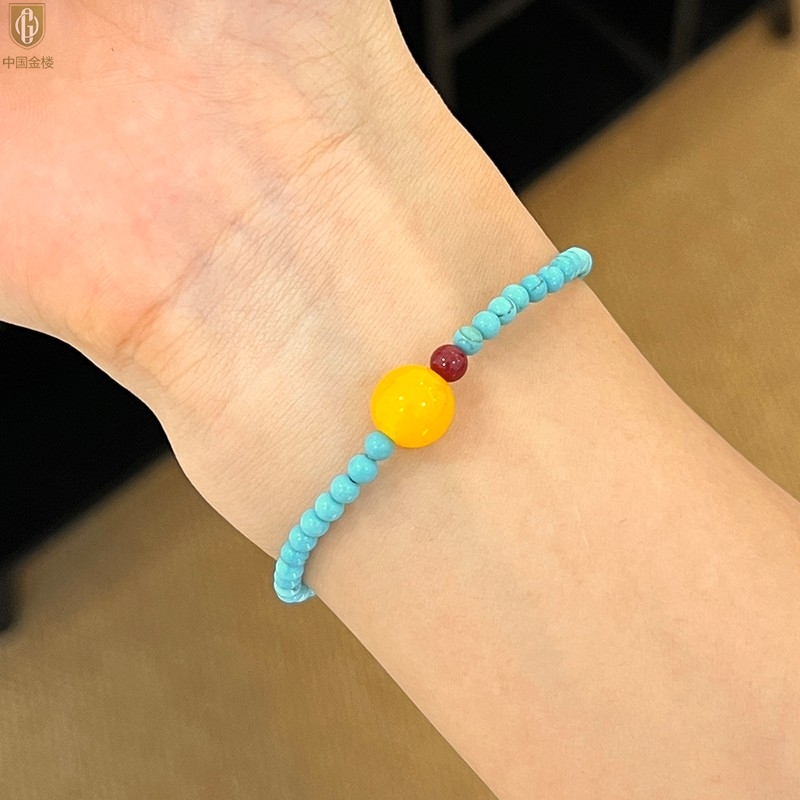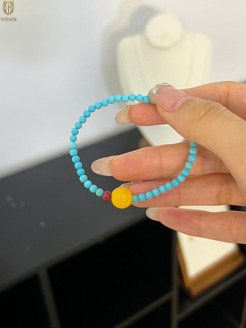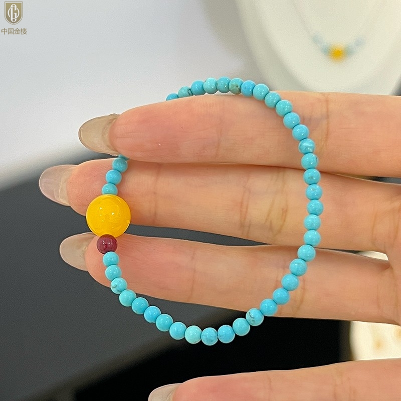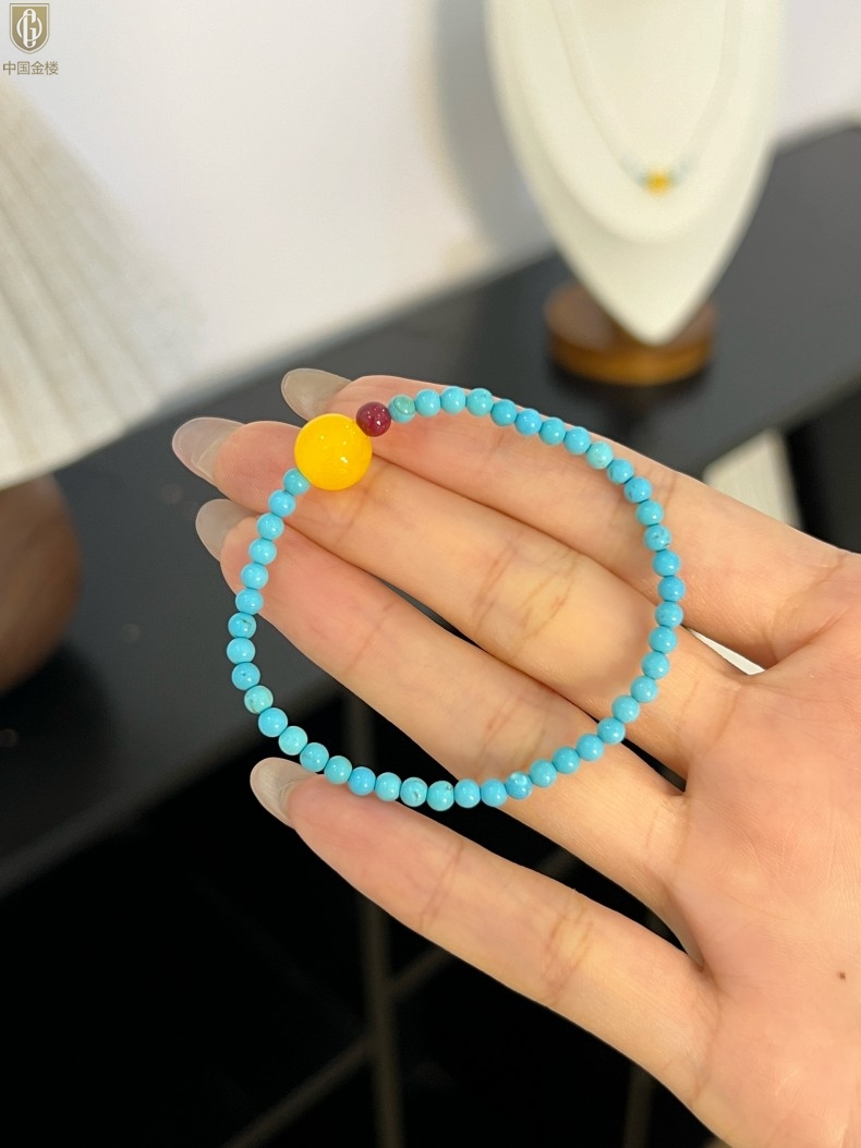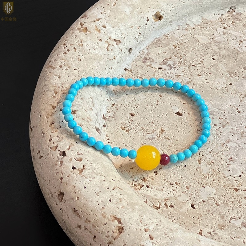 【品名】中国金楼一碧万倾绿松石手串(高定礼盒)