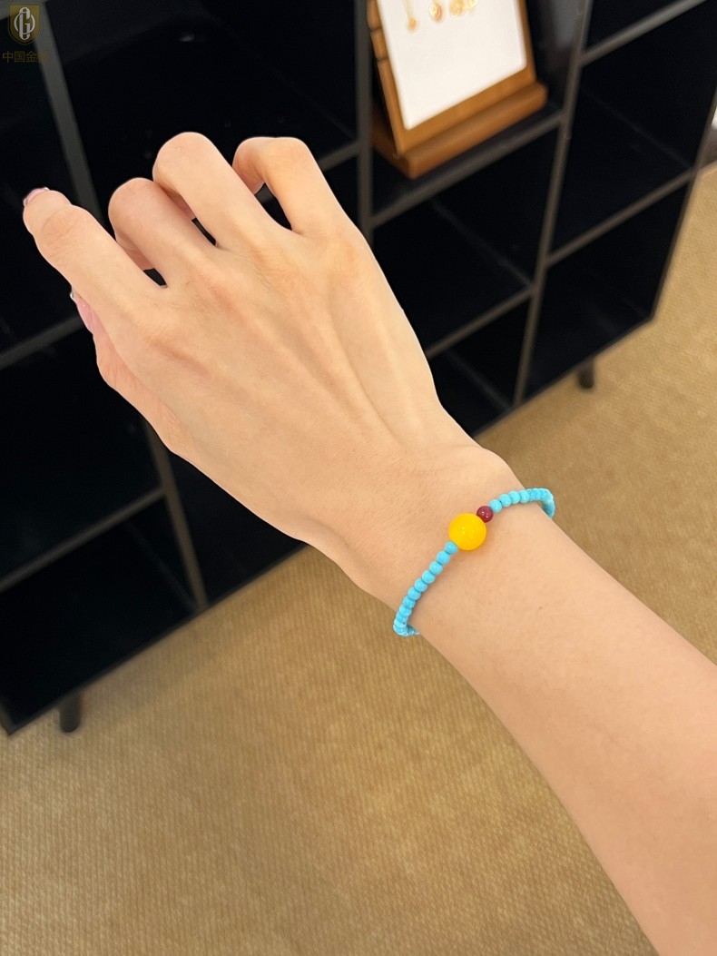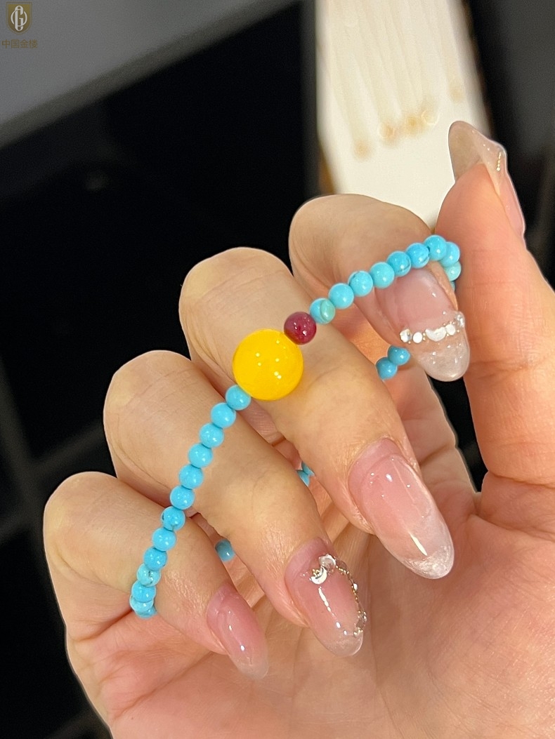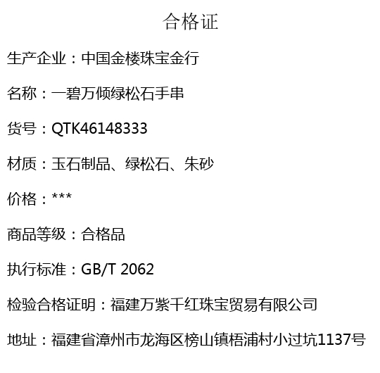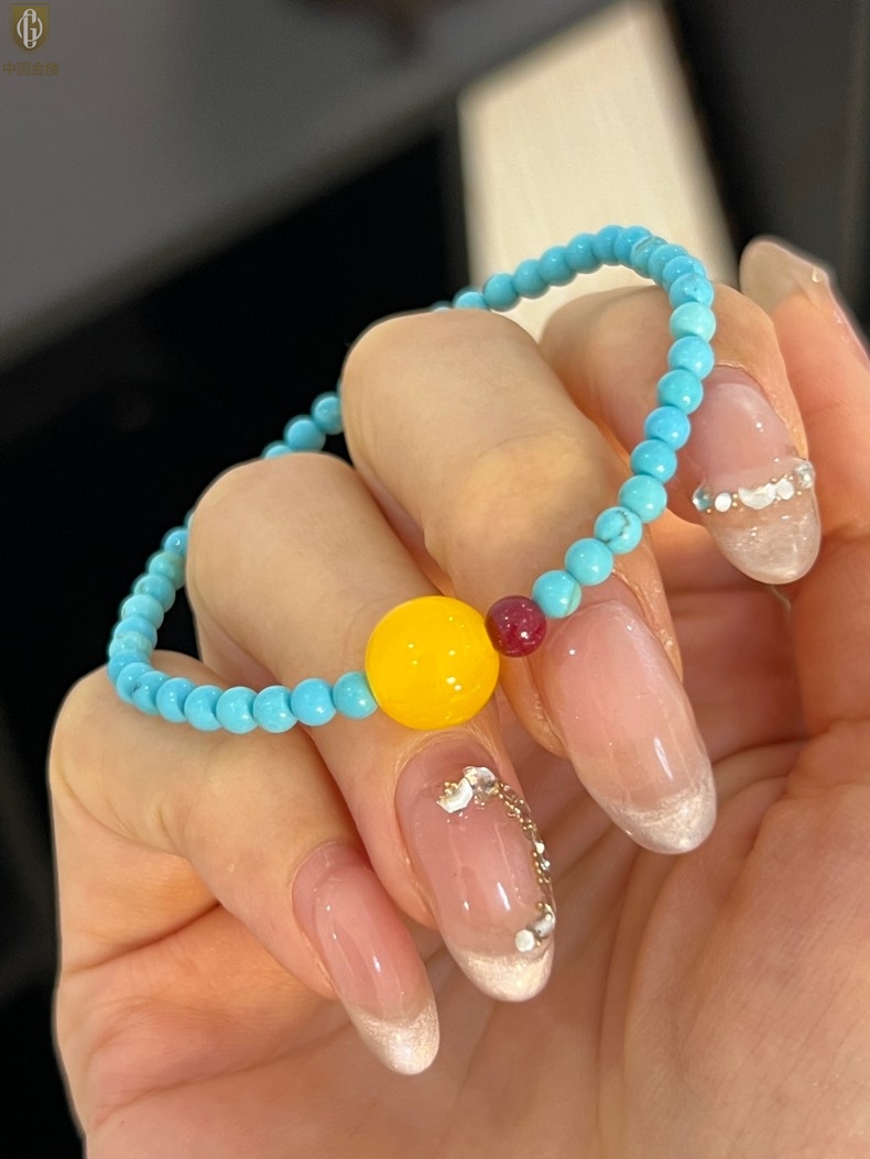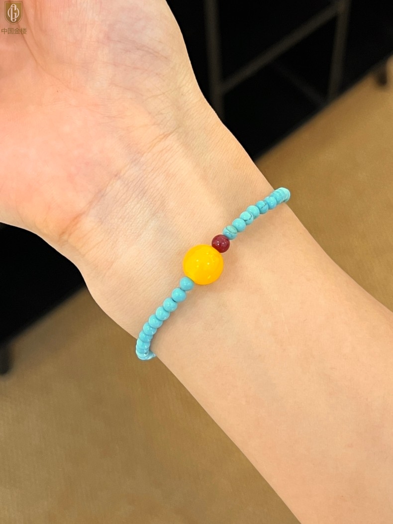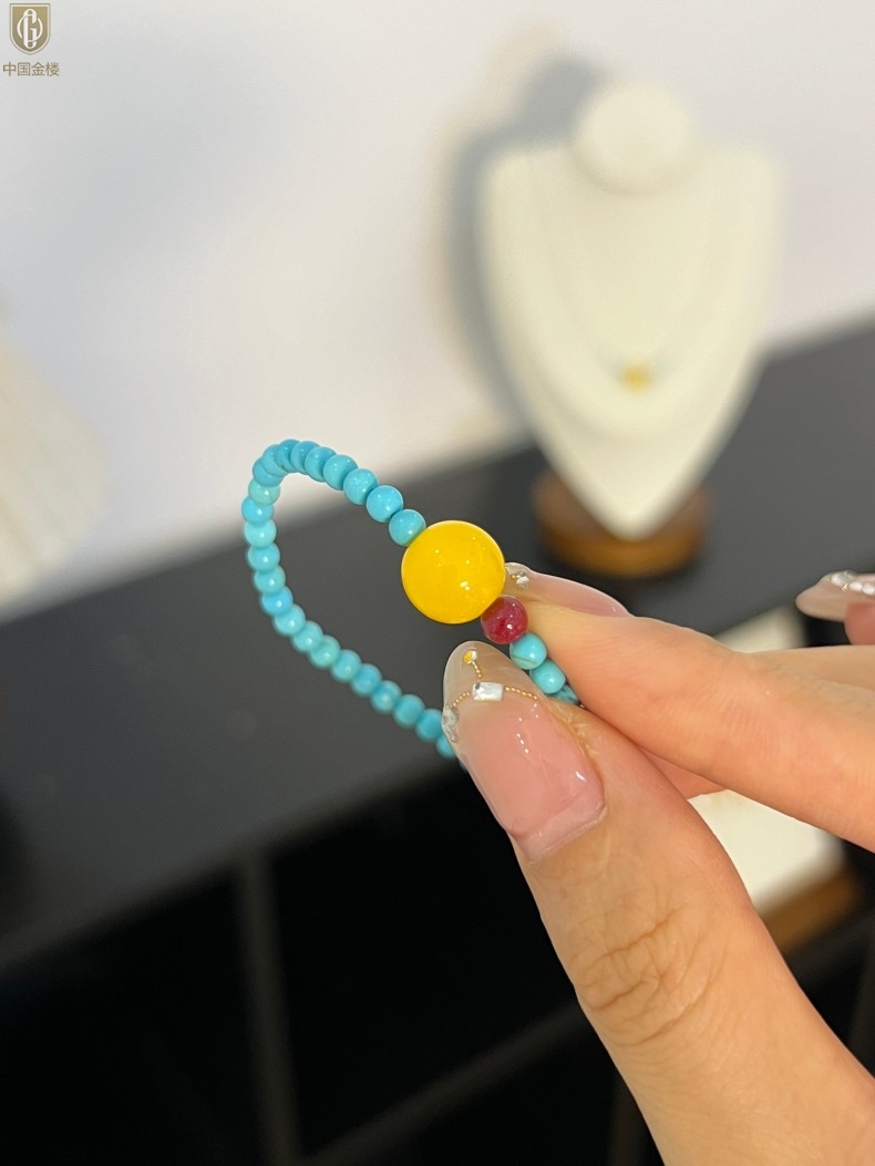 【品名】中国金楼一碧万倾绿松石手串(高定礼盒)