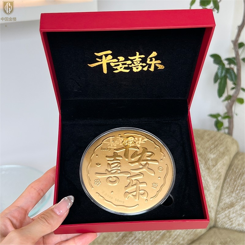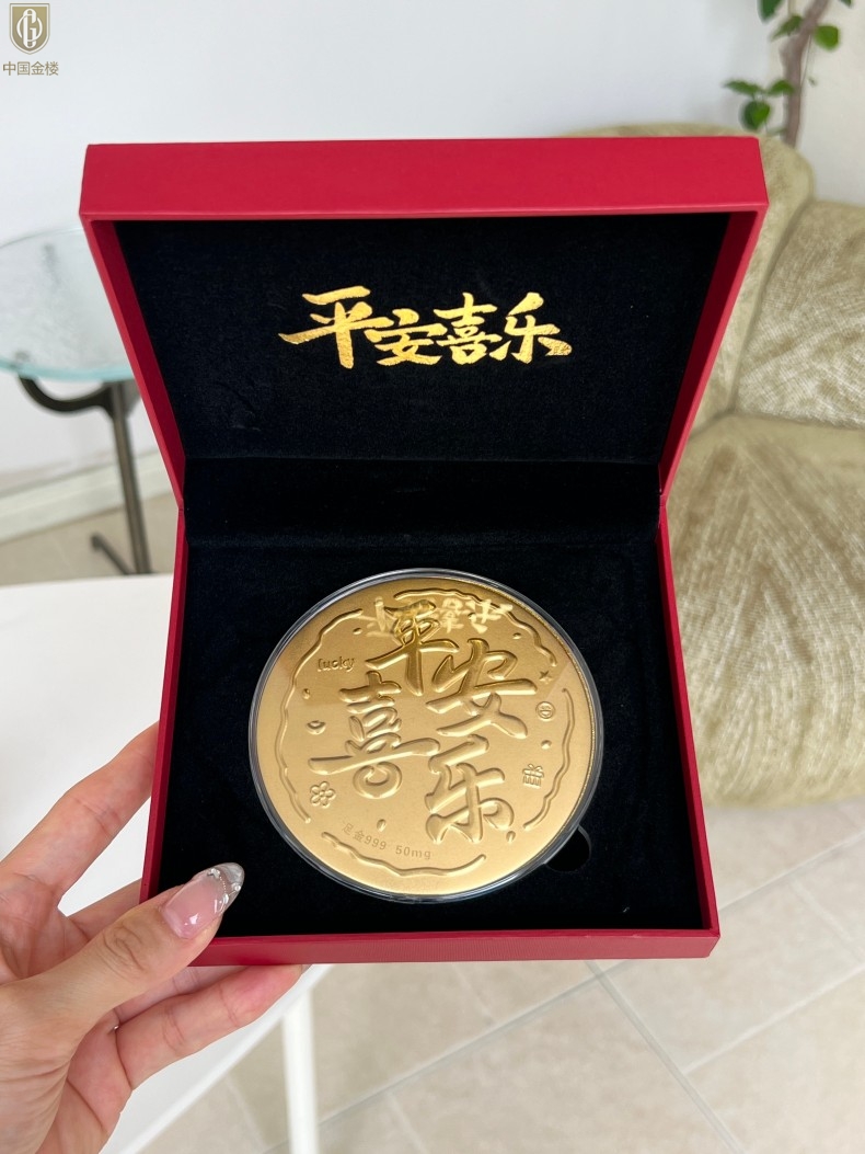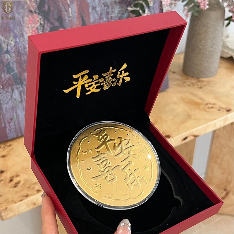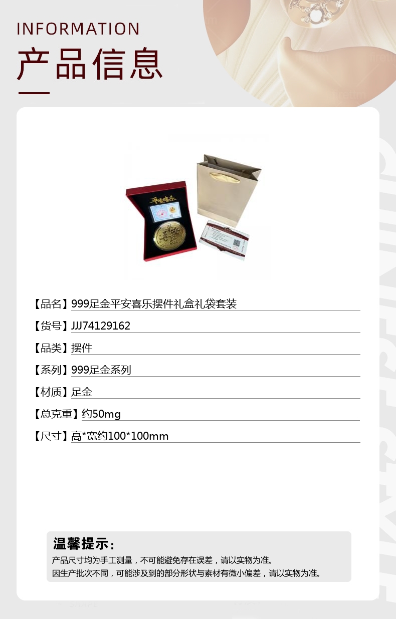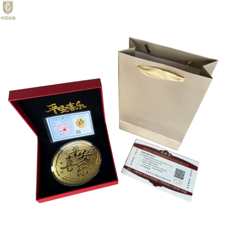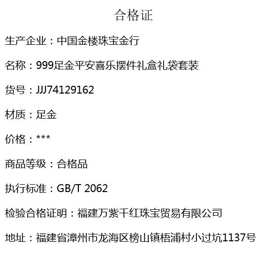 【品名】中国金楼999足金平安喜乐摆件礼盒礼袋套装