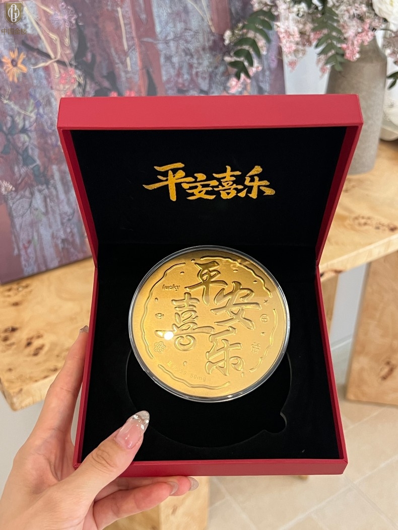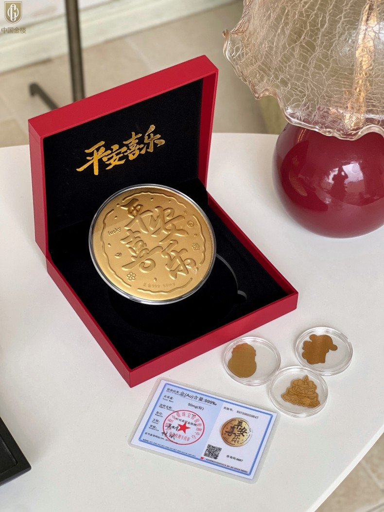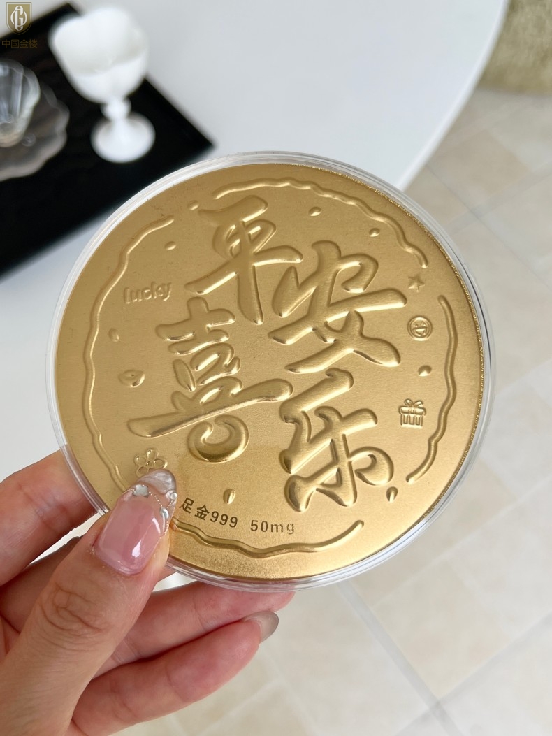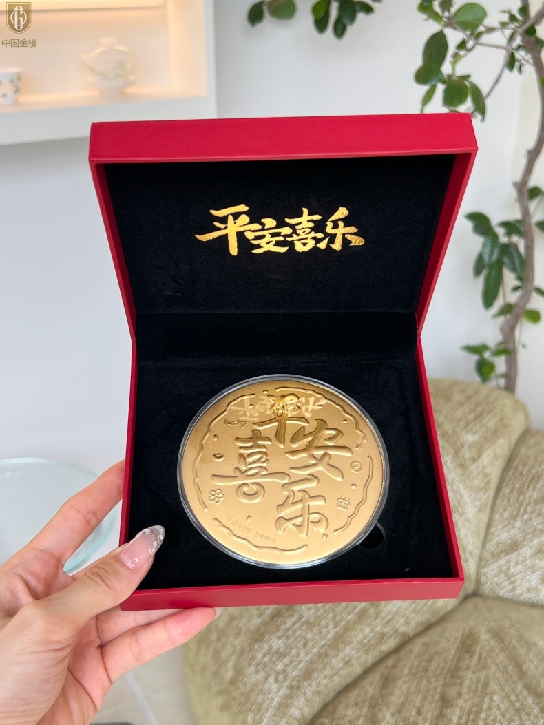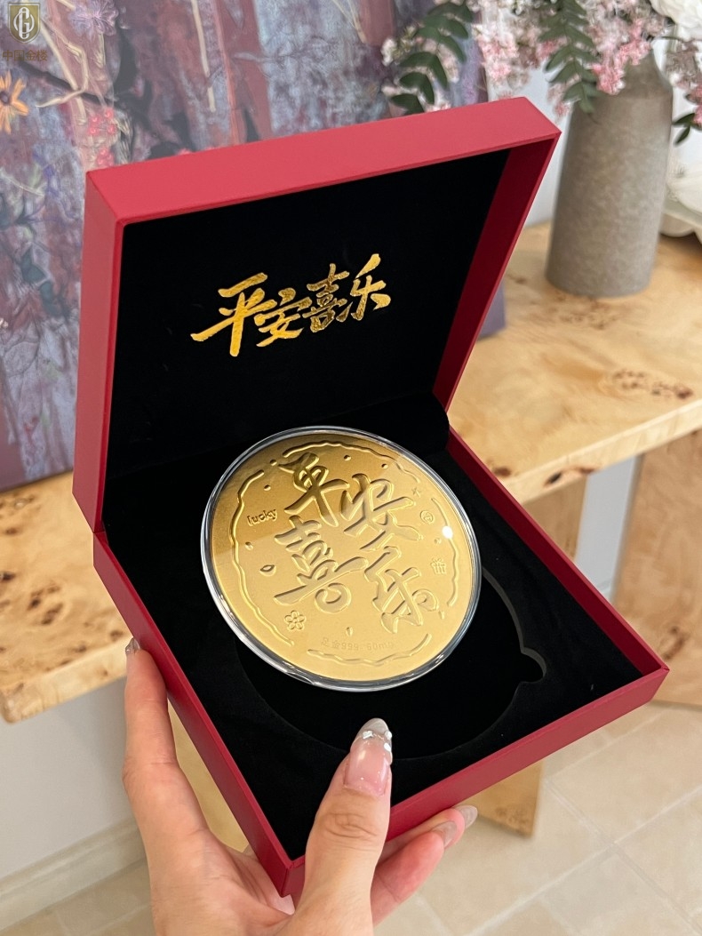 【品名】中国金楼999足金平安喜乐摆件礼盒礼袋套装