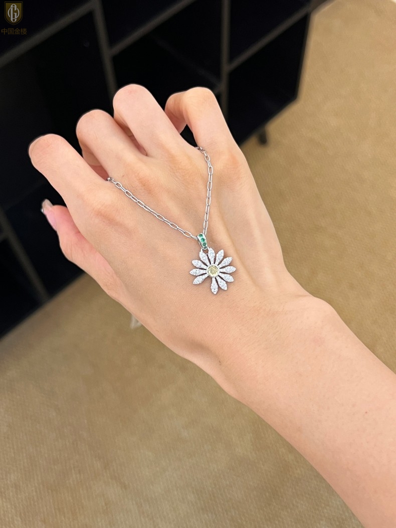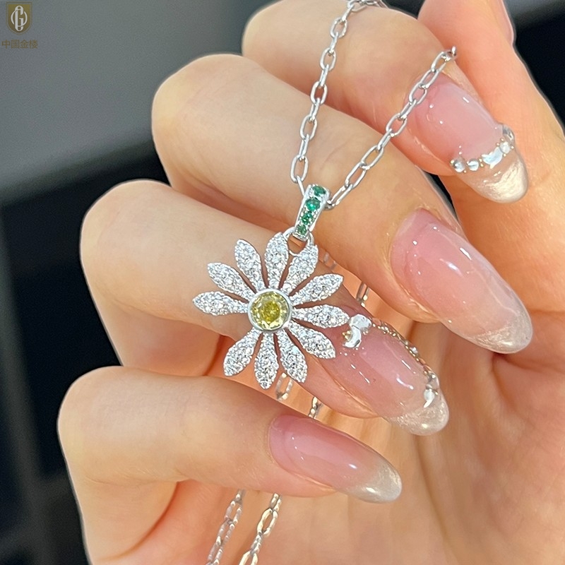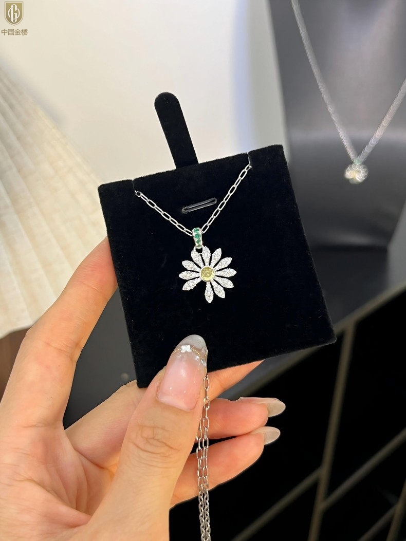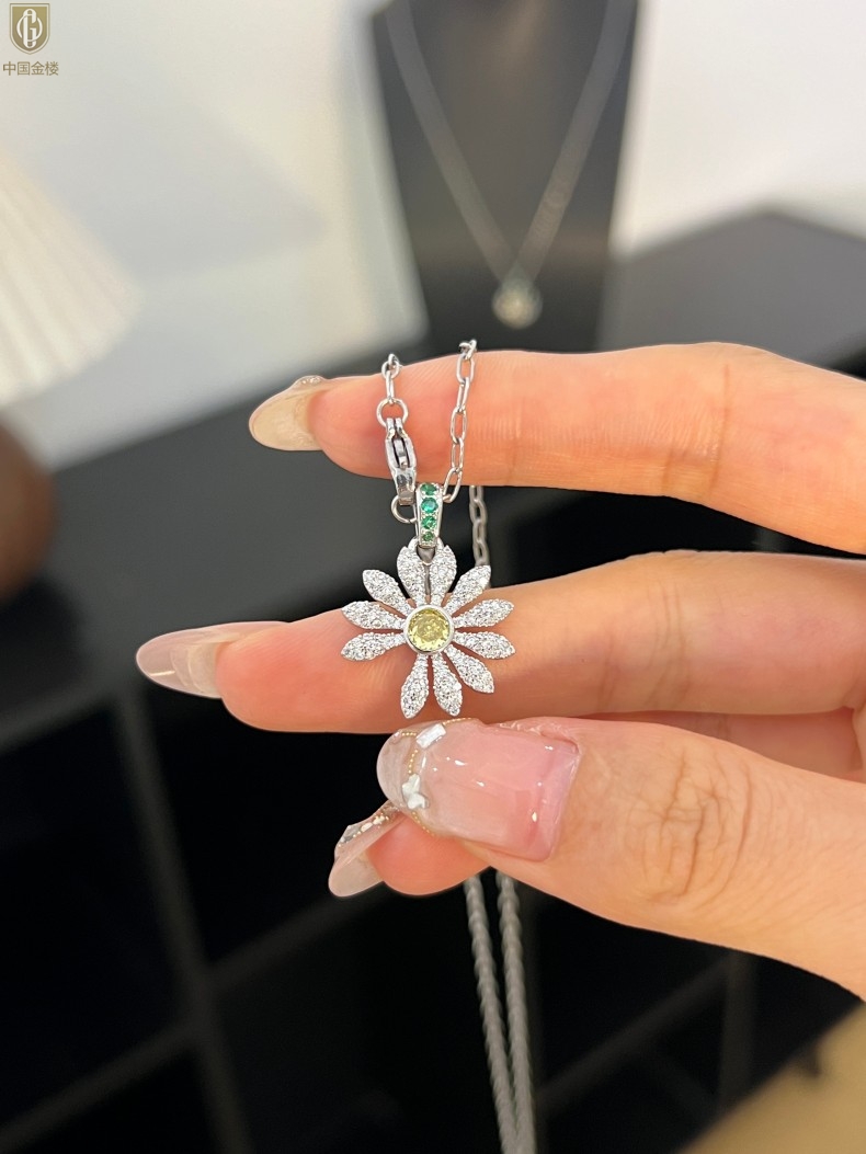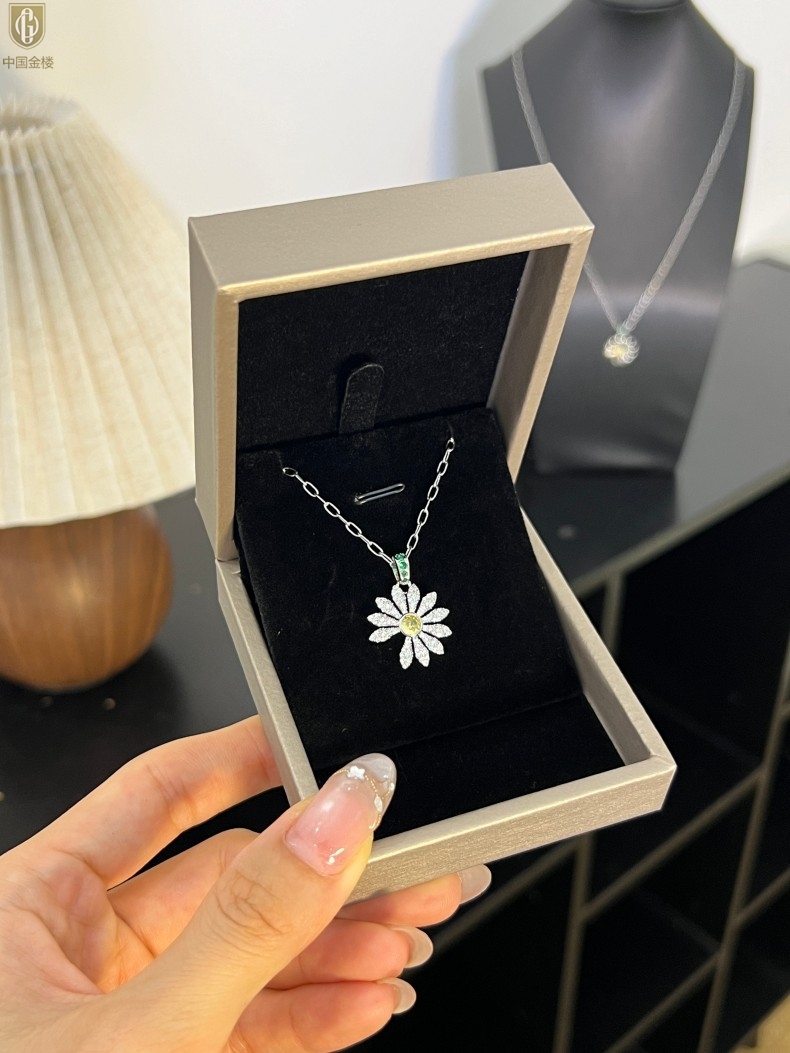 【品名】中国金楼豪镶满钻GD雏菊K铂金吊坠(附赠项链高定礼盒)
