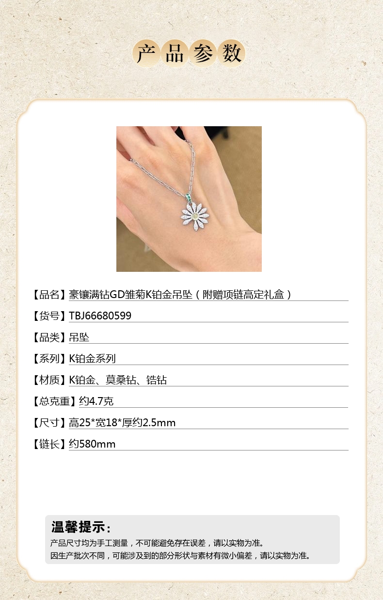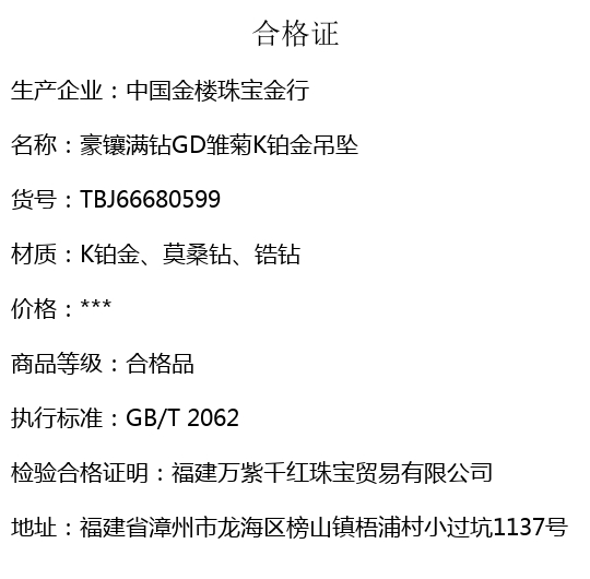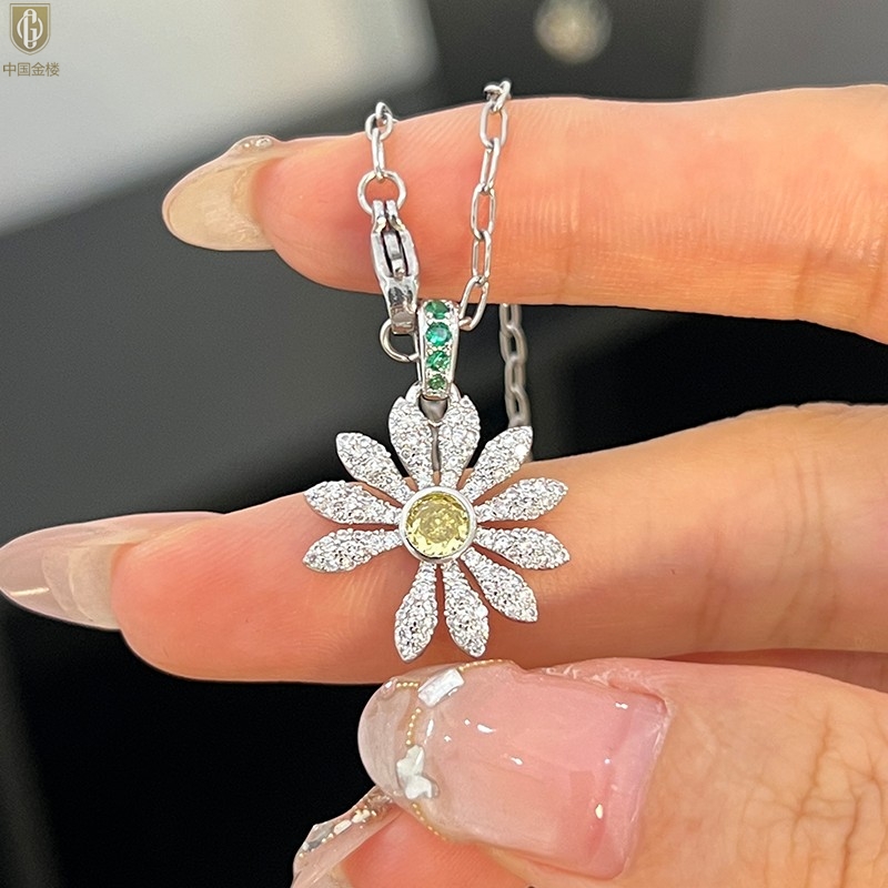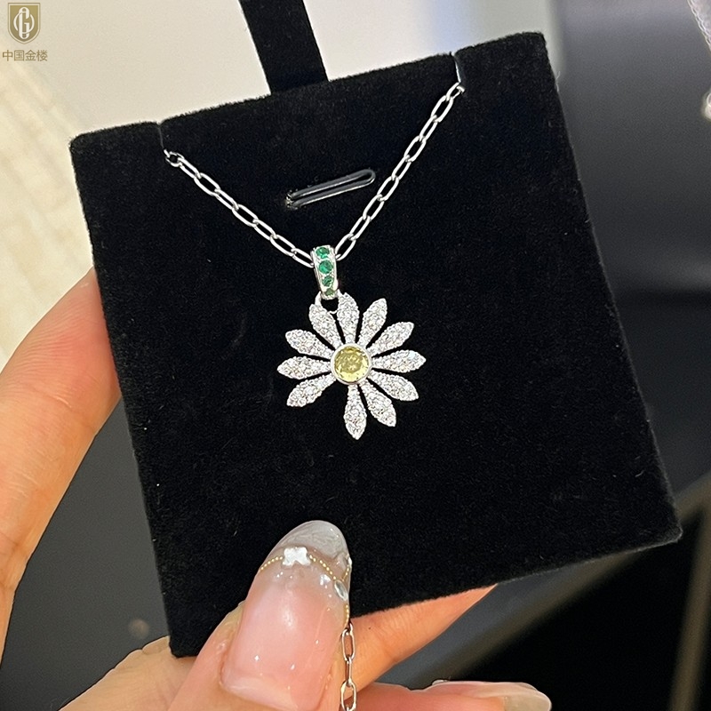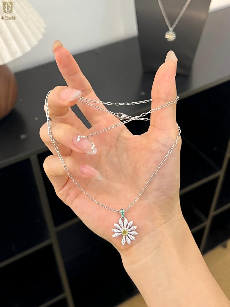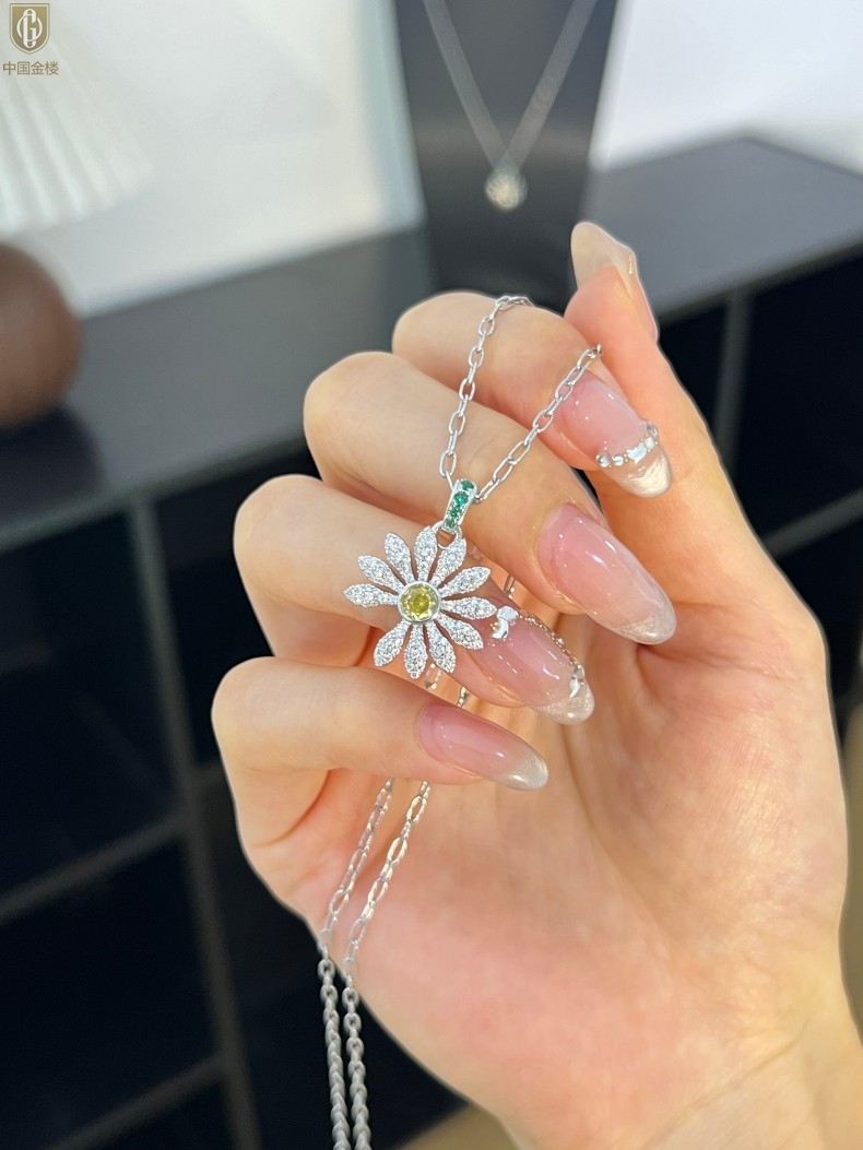 【品名】中国金楼豪镶满钻GD雏菊K铂金吊坠(附赠项链高定礼盒)