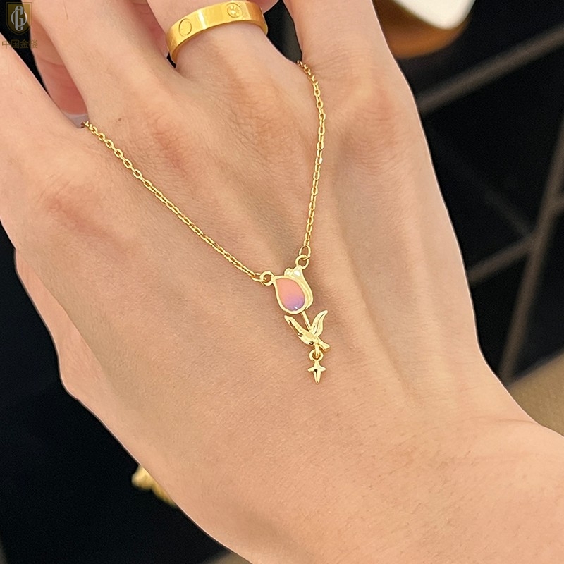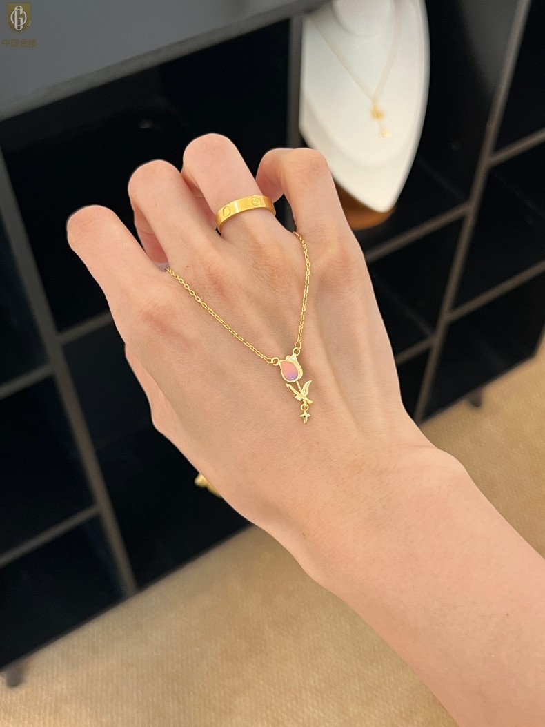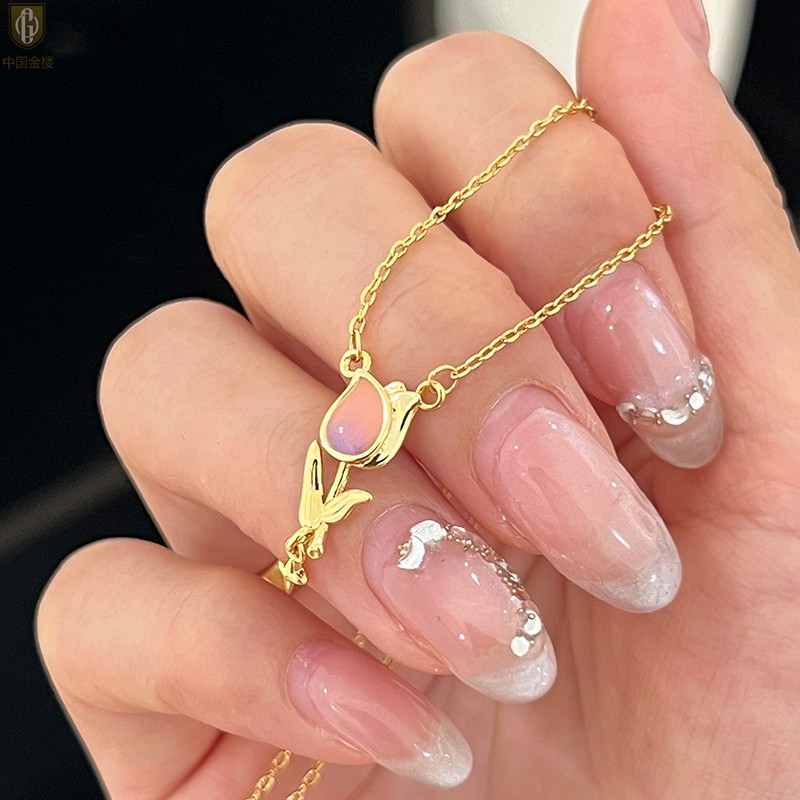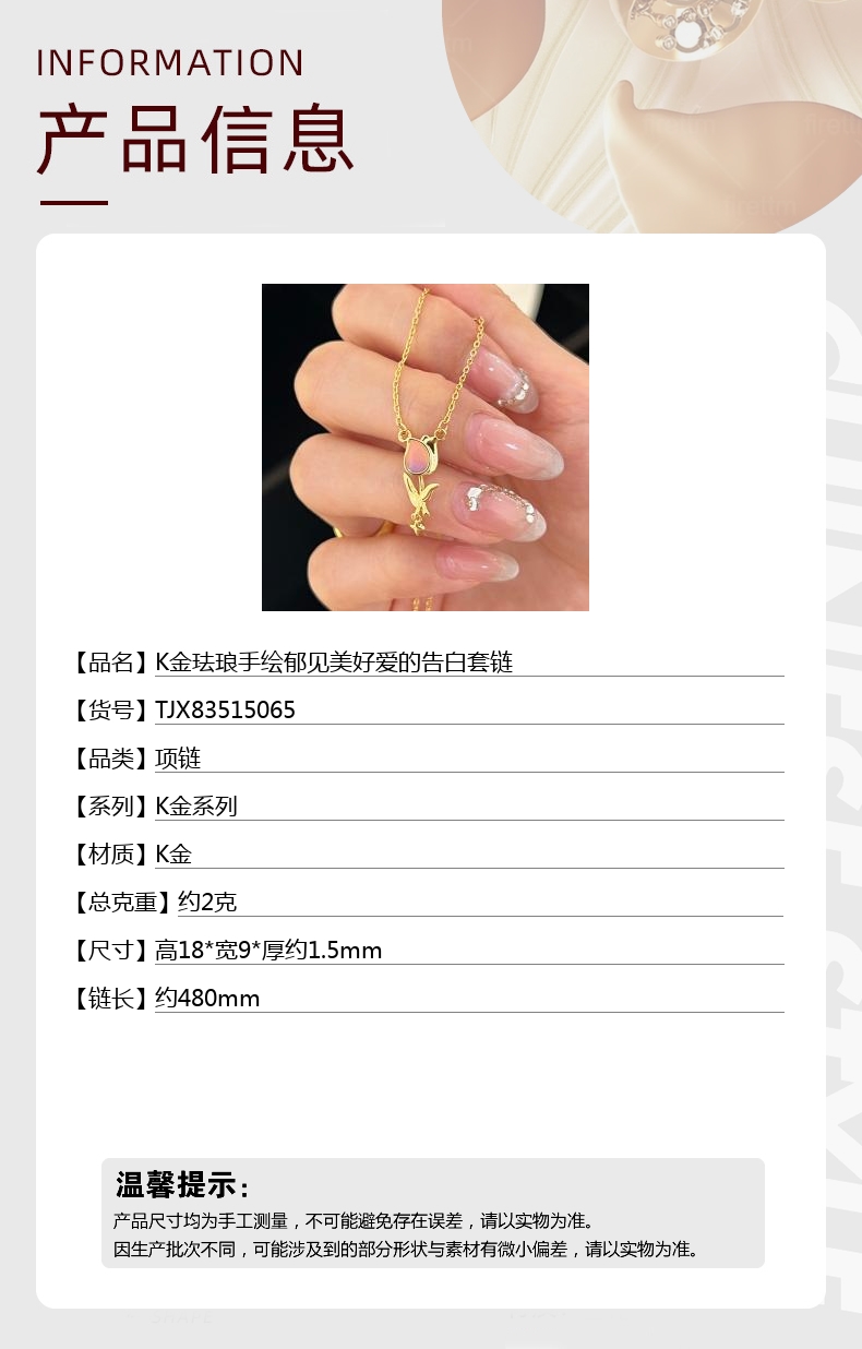 【品名】中国金楼K金珐琅手绘郁见美好爱的告白套链