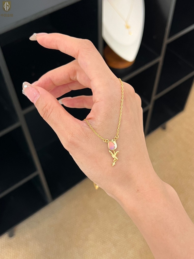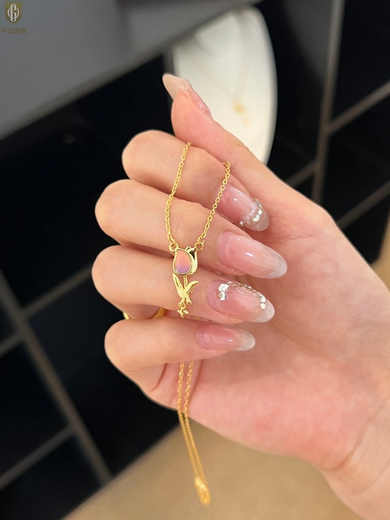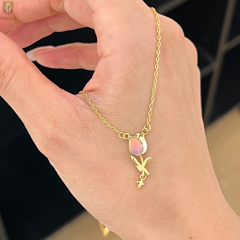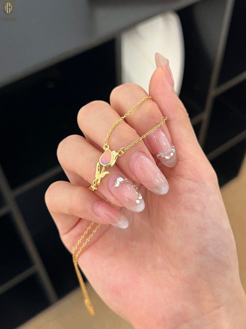 【品名】中国金楼K金珐琅手绘郁见美好爱的告白套链