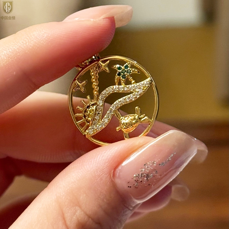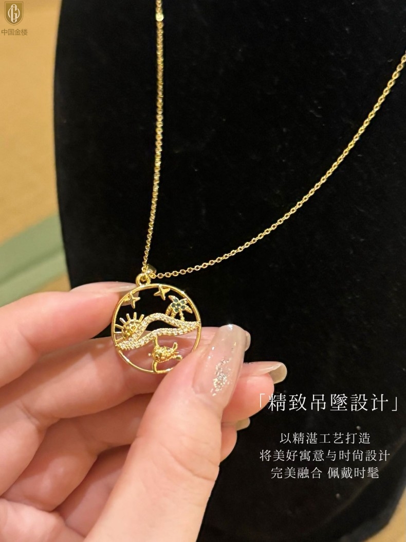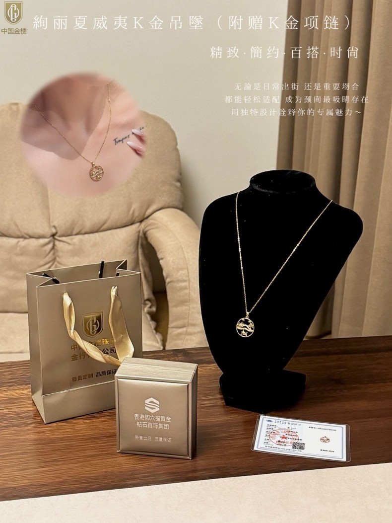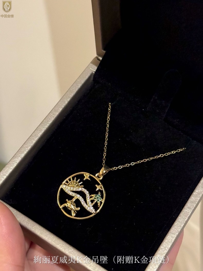 【品名】中国金楼绚丽夏威夷K金吊坠(附赠K金项链)