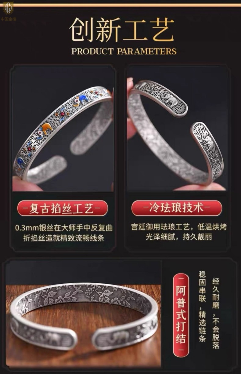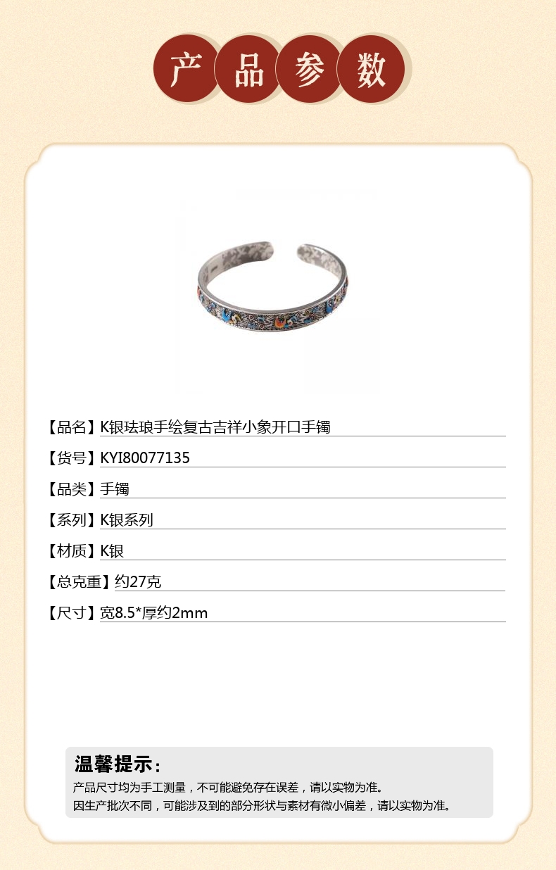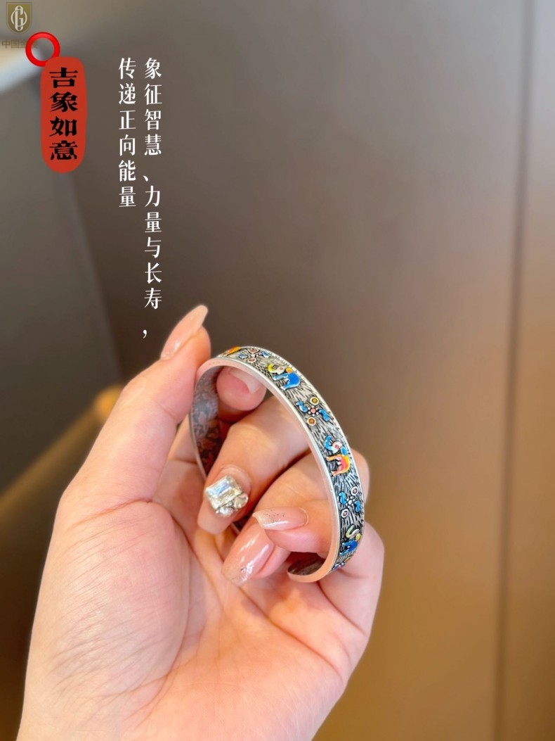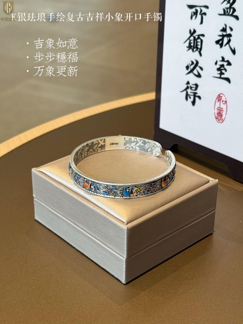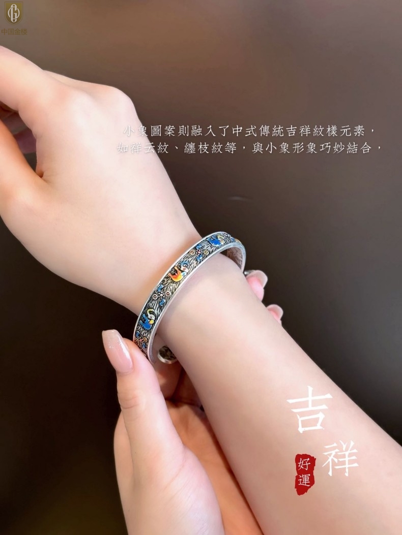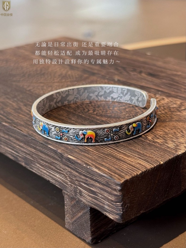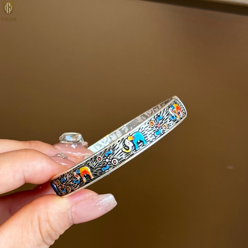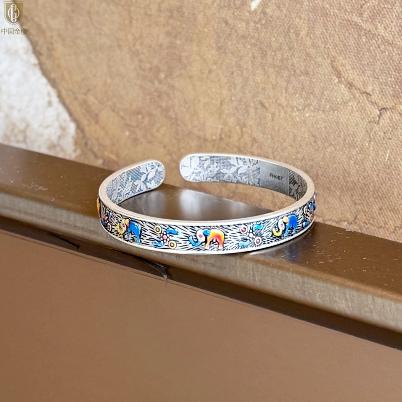 【品名】中国金楼K银珐琅手绘复古吉祥小象开口手镯