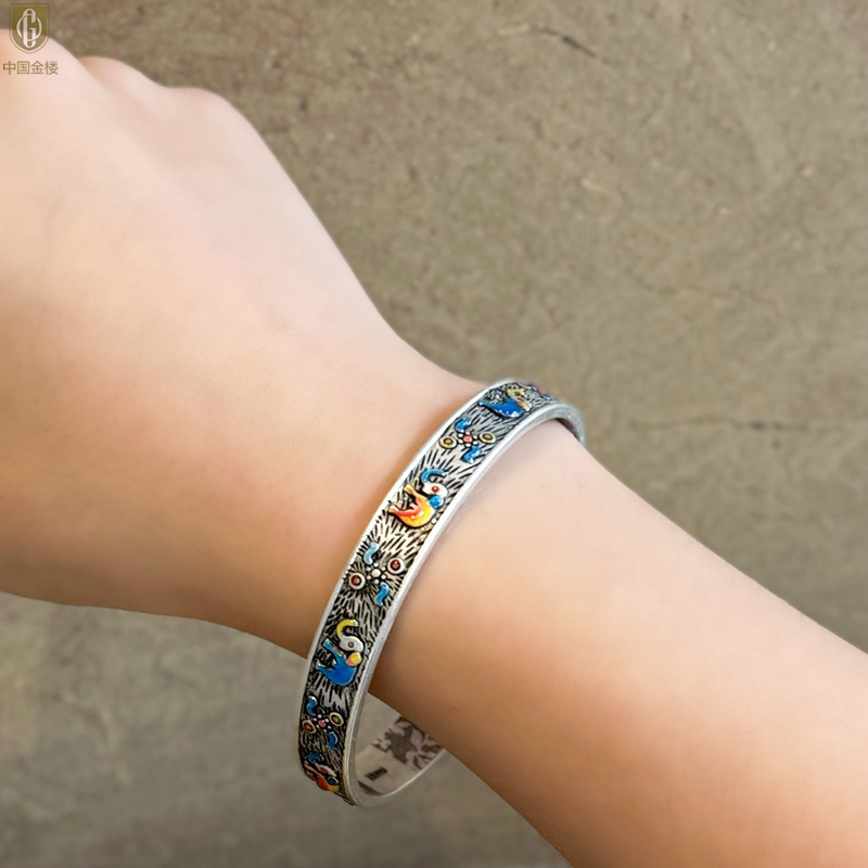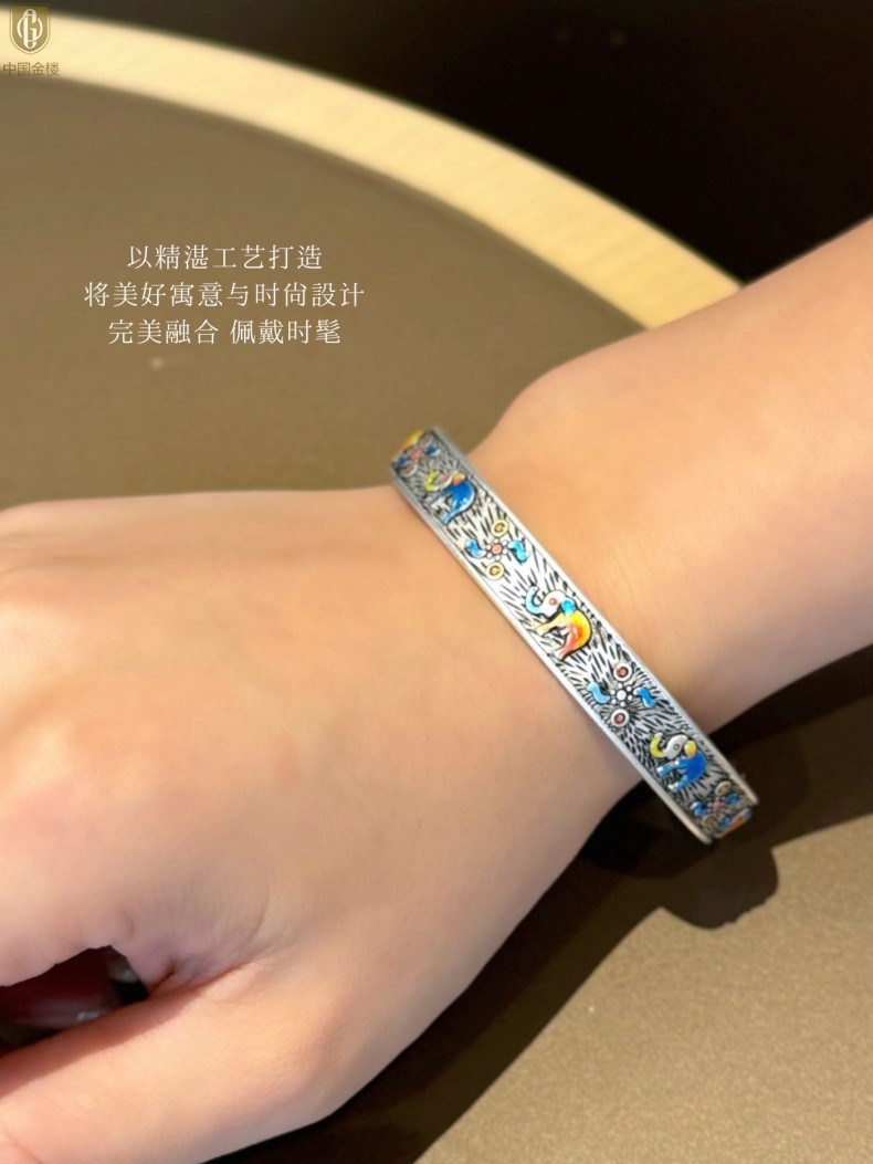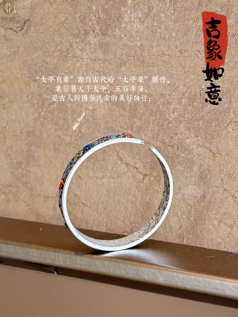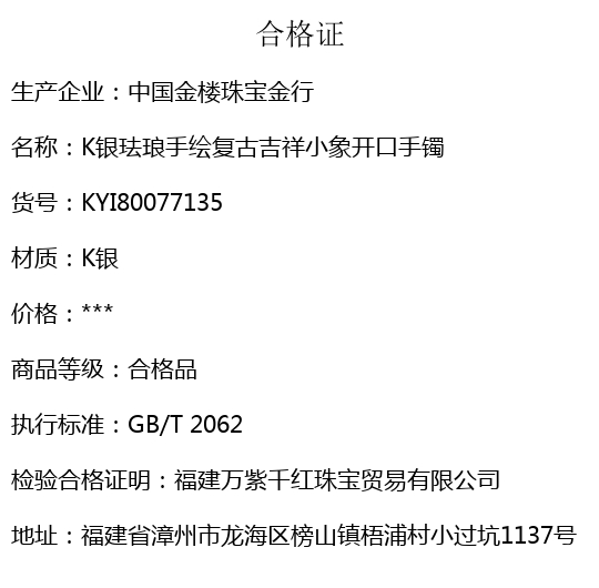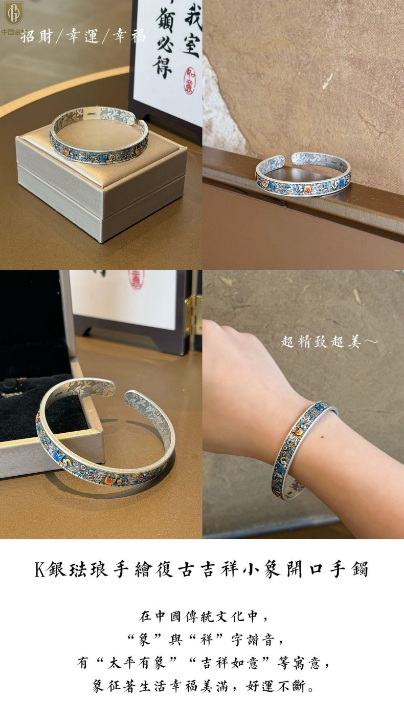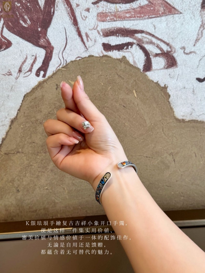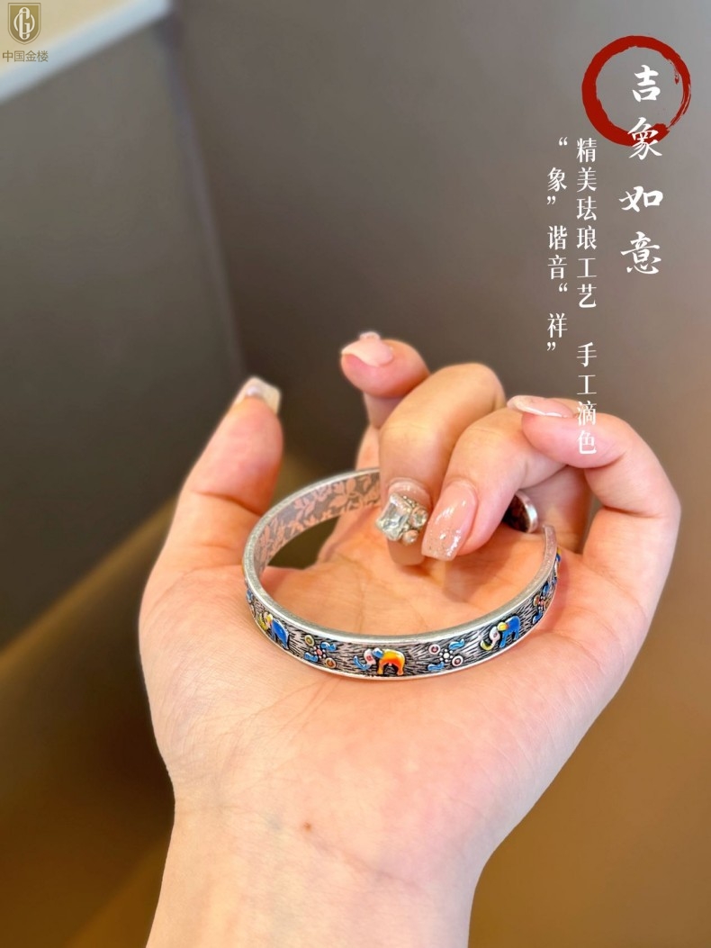 【品名】中国金楼K银珐琅手绘复古吉祥小象开口手镯