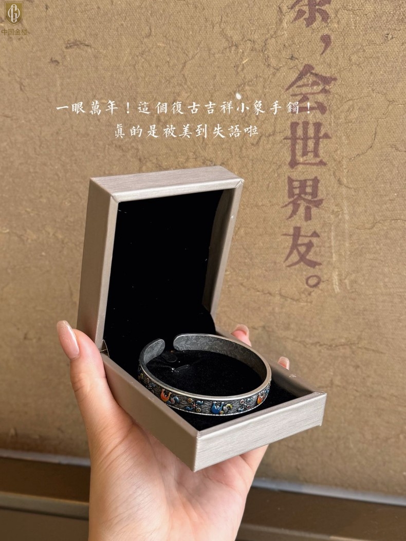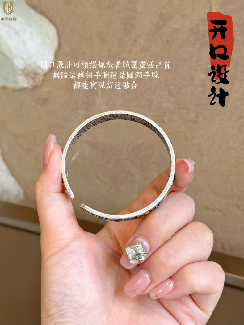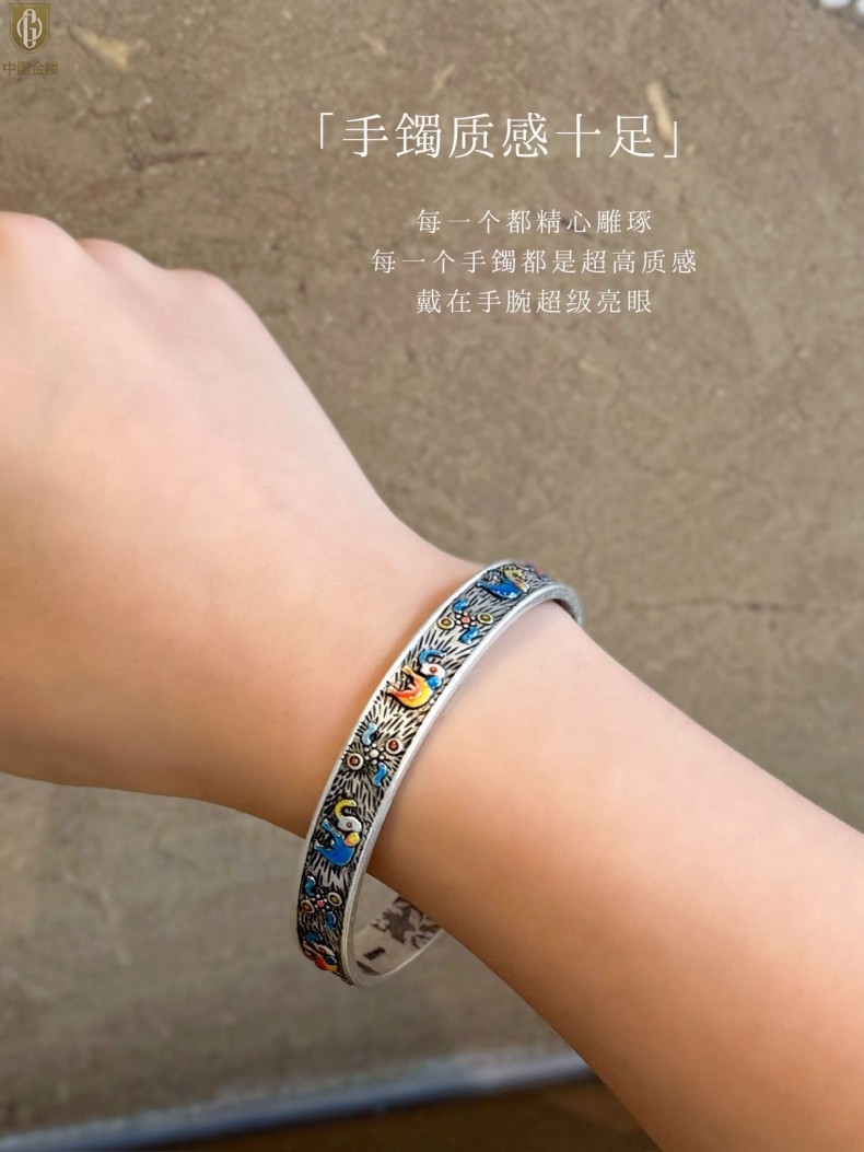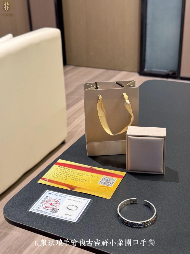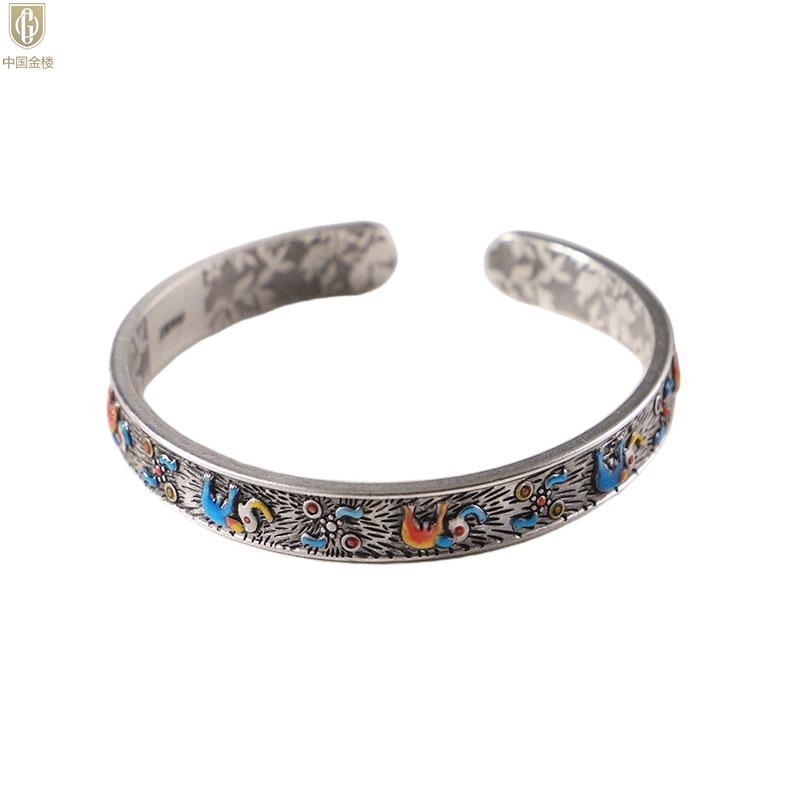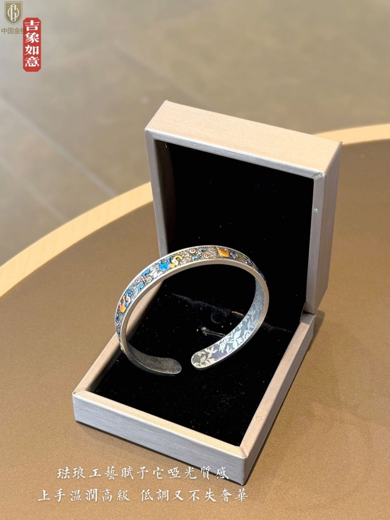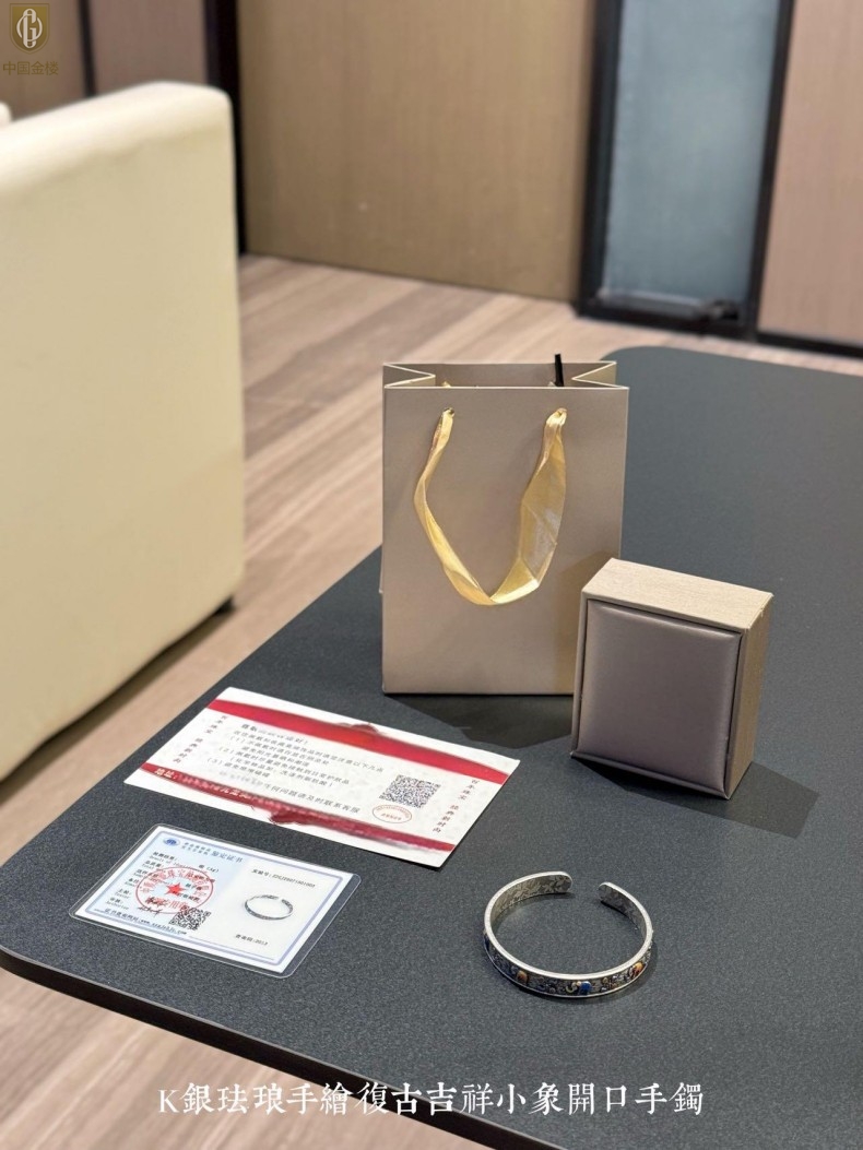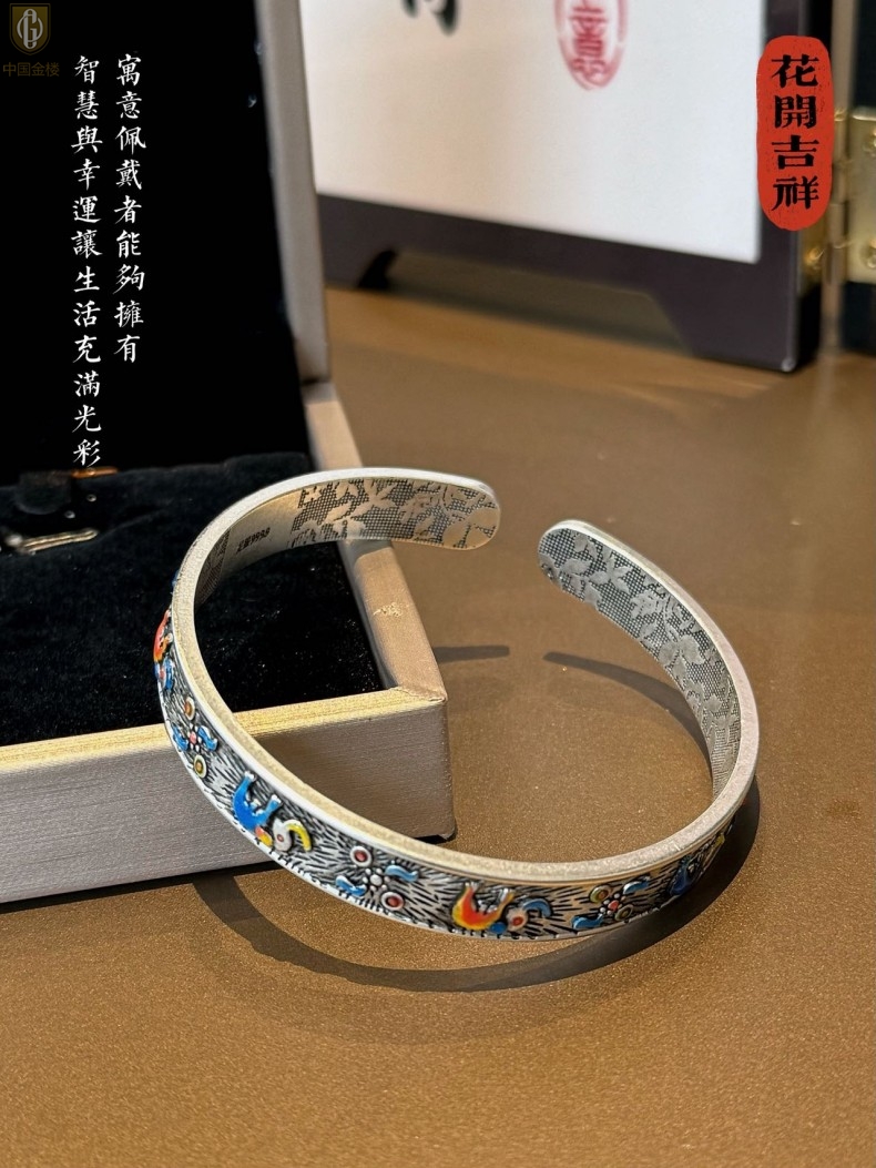 【品名】中国金楼K银珐琅手绘复古吉祥小象开口手镯
