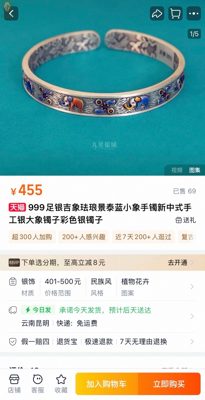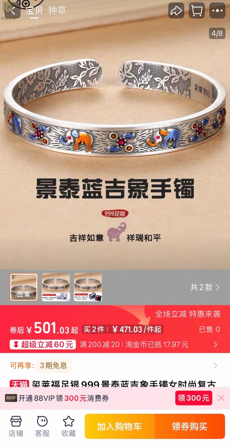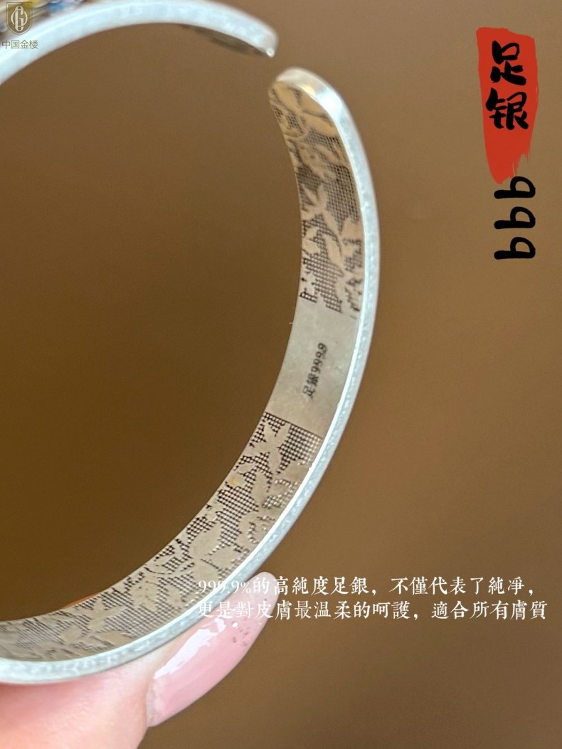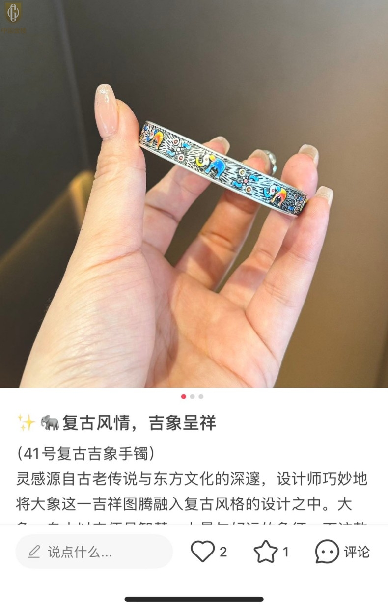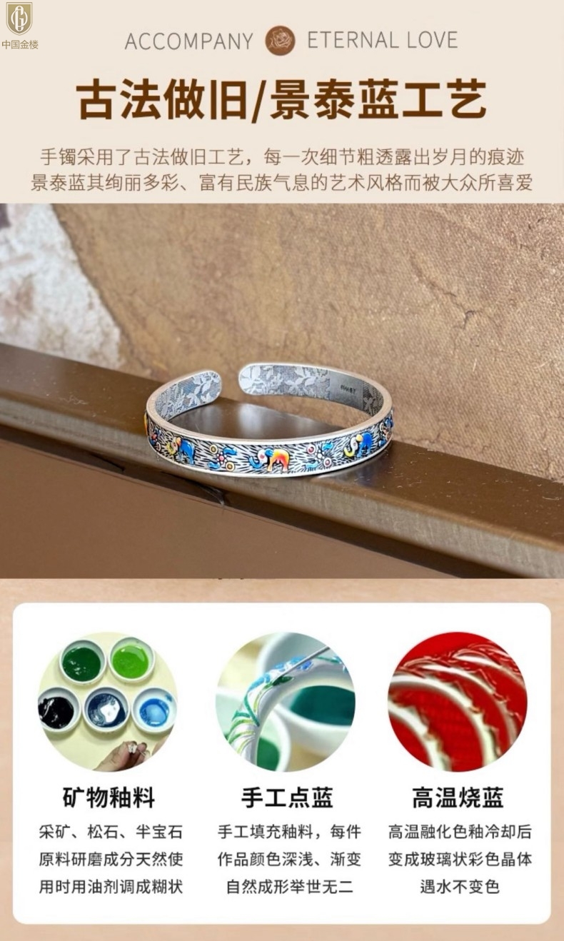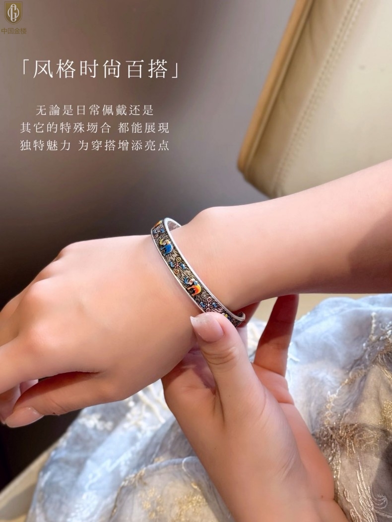 【品名】中国金楼K银珐琅手绘复古吉祥小象开口手镯