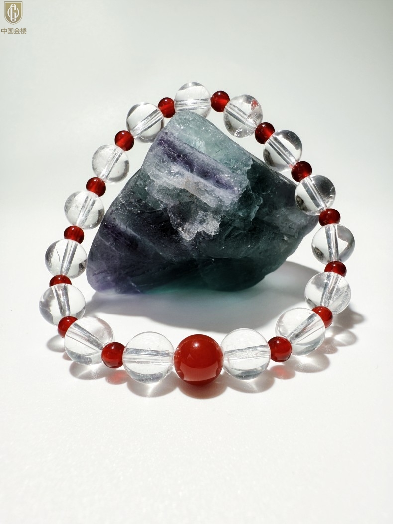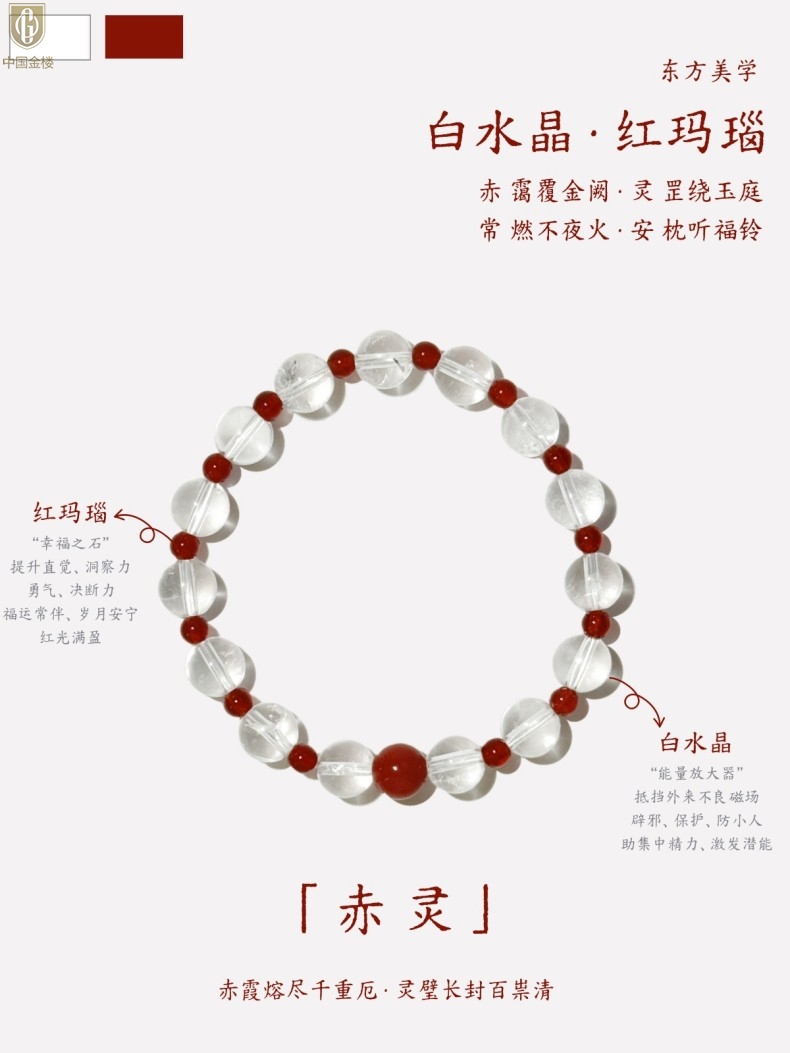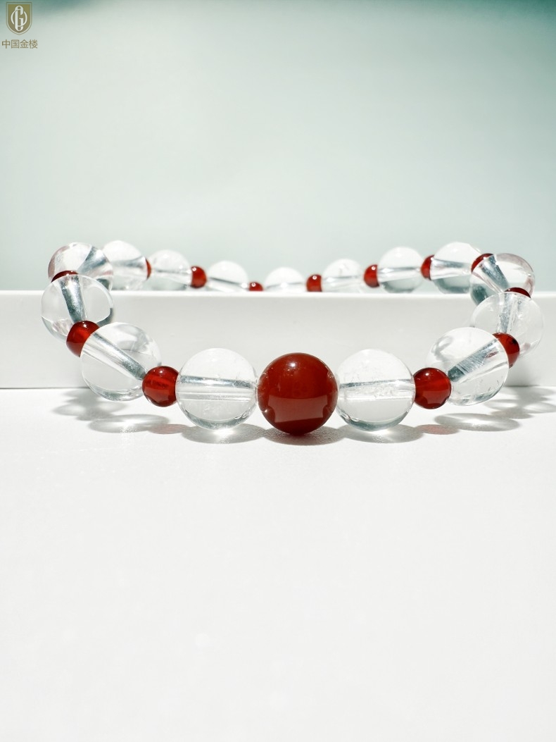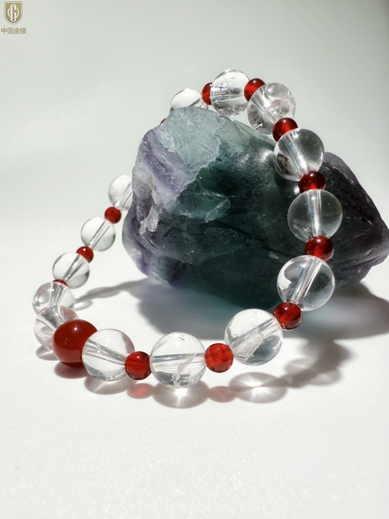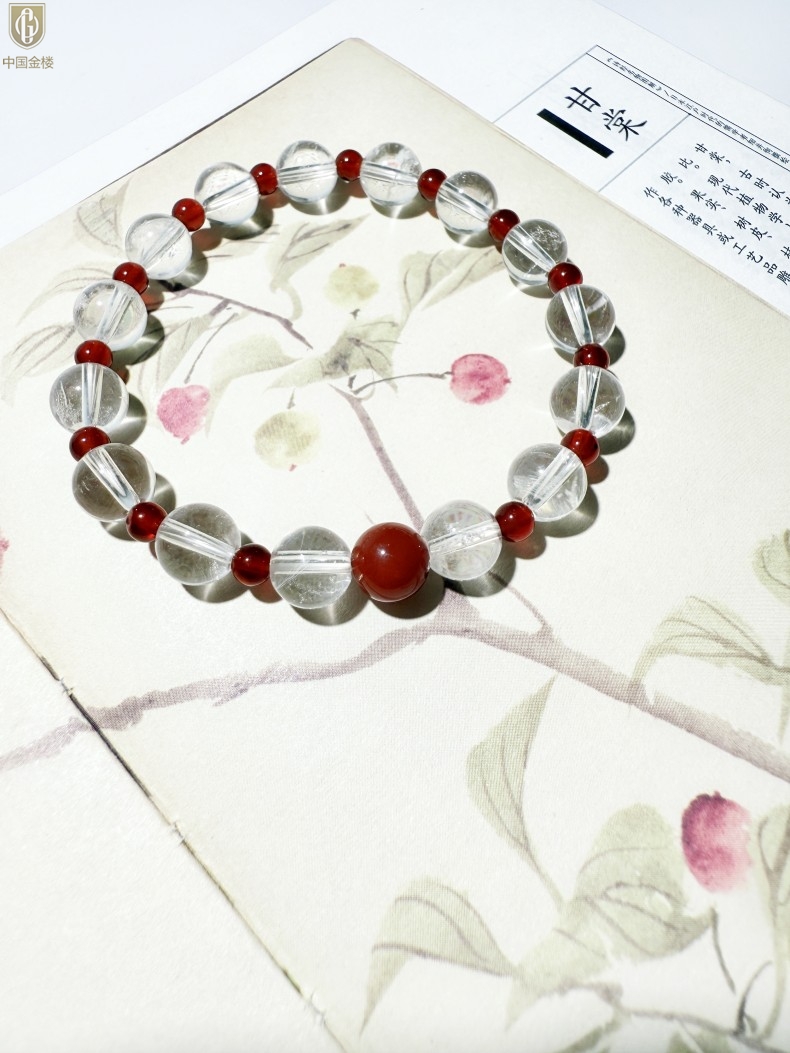 【品名】中国金楼原创「赤灵」喜金火丨新中式国风白水晶红玛瑙福运手串