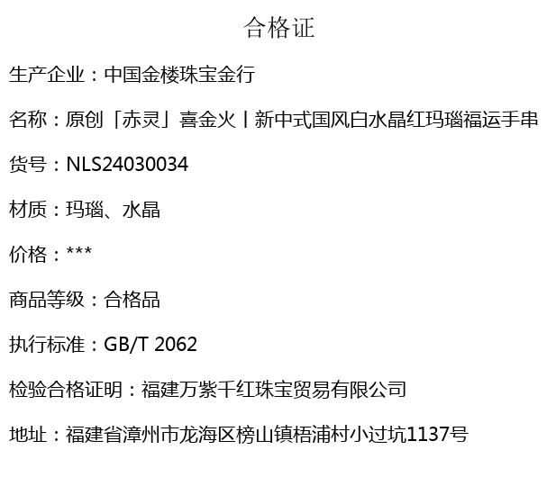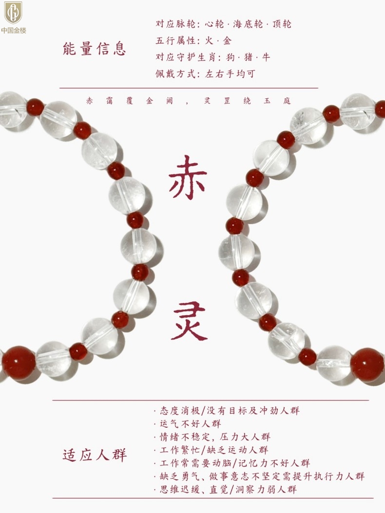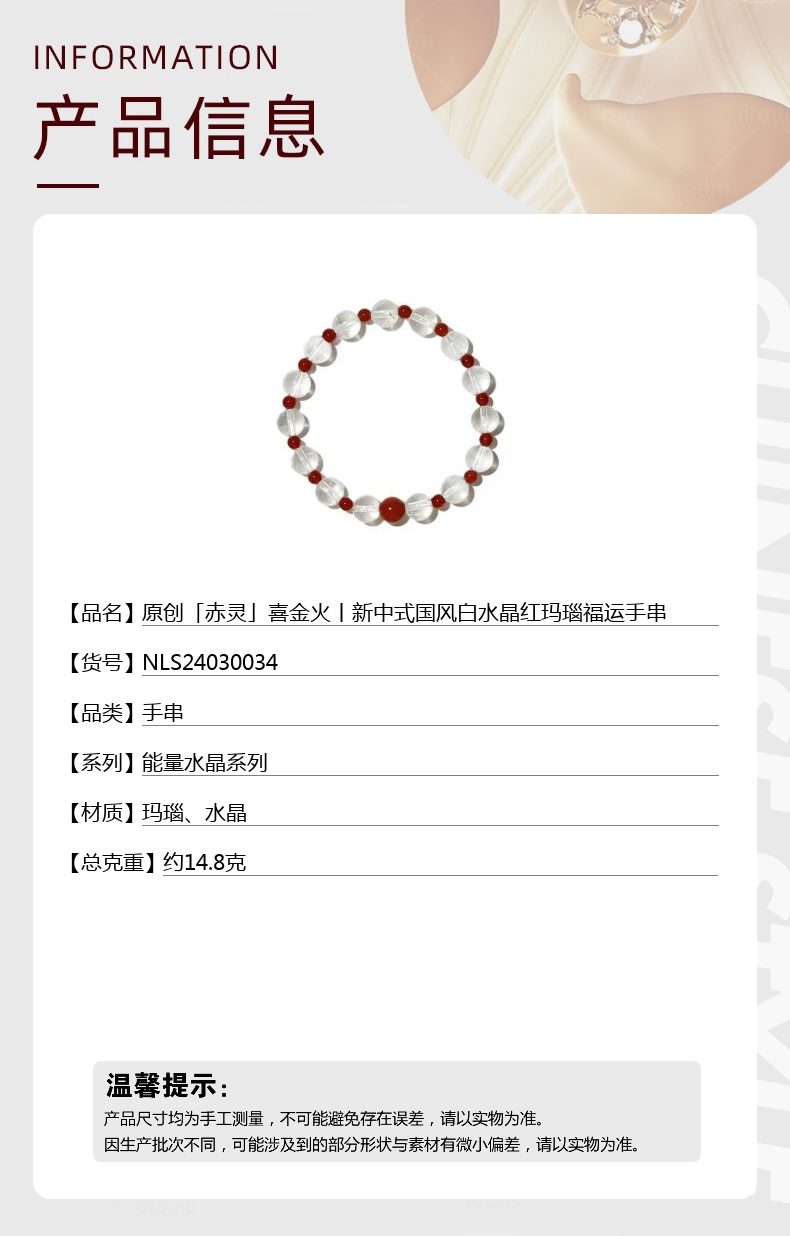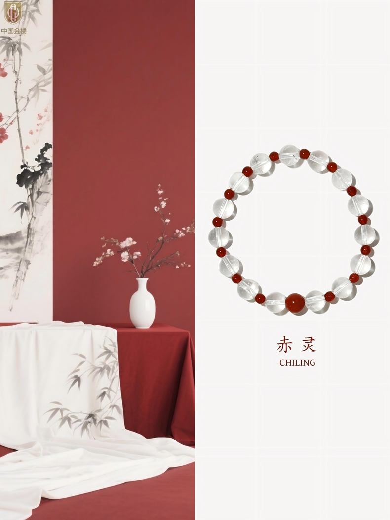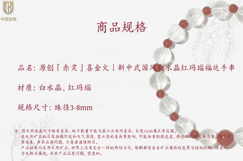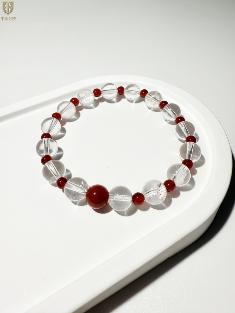 【品名】中国金楼原创「赤灵」喜金火丨新中式国风白水晶红玛瑙福运手串