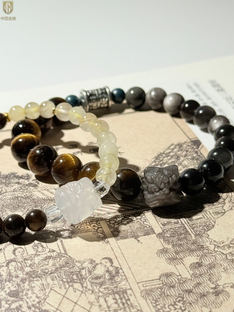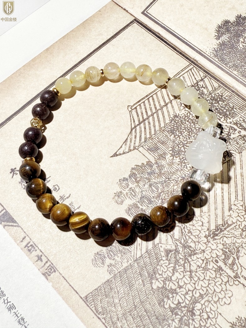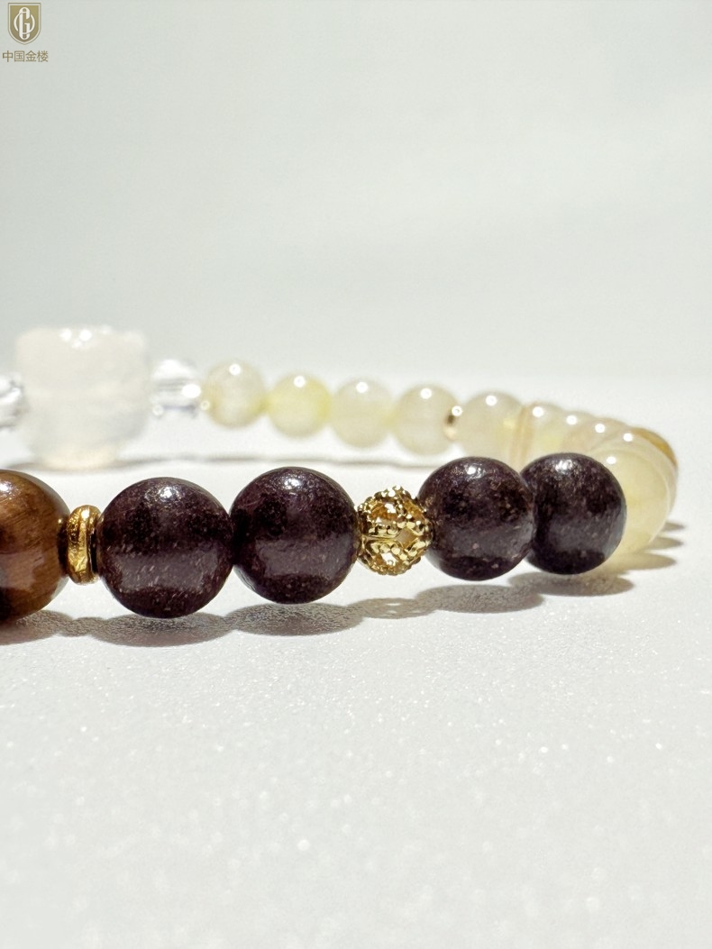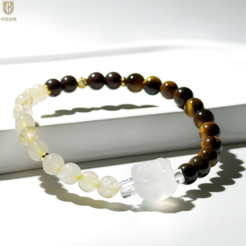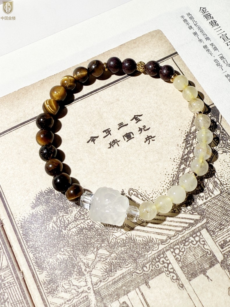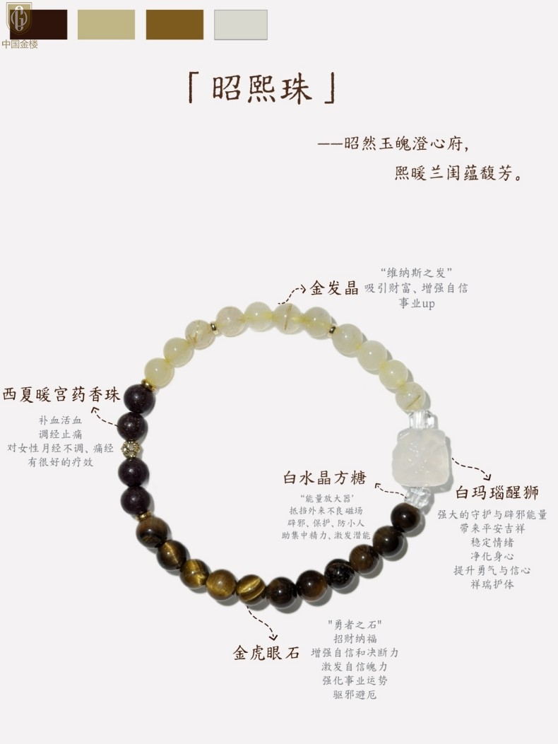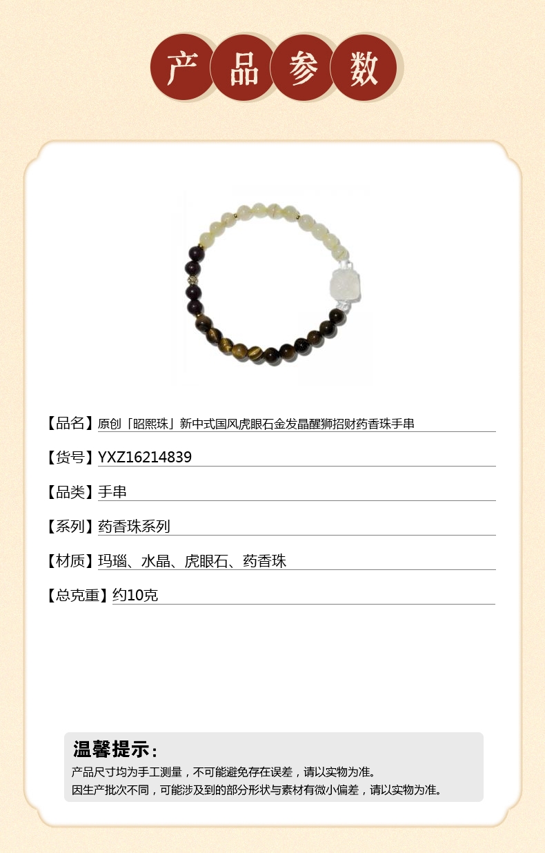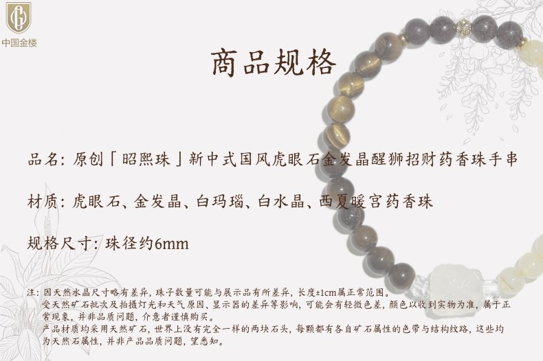 【品名】中国金楼原创「昭熙珠」新中式国风虎眼石金发晶醒狮招财药香珠手串
