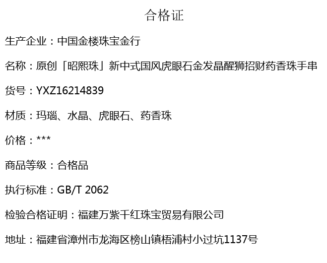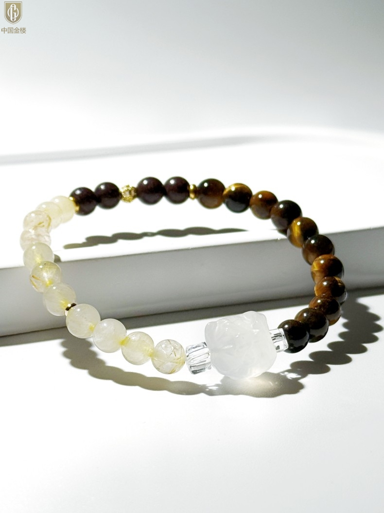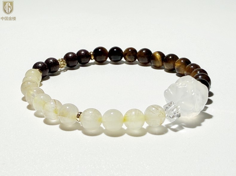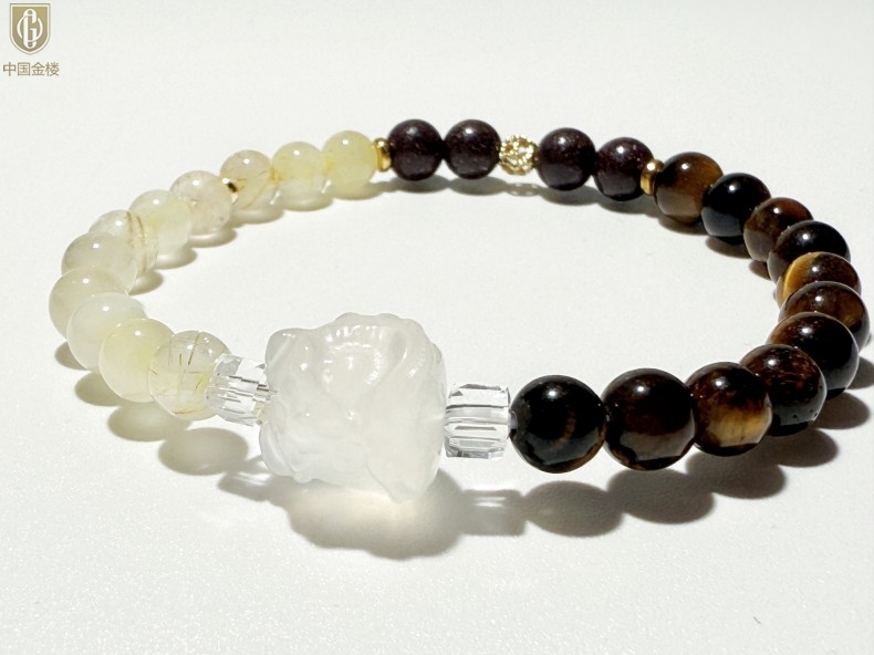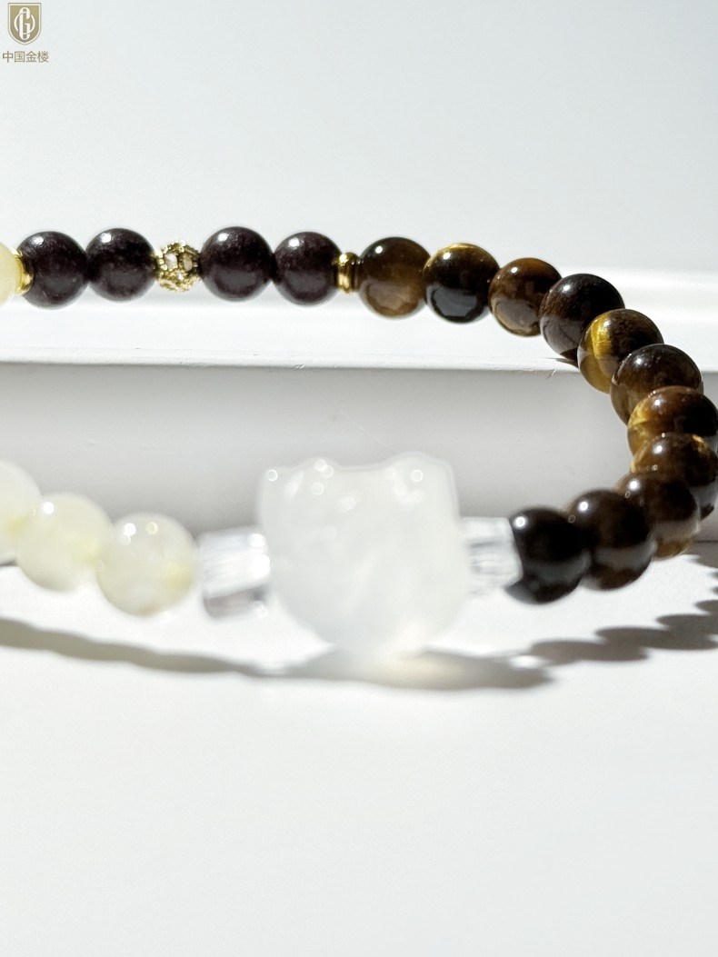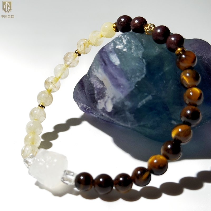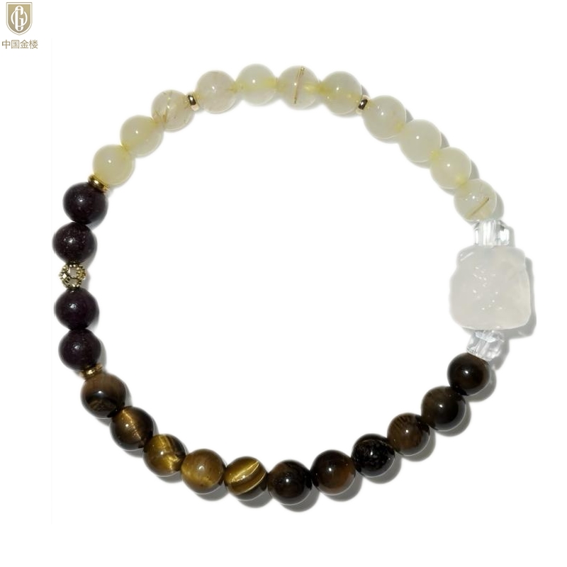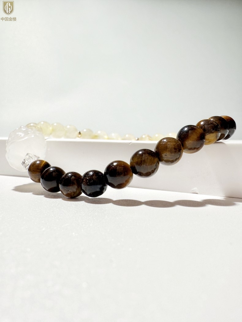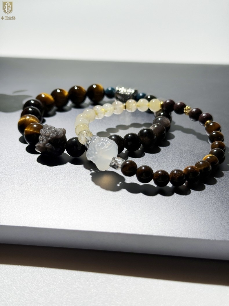【品名】中国金楼原创「昭熙珠」新中式国风虎眼石金发晶醒狮招财药香珠手串
