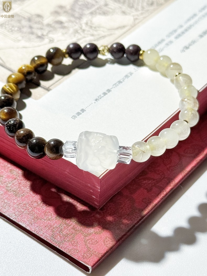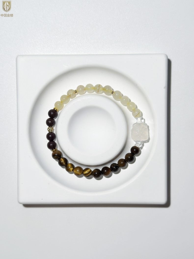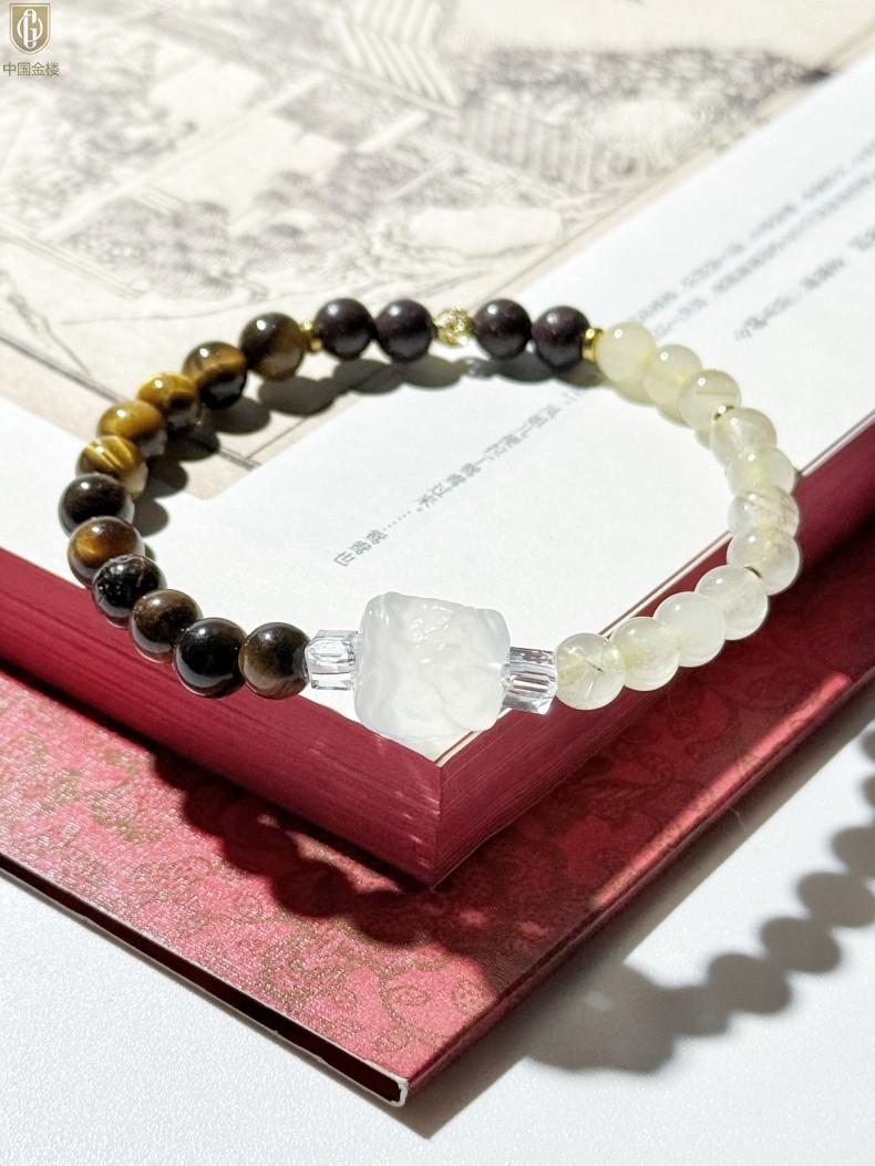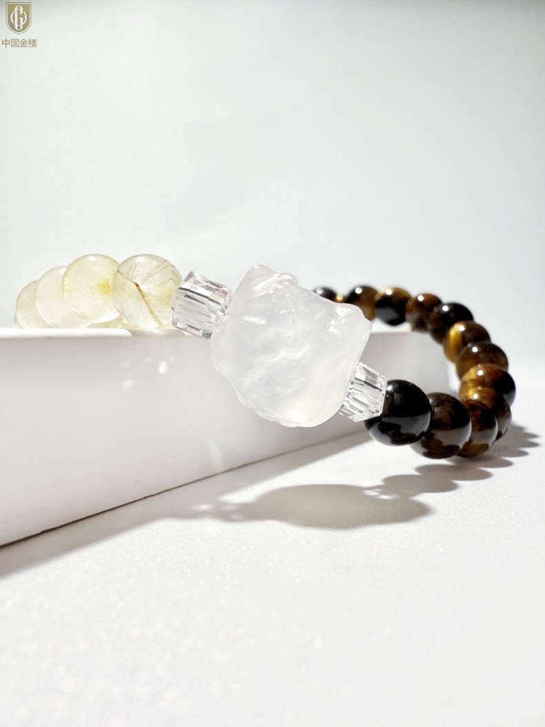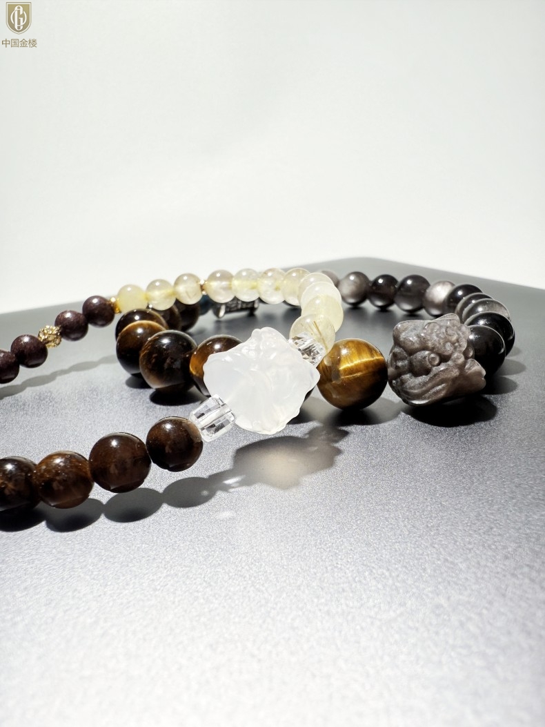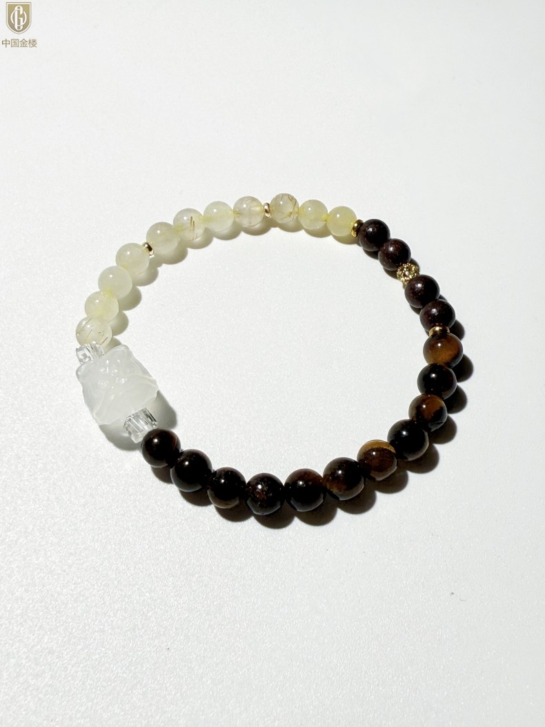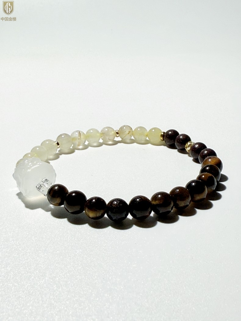 【品名】中国金楼原创「昭熙珠」新中式国风虎眼石金发晶醒狮招财药香珠手串