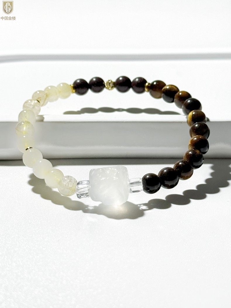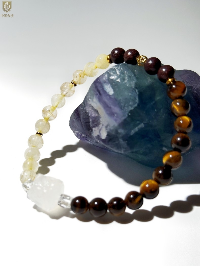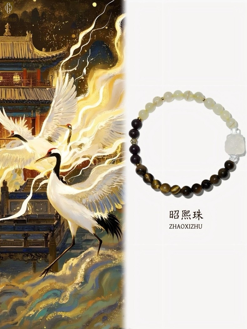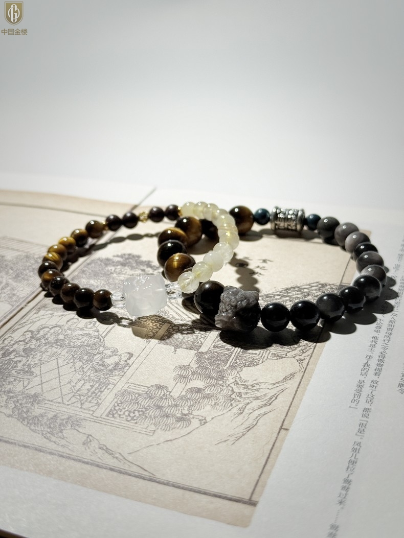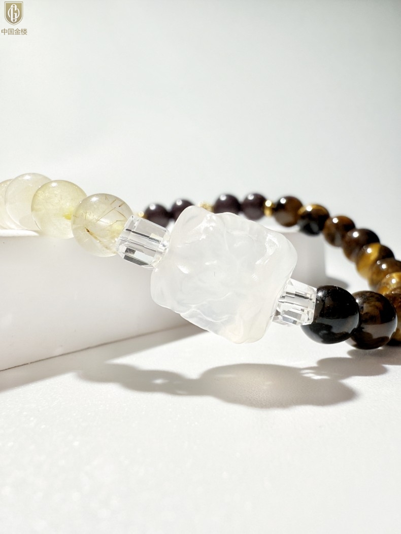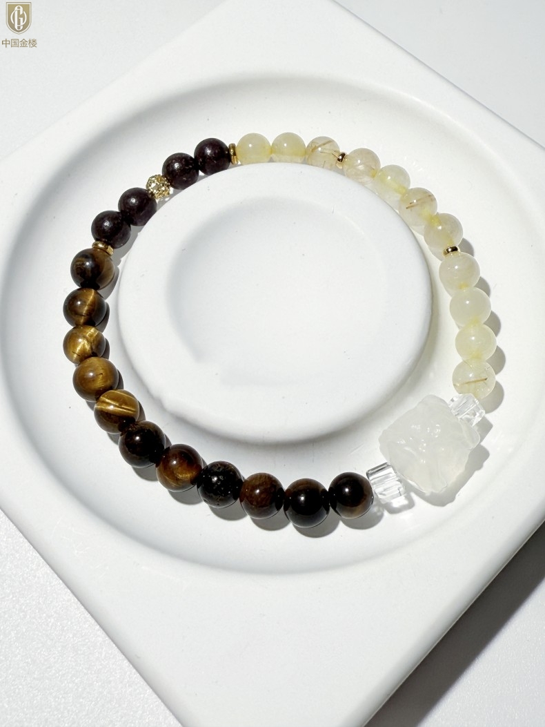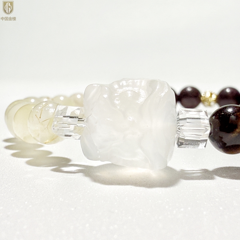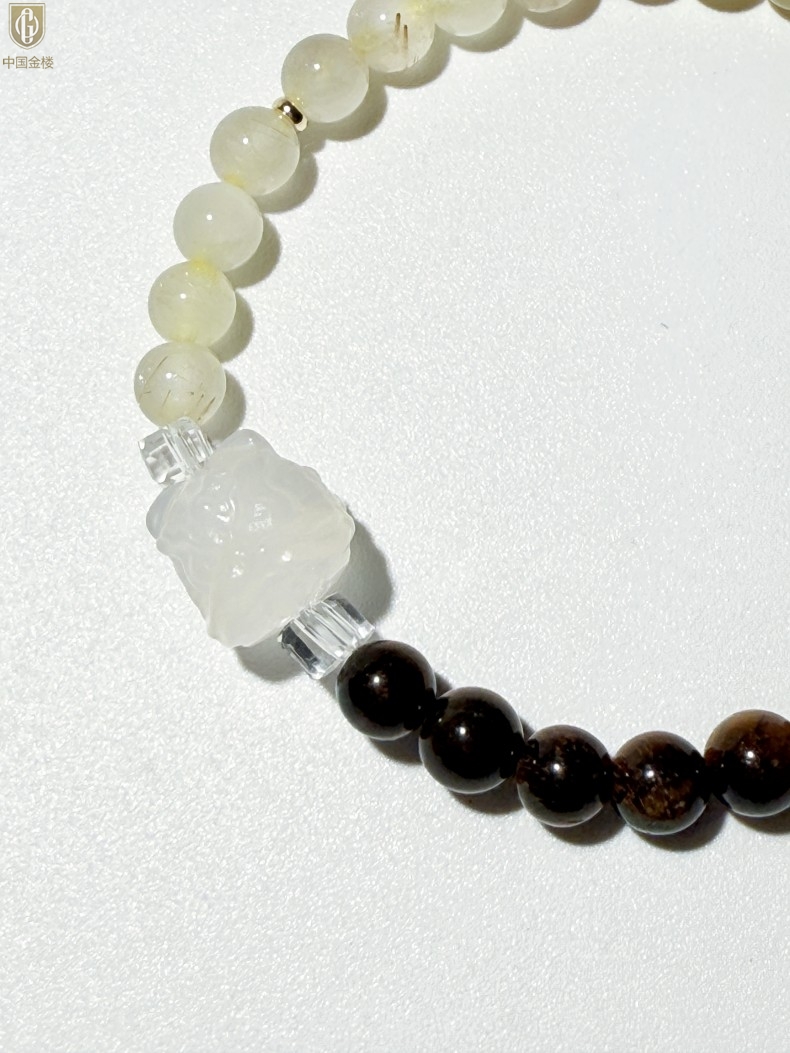 【品名】中国金楼原创「昭熙珠」新中式国风虎眼石金发晶醒狮招财药香珠手串