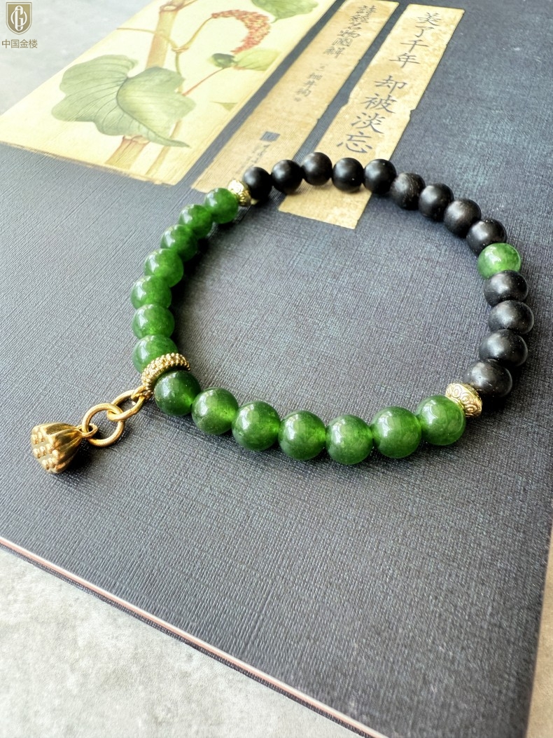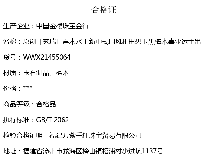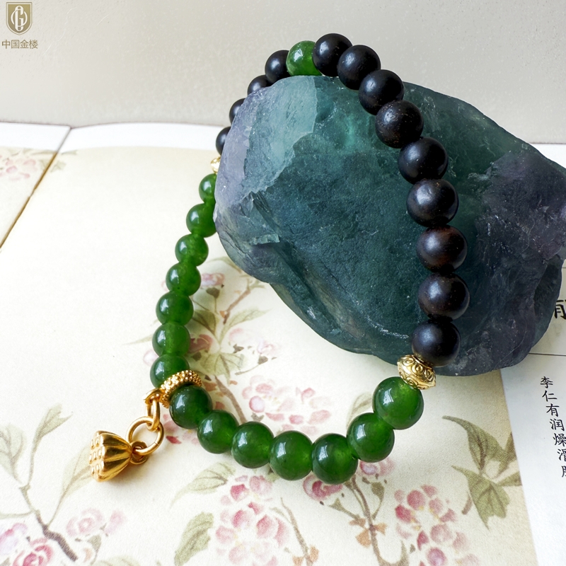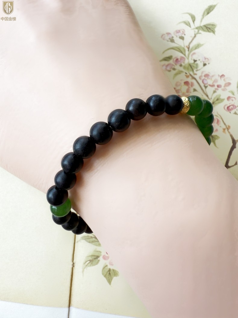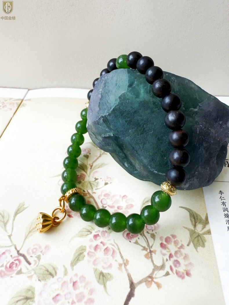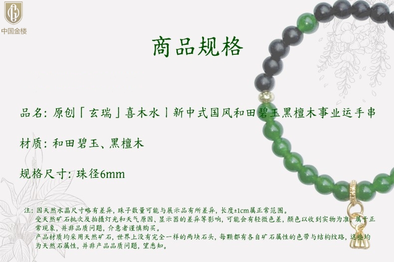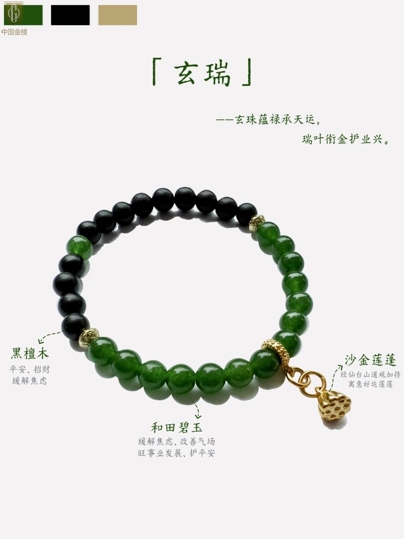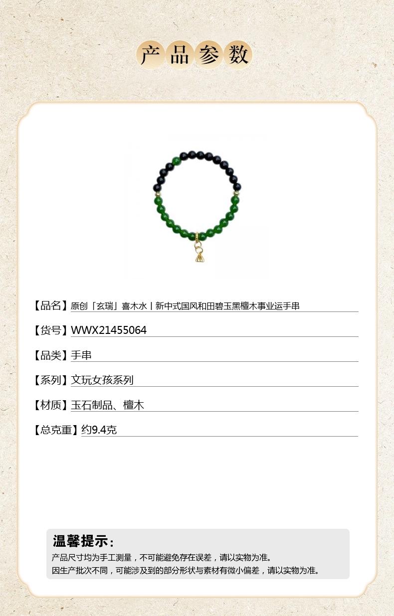 【品名】中国金楼原创「玄瑞」喜木水丨新中式国风和田碧玉黑檀木事业运手串