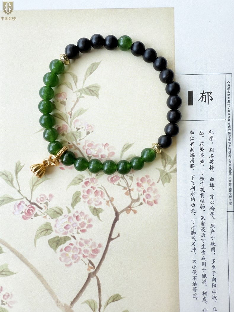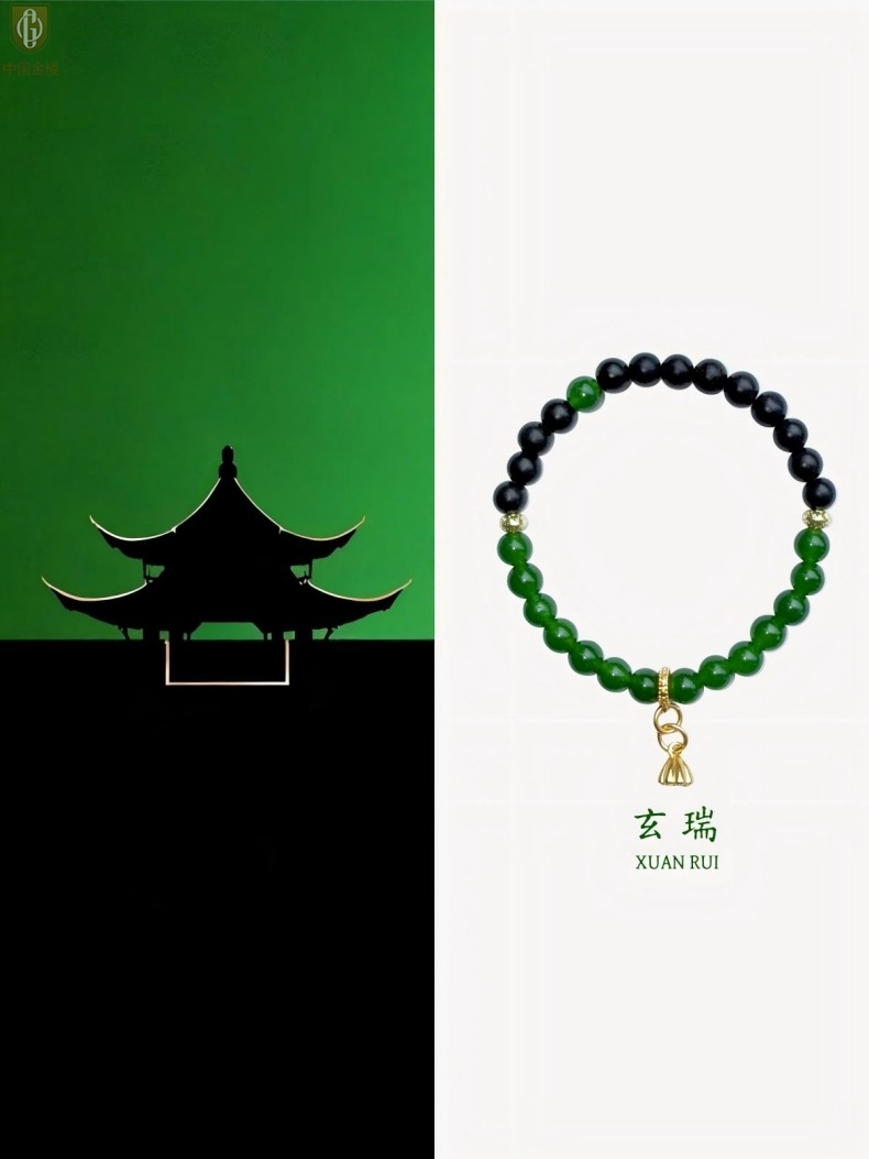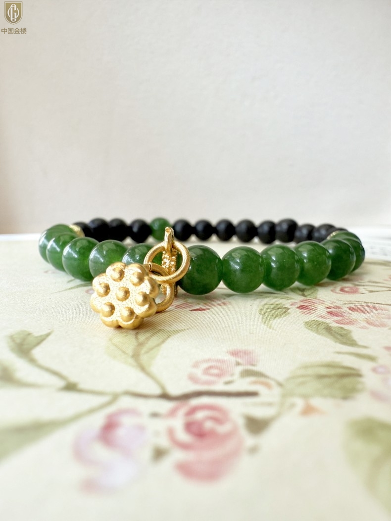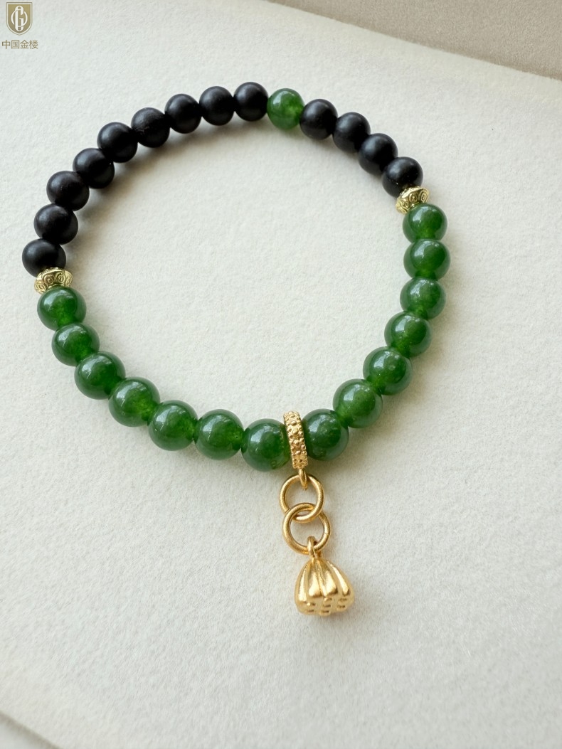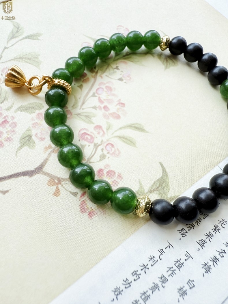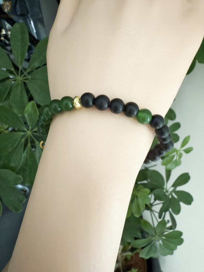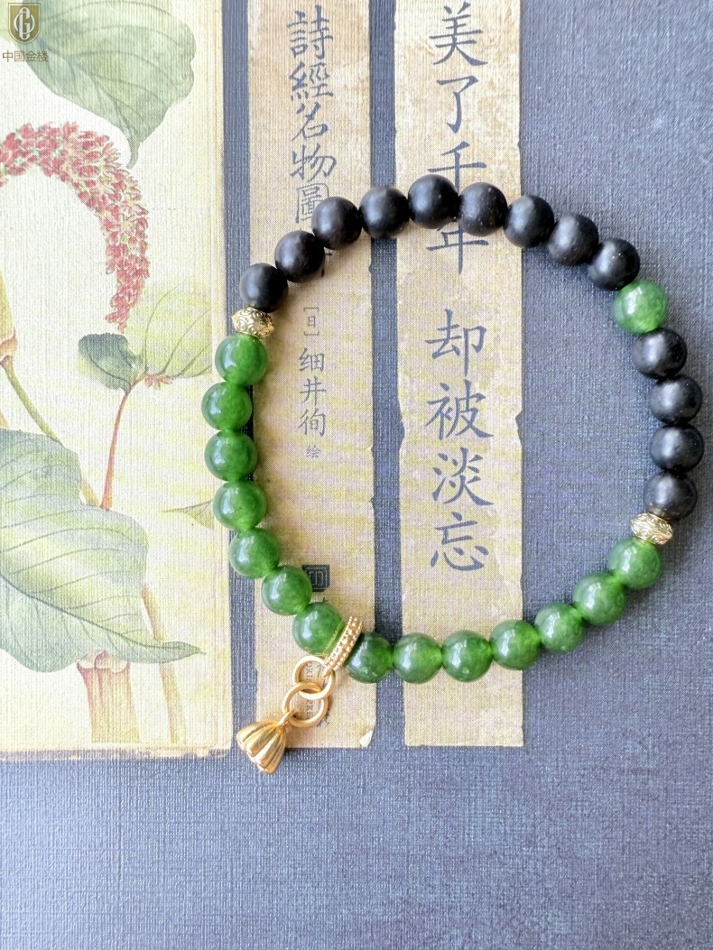 【品名】中国金楼原创「玄瑞」喜木水丨新中式国风和田碧玉黑檀木事业运手串