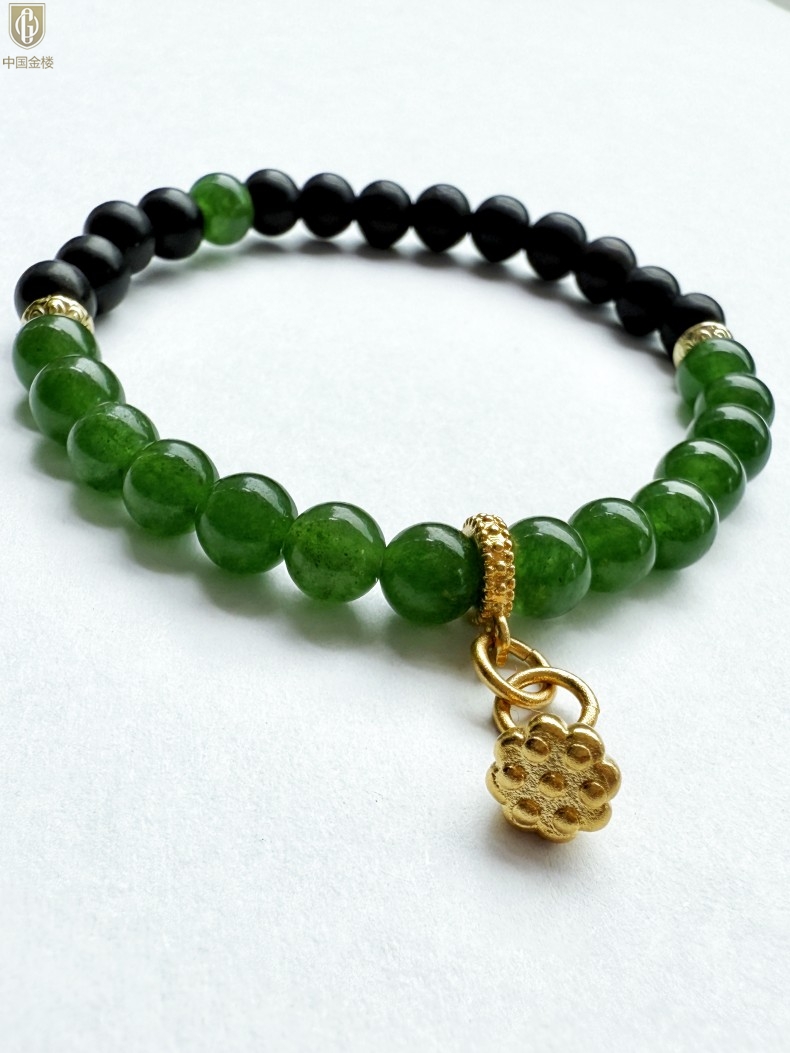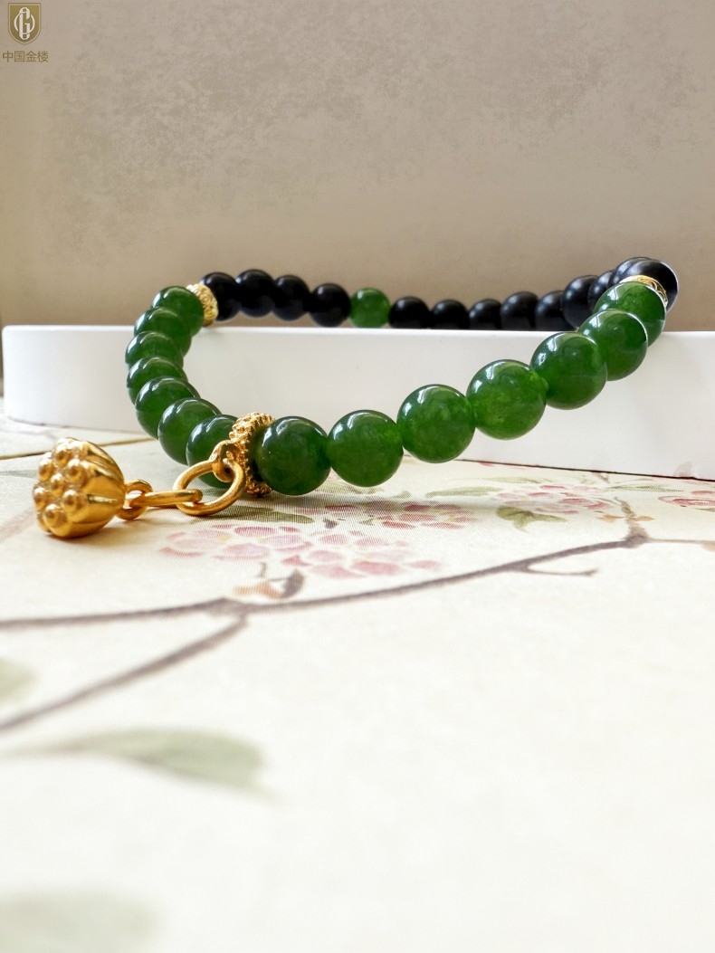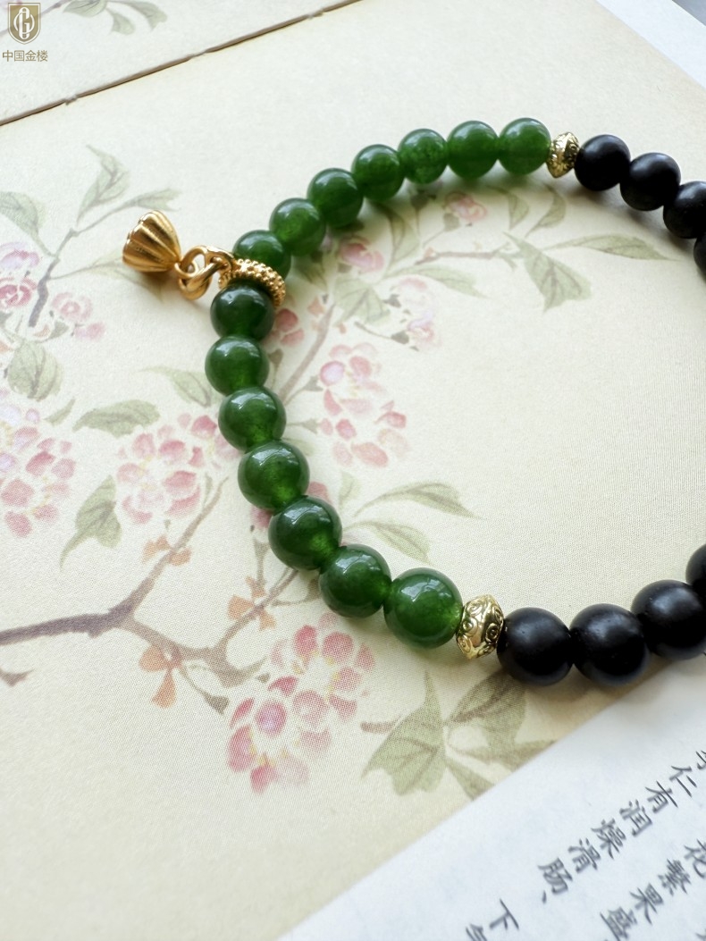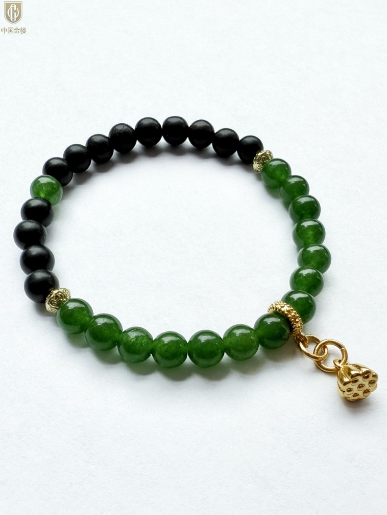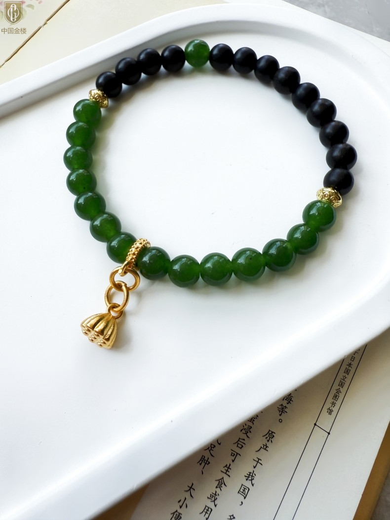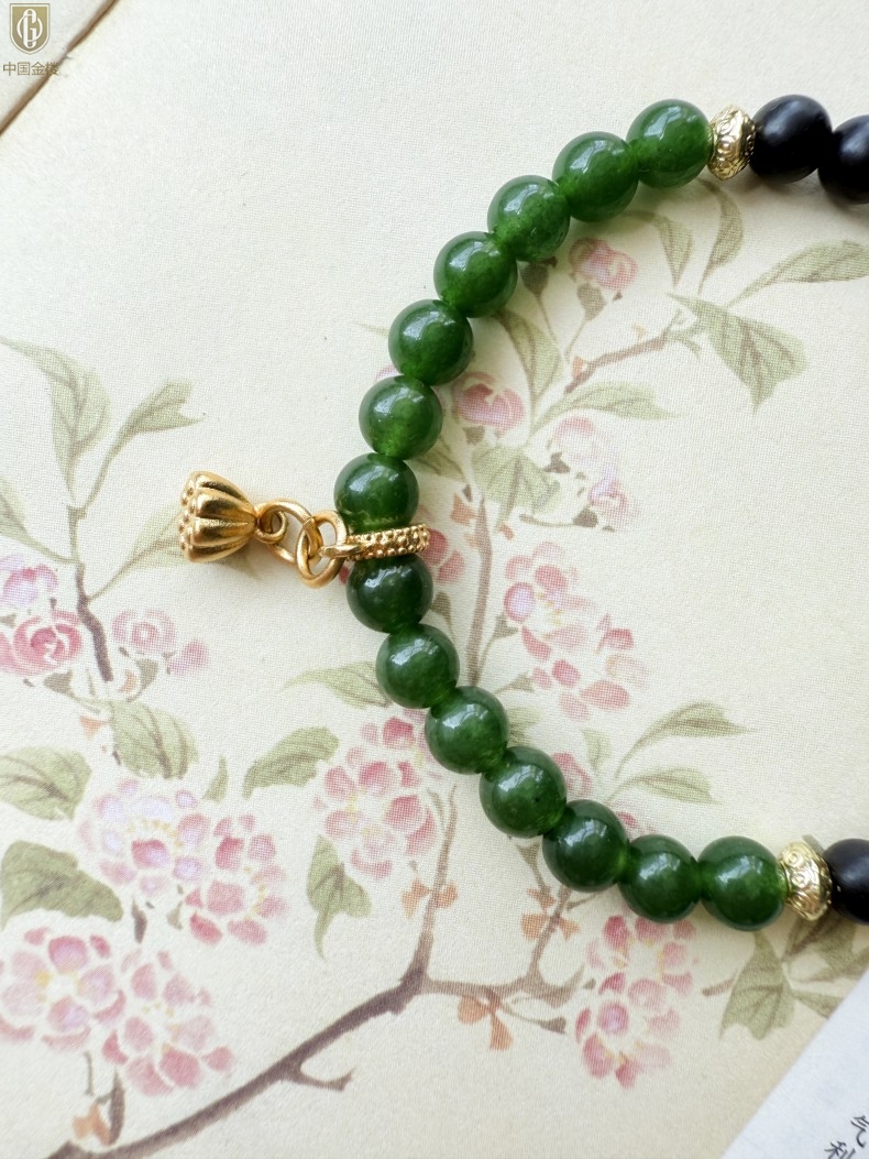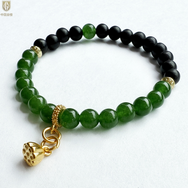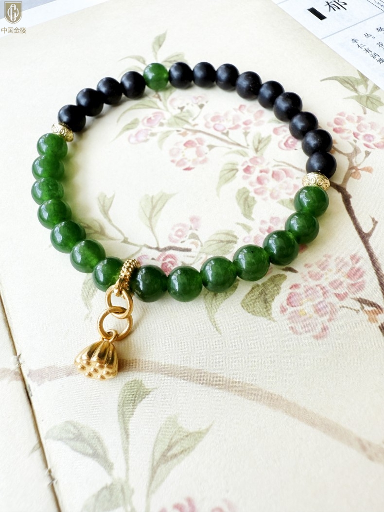 【品名】中国金楼原创「玄瑞」喜木水丨新中式国风和田碧玉黑檀木事业运手串