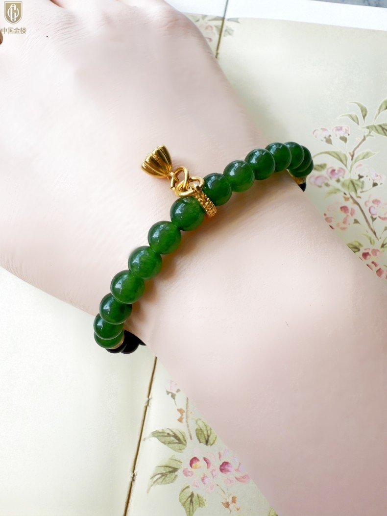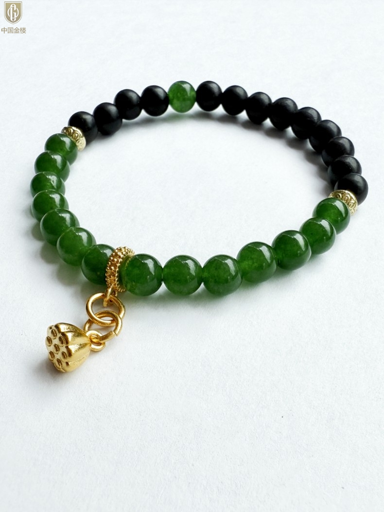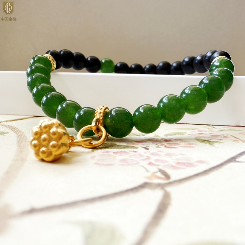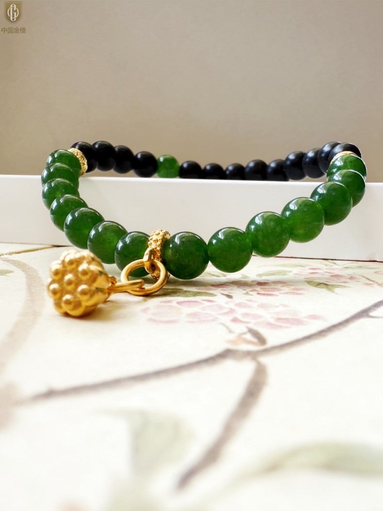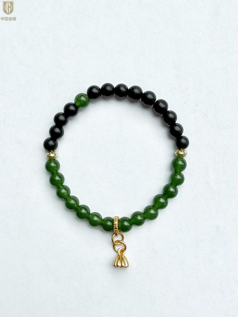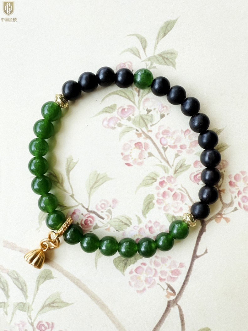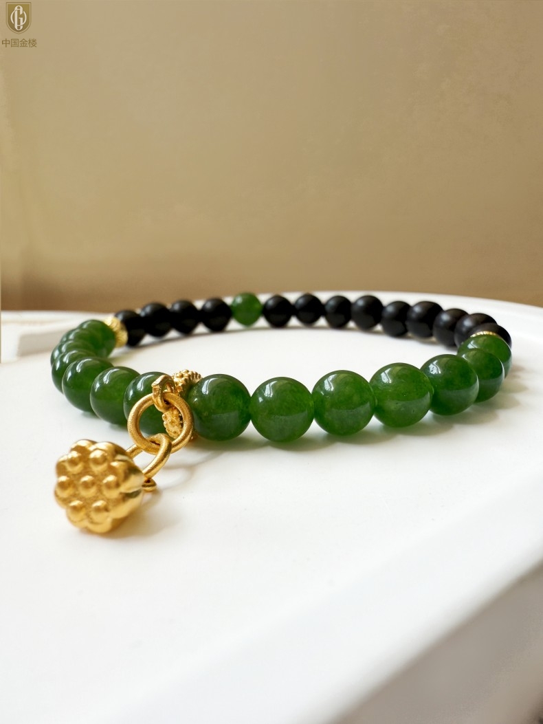 【品名】中国金楼原创「玄瑞」喜木水丨新中式国风和田碧玉黑檀木事业运手串