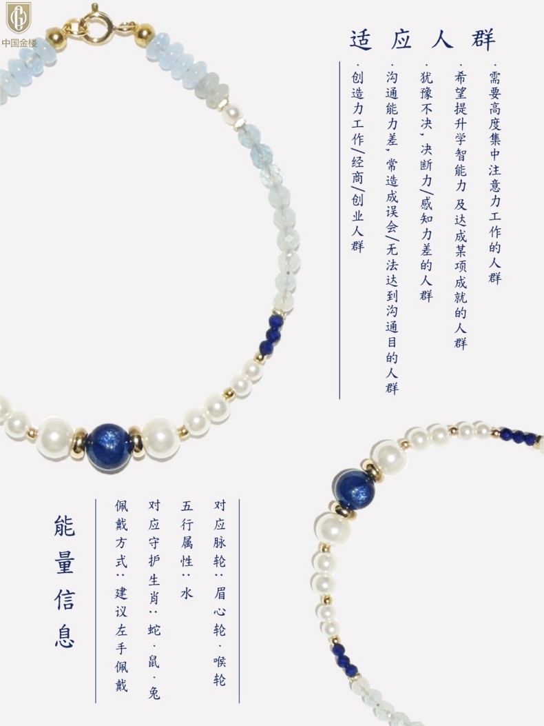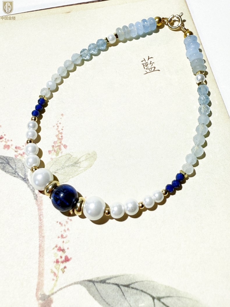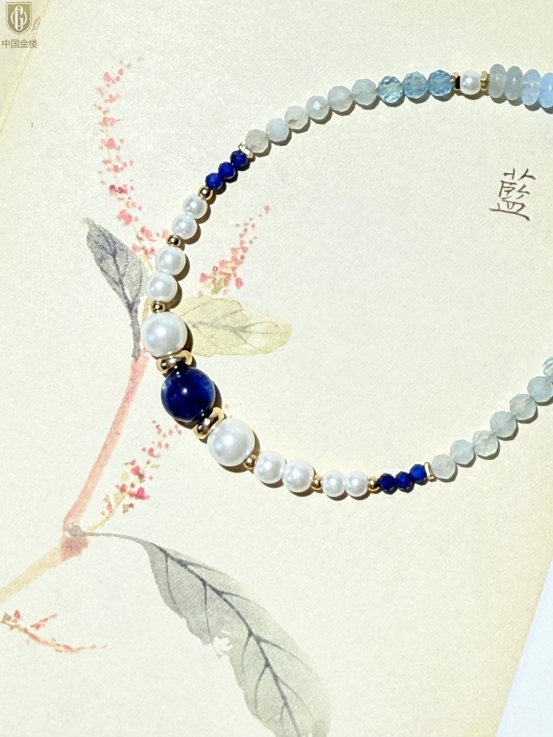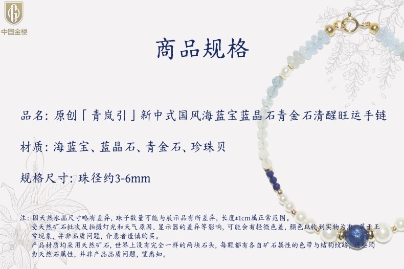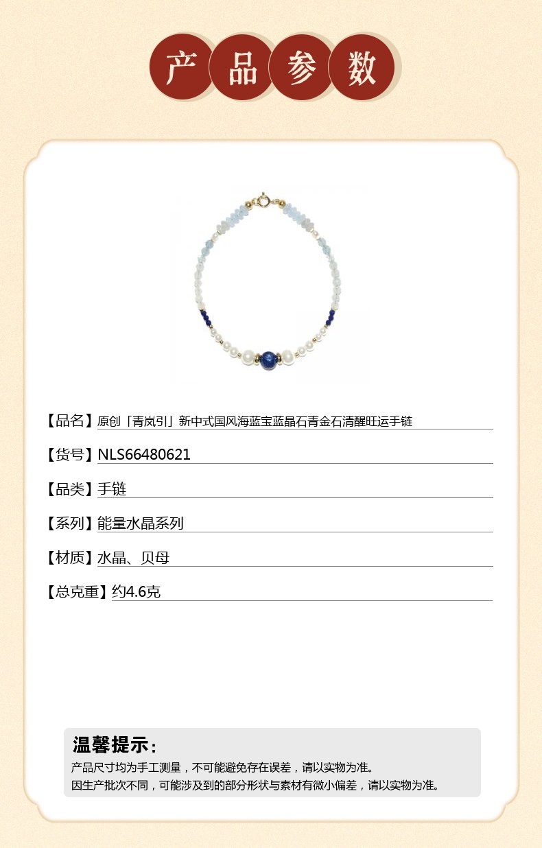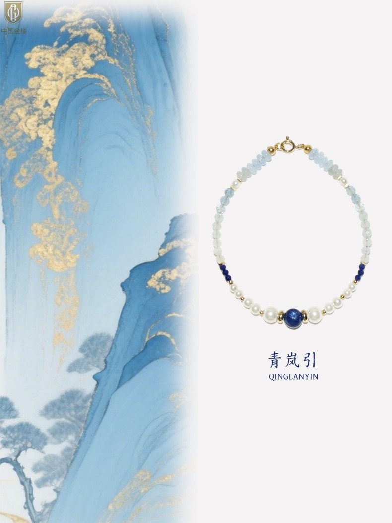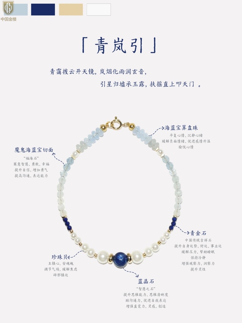 【品名】中国金楼原创「青岚引」新中式国风海蓝宝蓝晶石青金石清醒旺运手链
