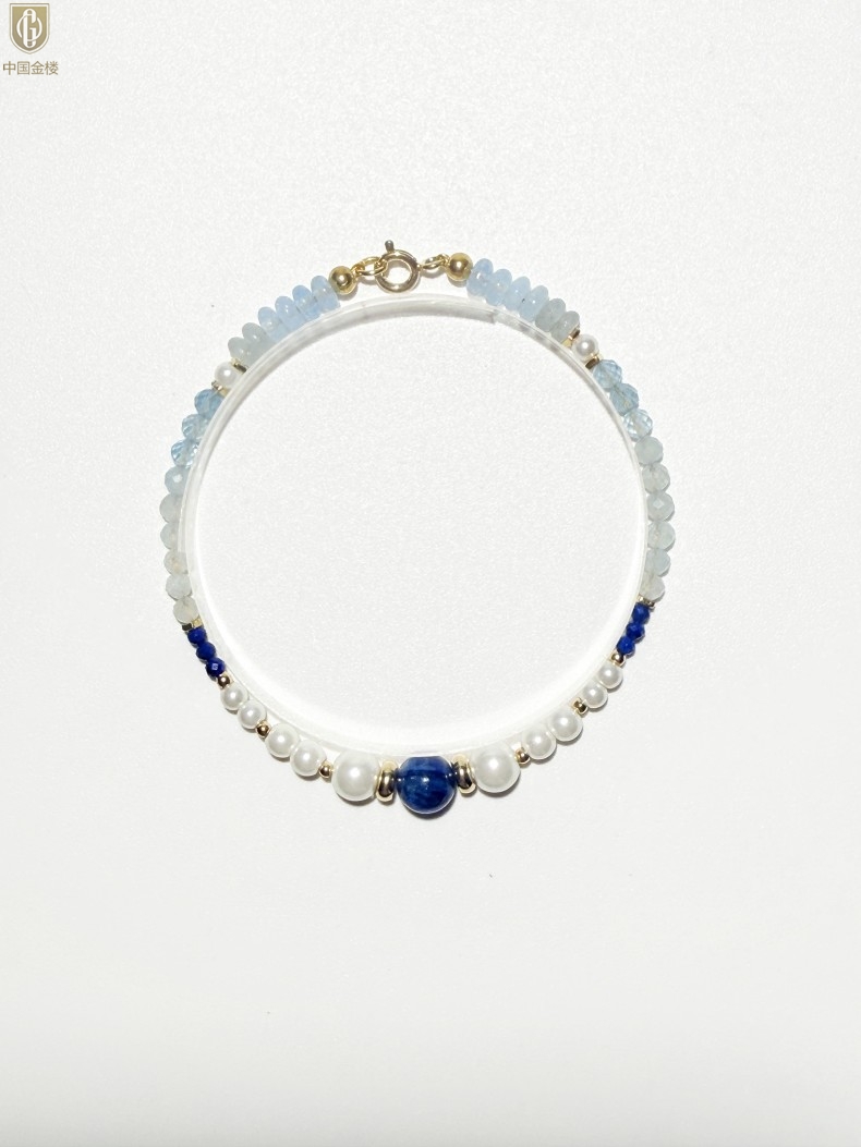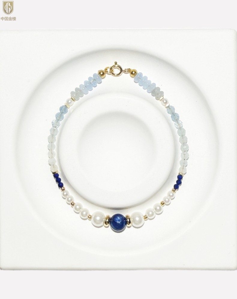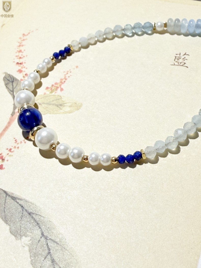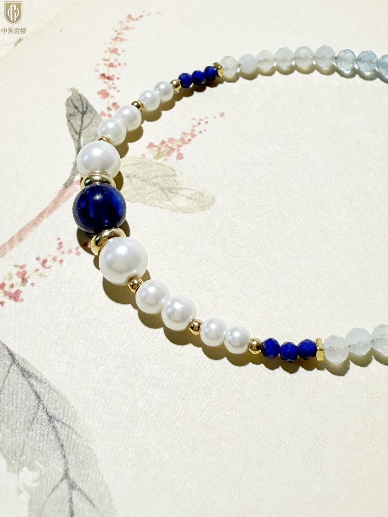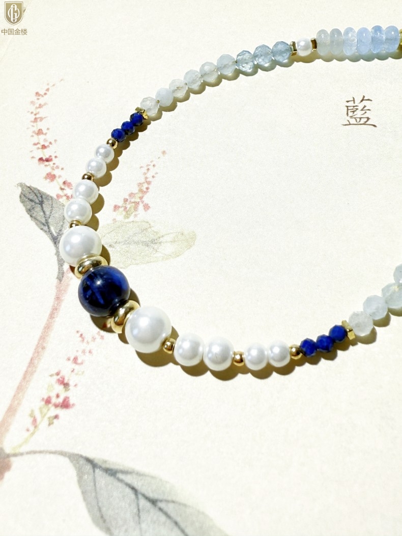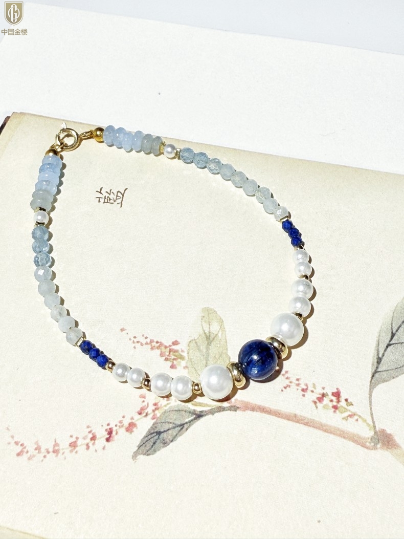【品名】中国金楼原创「青岚引」新中式国风海蓝宝蓝晶石青金石清醒旺运手链