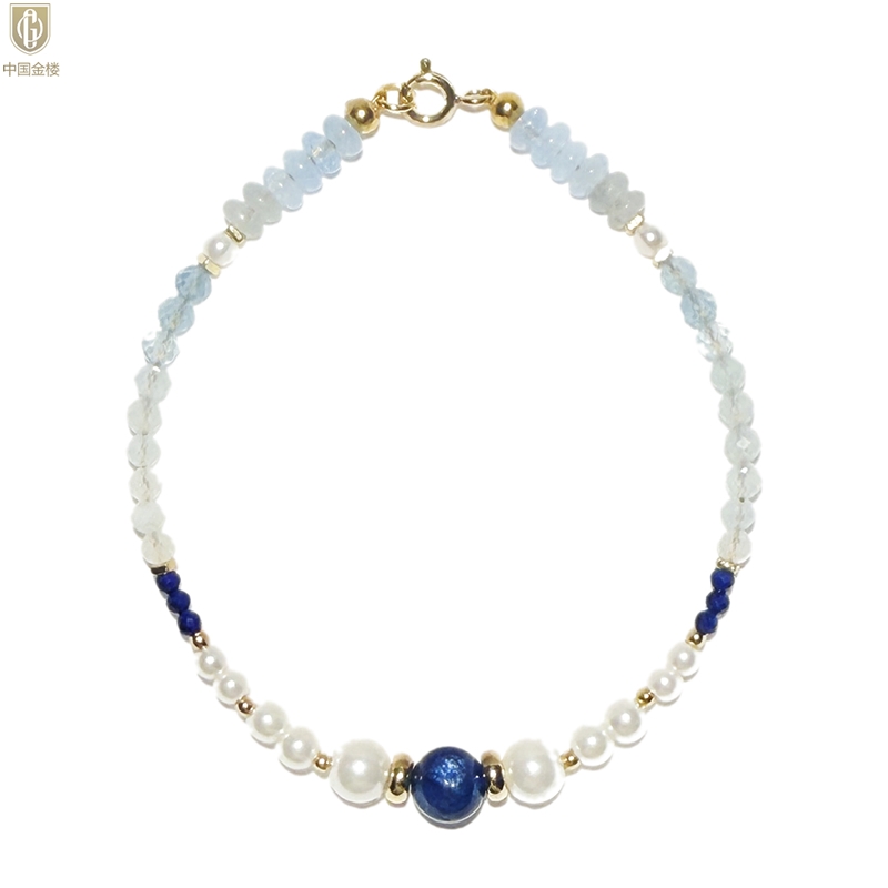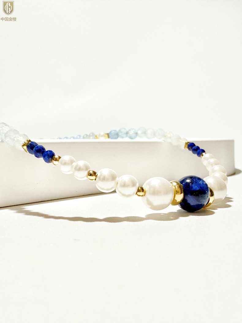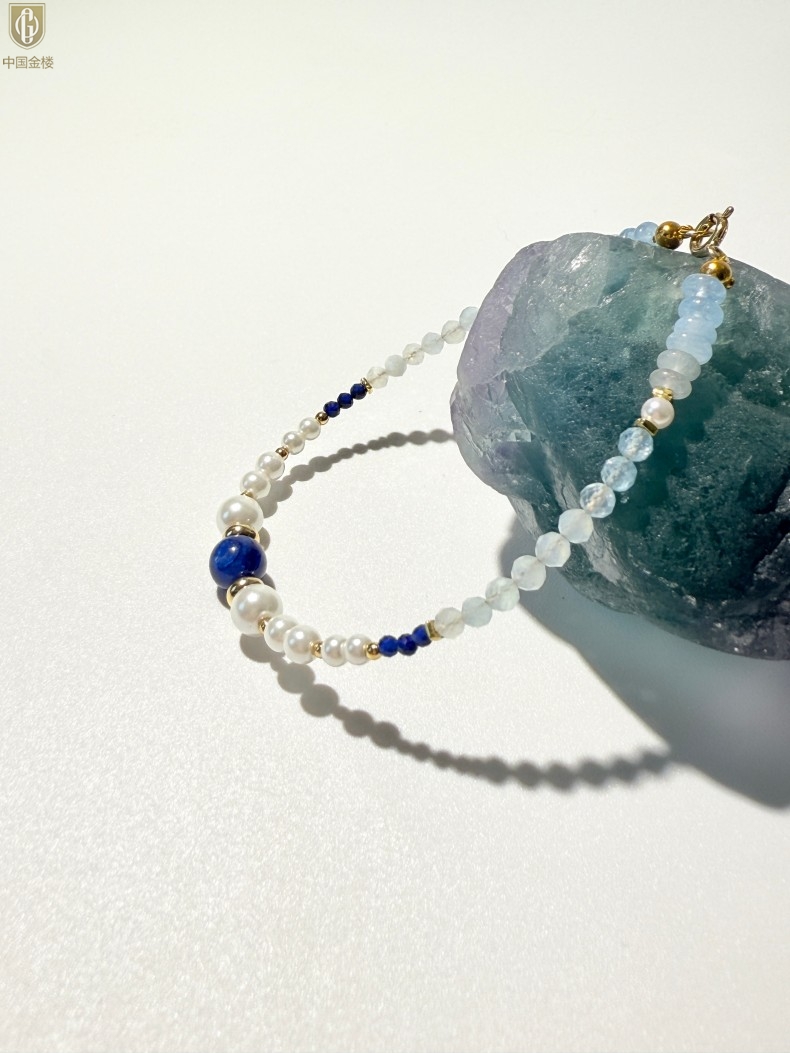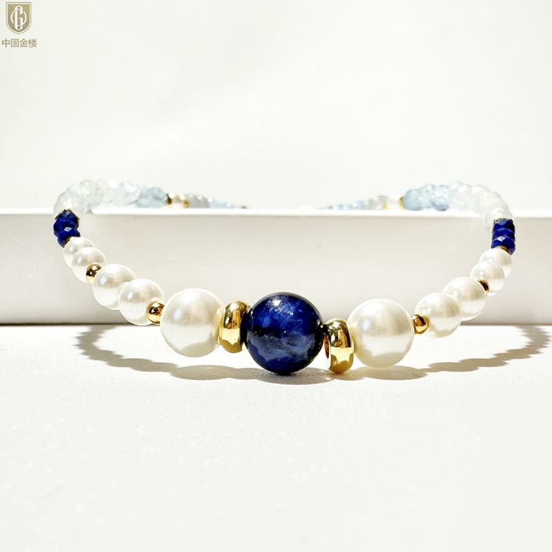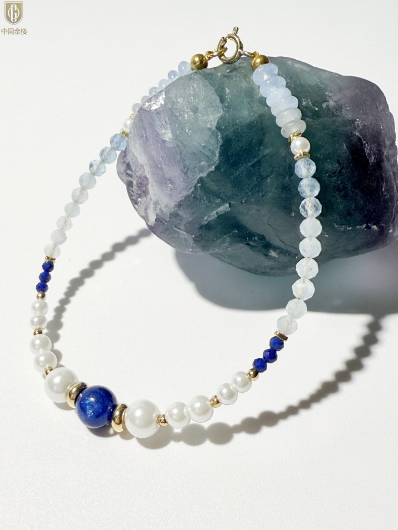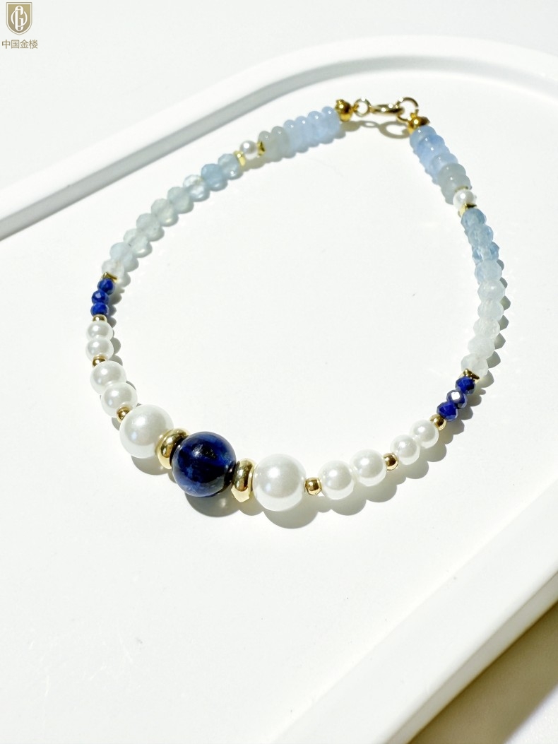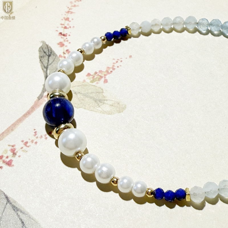 【品名】中国金楼原创「青岚引」新中式国风海蓝宝蓝晶石青金石清醒旺运手链